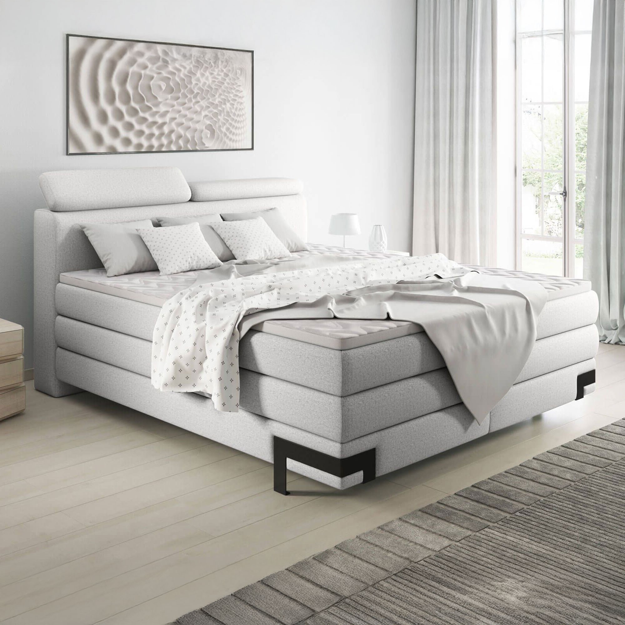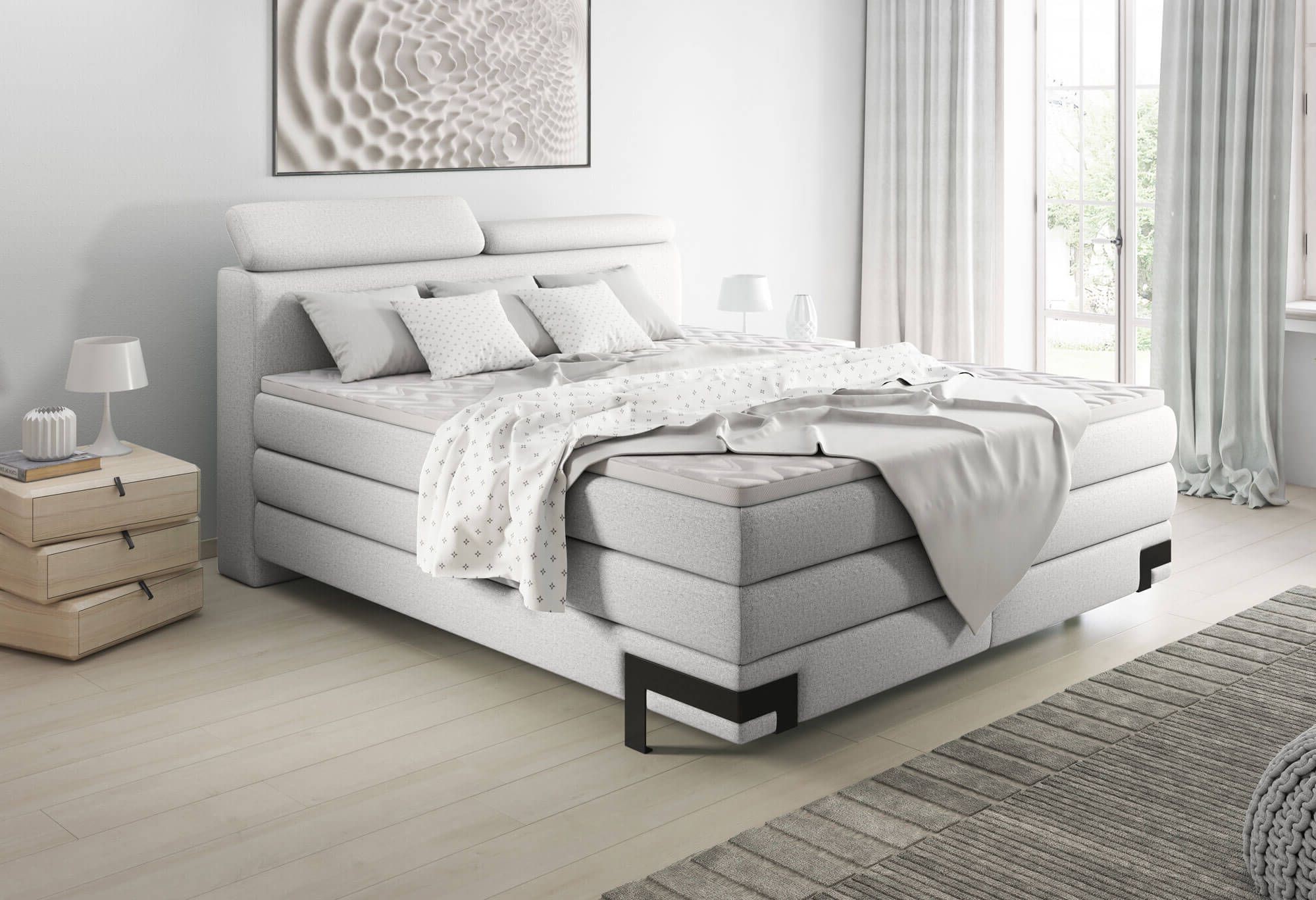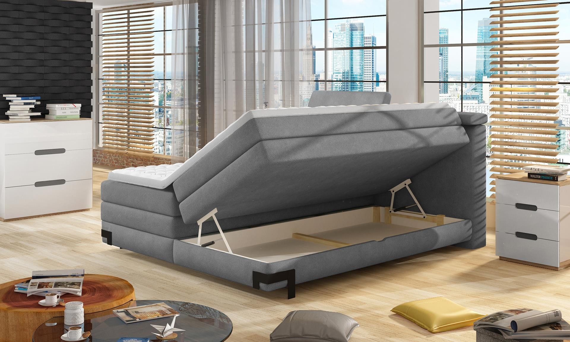 Nowoczesne łóżko kontynentalne 180x200 – z pojemnikami na pościel i z regulowanymi zagłówkami