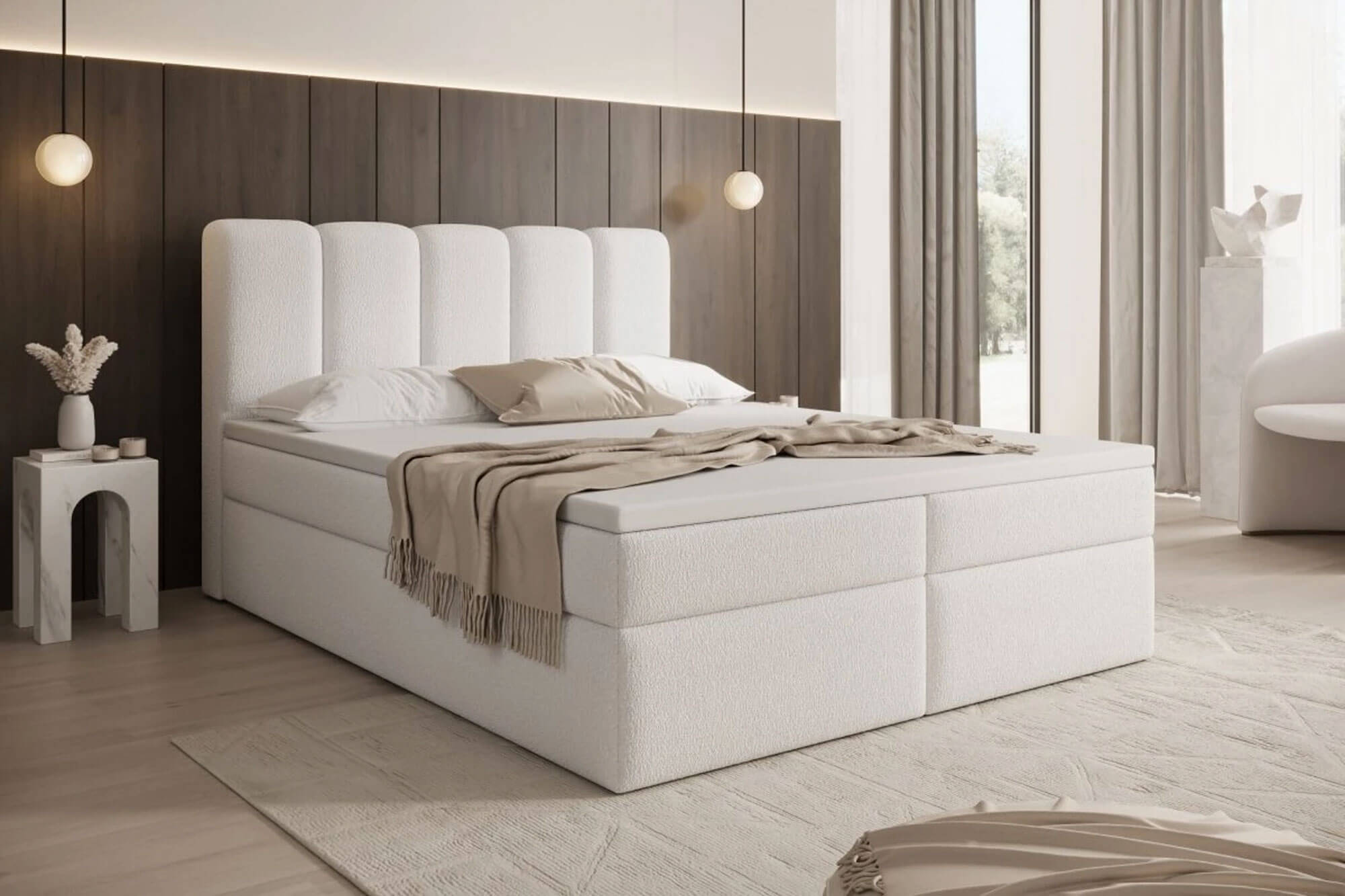 Łóżko kontynentalne z pojemnikiem LEO 140x200 to idealne połączenie elegancji, funkcjonalności i komfortu snu. Jego nowoczesna forma oraz luksusowy charakter sprawiają, że doskonale wpisuje się w aranżacje współczesnych sypialni. Wysokie, tapicerowane zagłowie nadaje wnętrzu wyrazistości i podkreśla nowoczesny styl mebla. Model LEO 140x200 został wykonany z solidnych materiałów, w tym z litego drewna, co gwarantuje długowieczność i stabilność. Dwa obszerne pojemniki umieszczone pod materacem zapewniają dodatkową przestrzeń do przechowywania pościeli lub tekstyliów domowych. Mechanizmy sprężynowe sprawiają, że podnoszenie jest lekkie i komfortowe. Łóżko kontynentalne LEO 140x200 to propozycja dla osób, które szukają nowoczesnego i wygodnego rozwiązania do sypialni. Wysoka powierzchnia spania zapewnia łatwe wstawanie, a eleganckie wykończenie i staranne detale tworzą efektowny wygląd. To mebel, który łączy luksus, funkcjonalność i polską jakość wykonania w jednym.