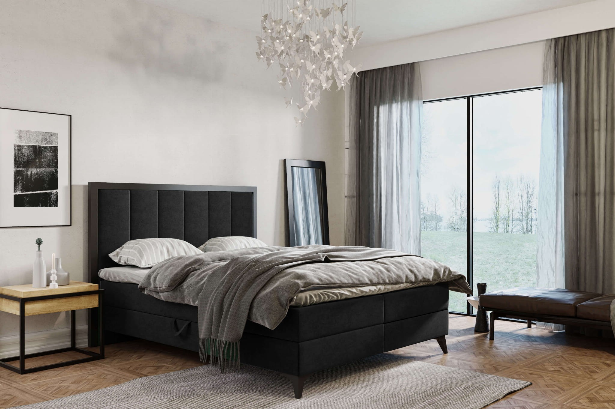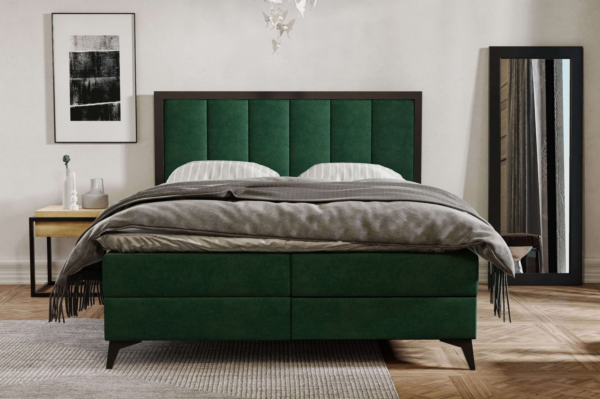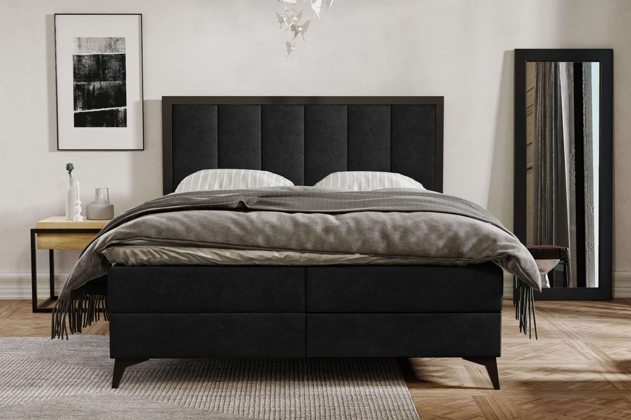 Łóżko kontynentalne 160x200 – wysokie czarne nóżki, w stylu loft
