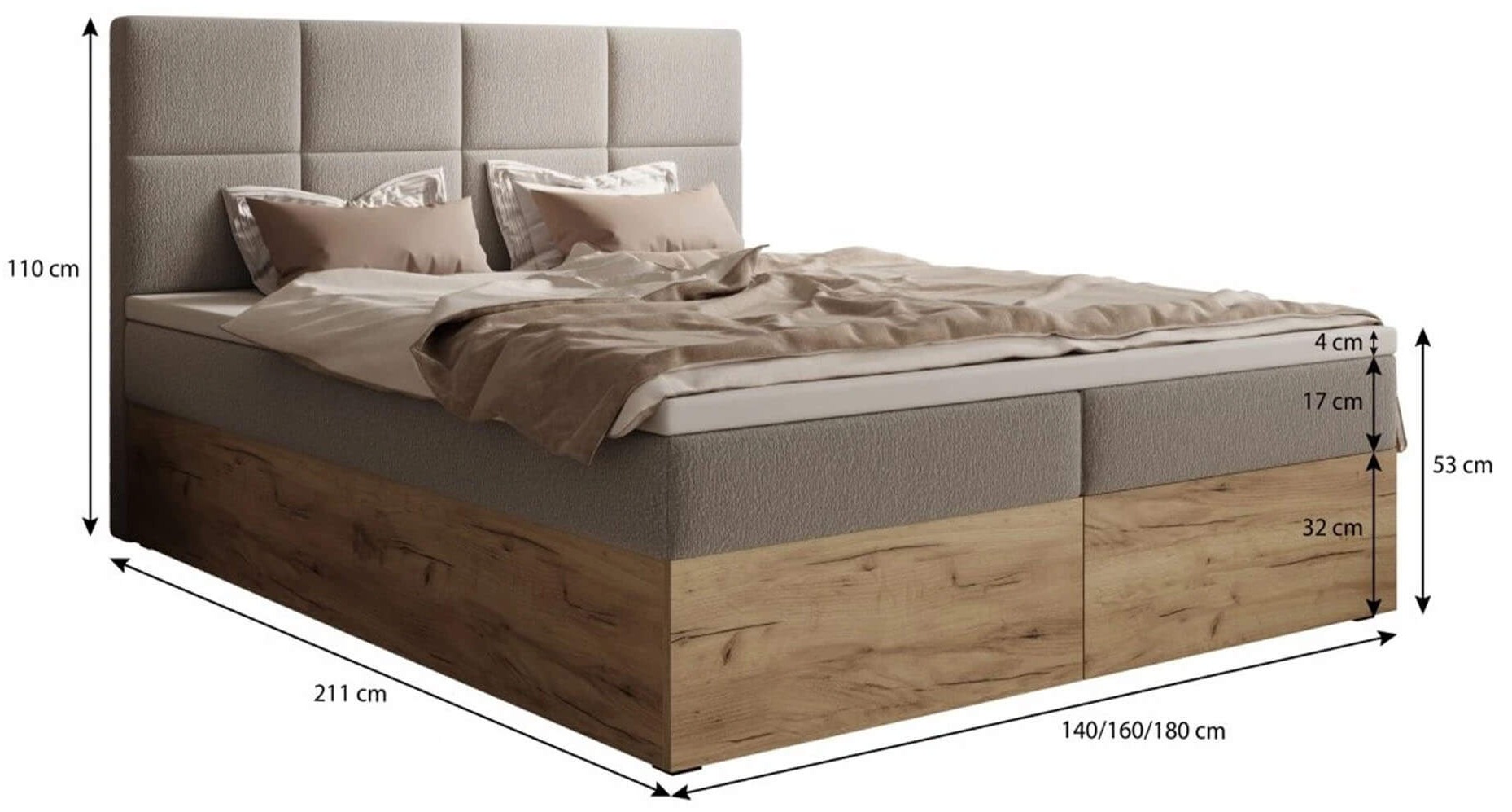 Łóżko kontynentalne z pojemnikiem MADISON | 140x200 | Kolor do wyboru