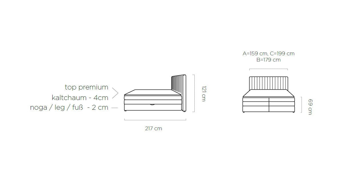 | Rodzaj produktu | Łóżko tapicerowane kontynentalne |