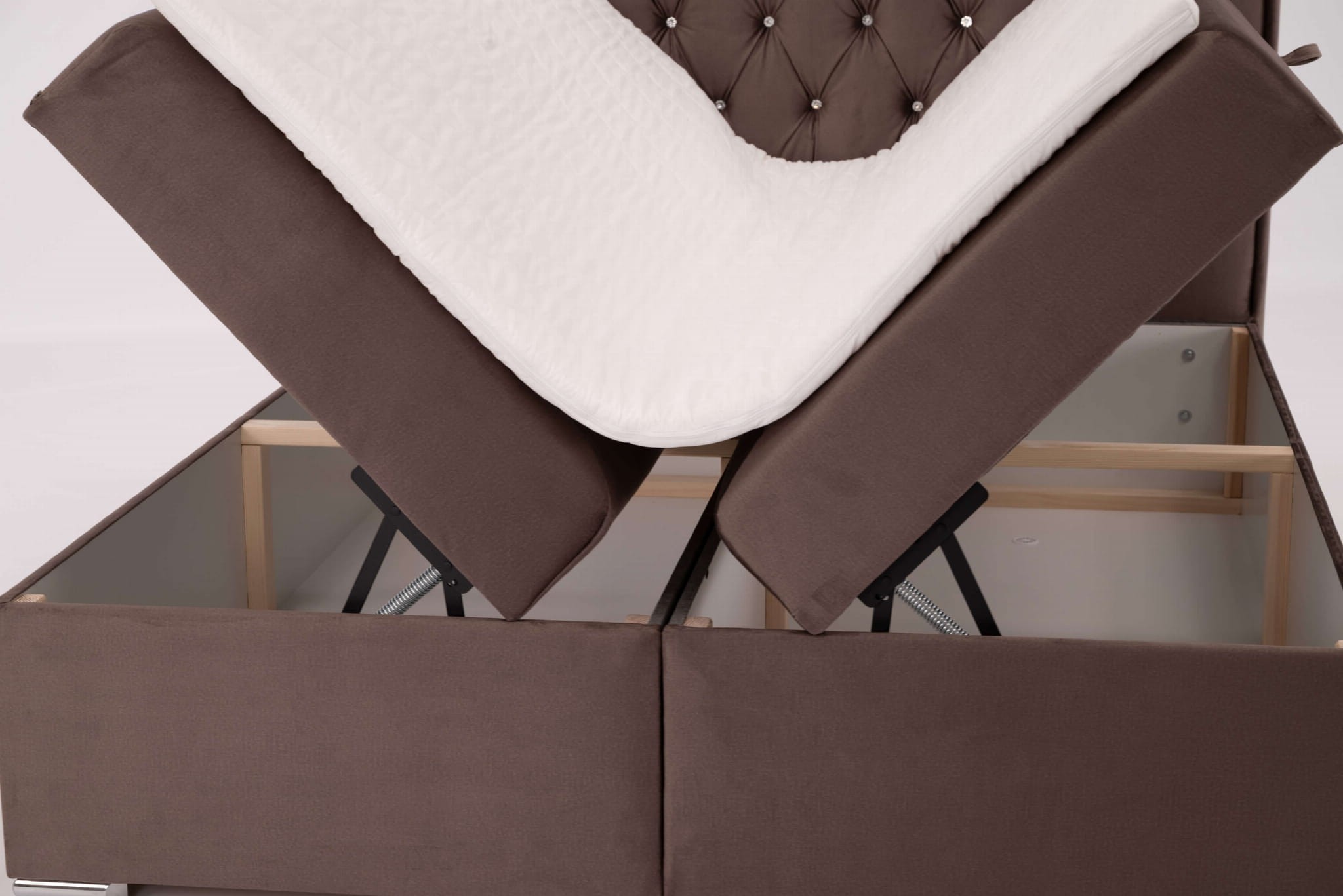 Łóżko kontynentalne z pojemnikiem SUŁTAN, materac, topper | 200x200 | Fancy 39 | OUTLET
