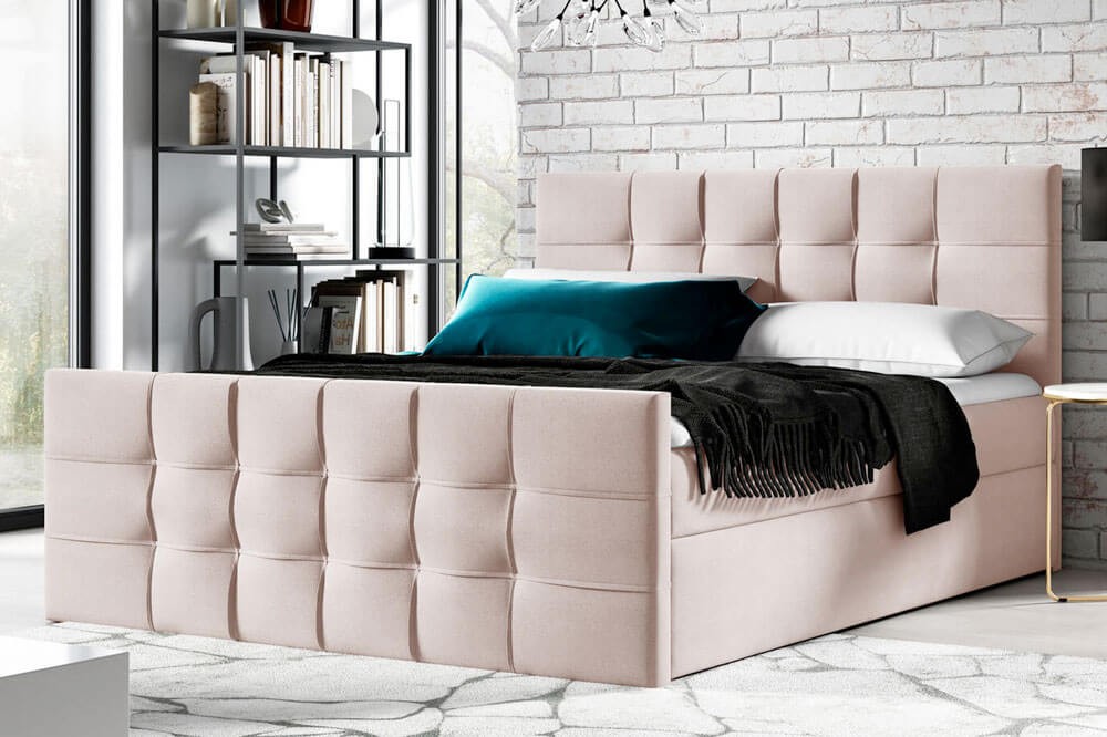 Łóżko kontynentalne z pojemnikiem TOP 1 LUX, materac, topper | 180x200 | Kolor do wyboru