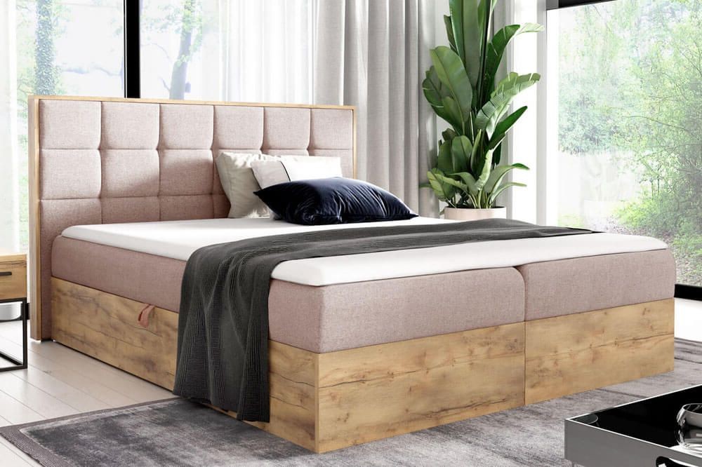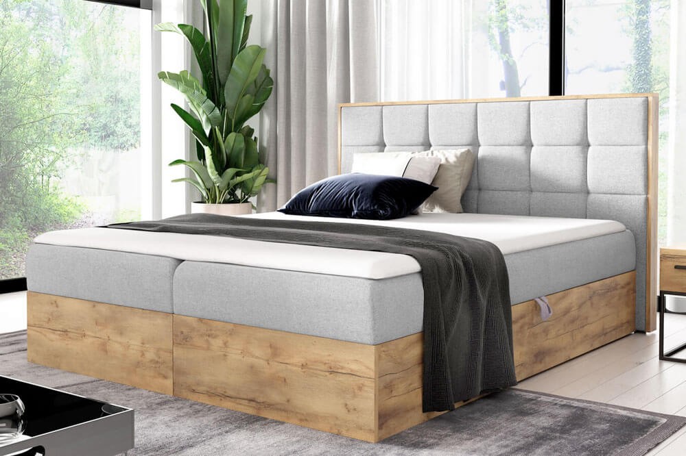Łóżko kontynentalne z pojemnikiem WOOD1, materac | 200x200 | Kolor do wyboru