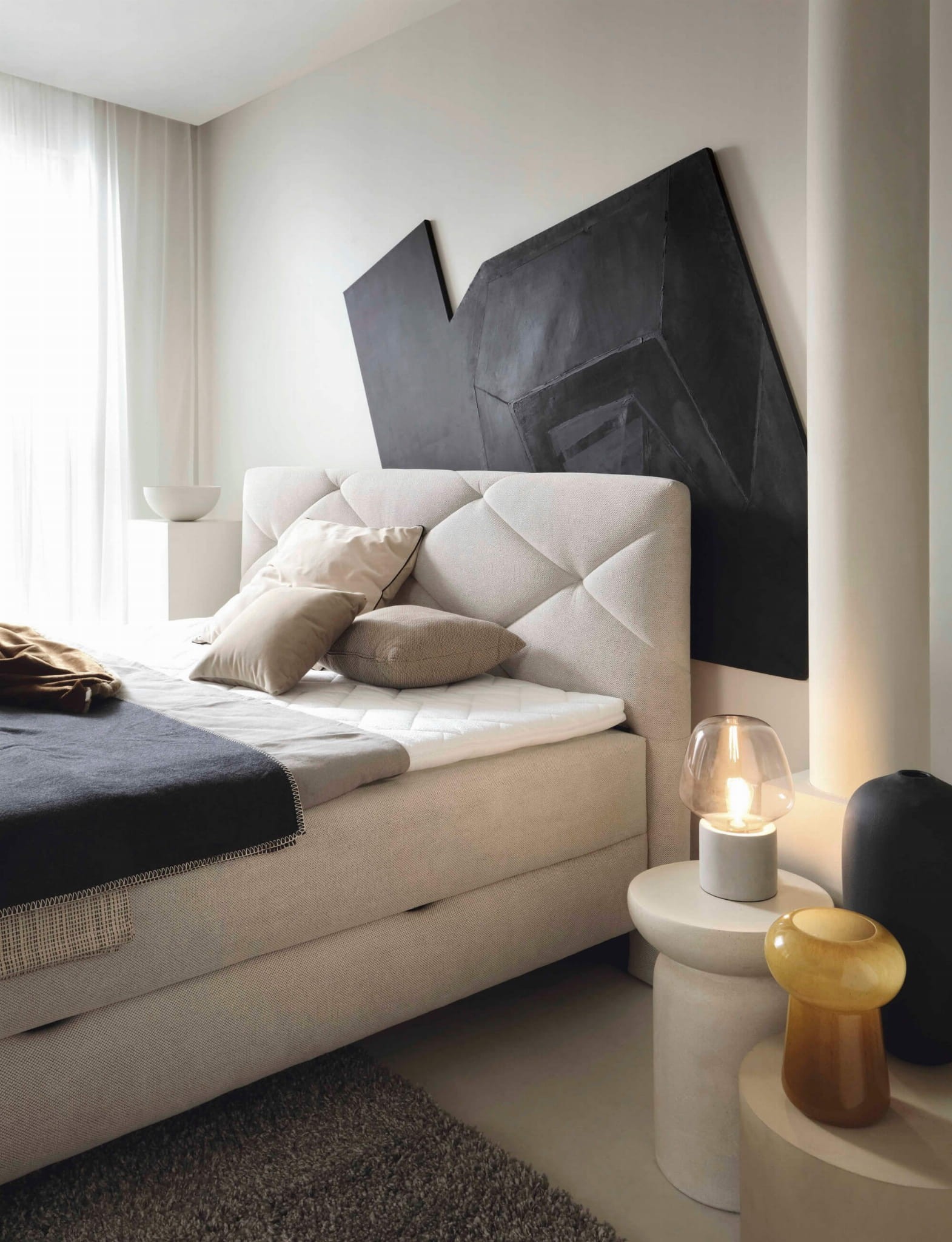 Nowoczesne łóżko kontynentalne 160x200 SENO z materacem, topperem i pięknym wezgłowiem