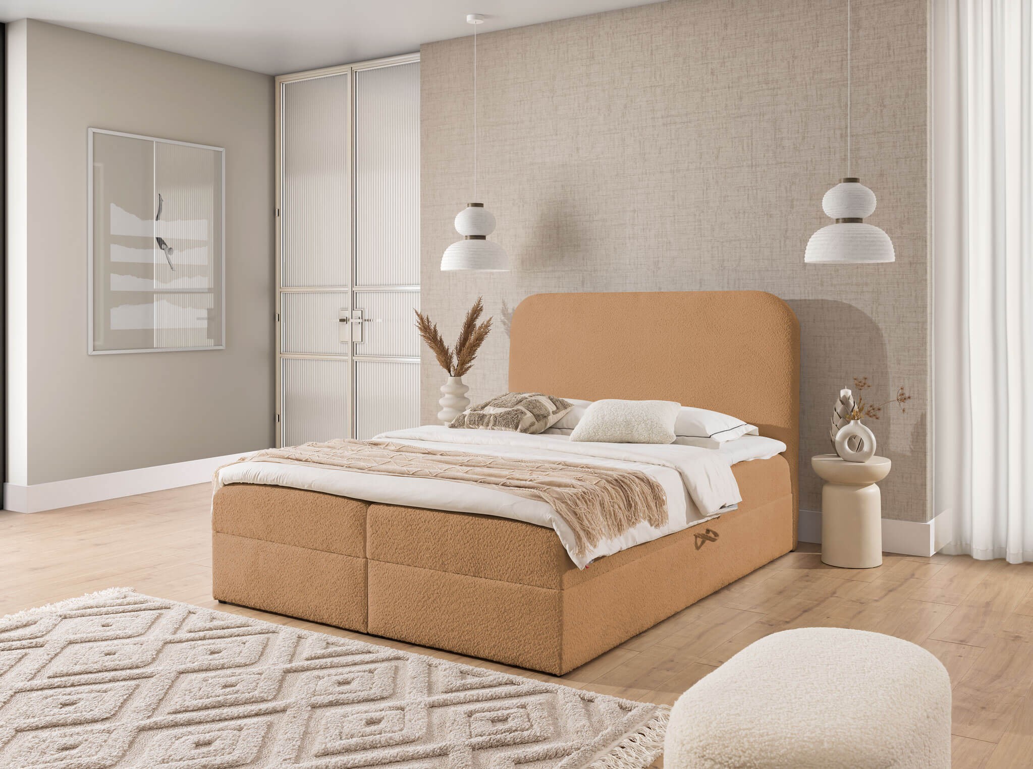 Łóżko kontynentalne z pojemnikiem i topperem ALBA | 200x200 | Kolor do wyboru