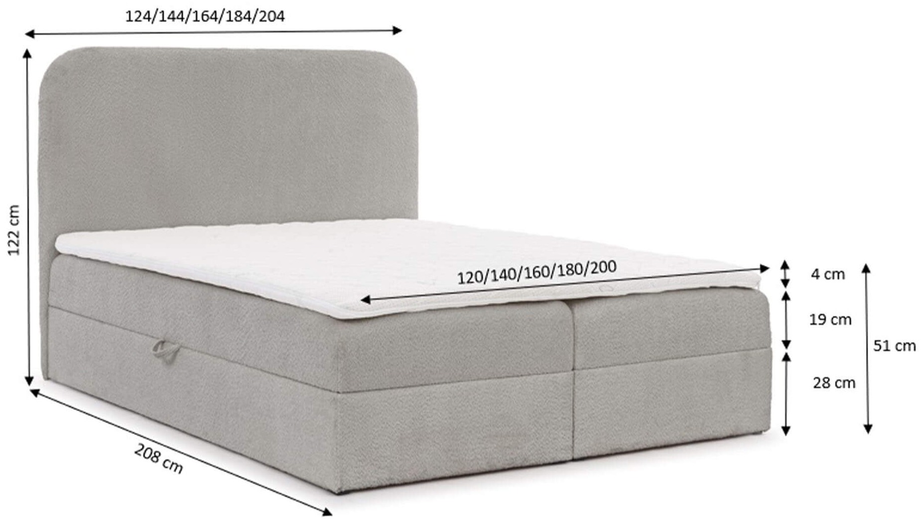 Łóżko kontynentalne z pojemnikiem i topperem ALBA 200 x 200 cm