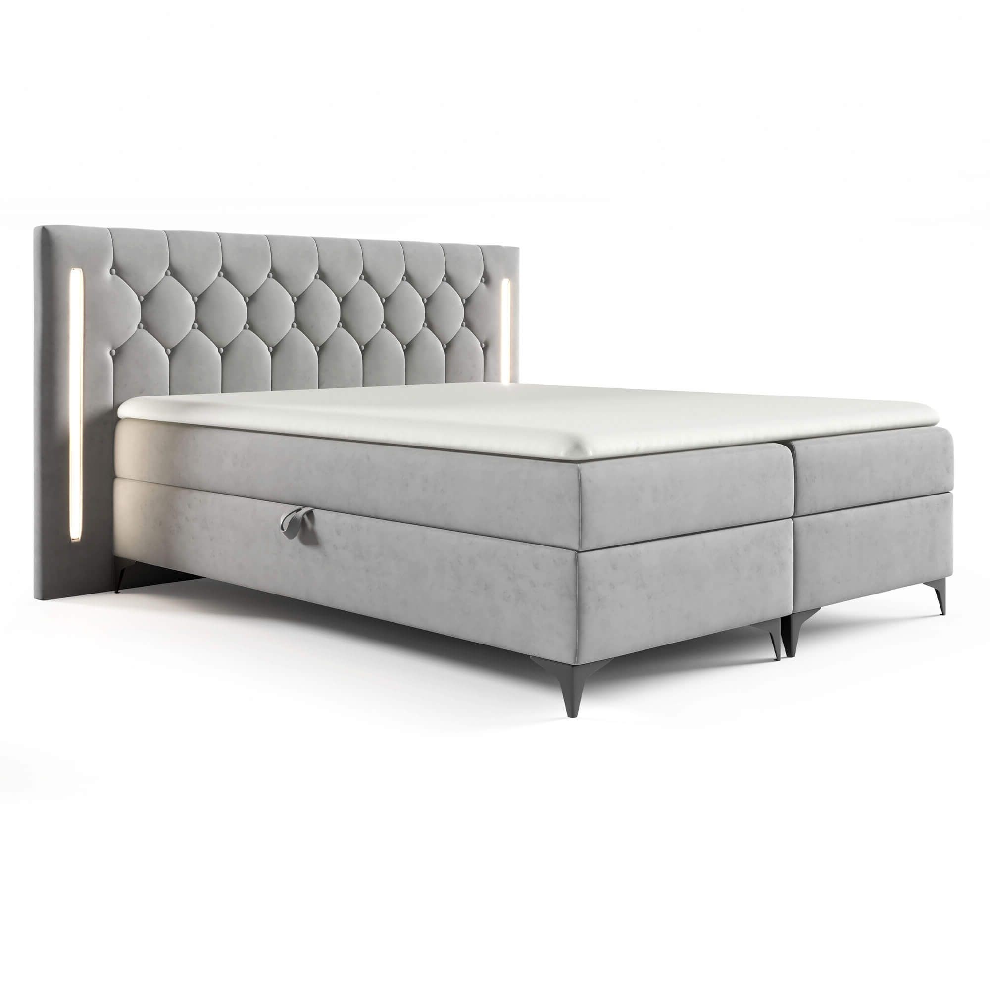 Łóżko kontynentalne z pojemnikiem i topperem CALIFORNIA | 200x200 | Oświetlenie LED | Kolor do wyboru
