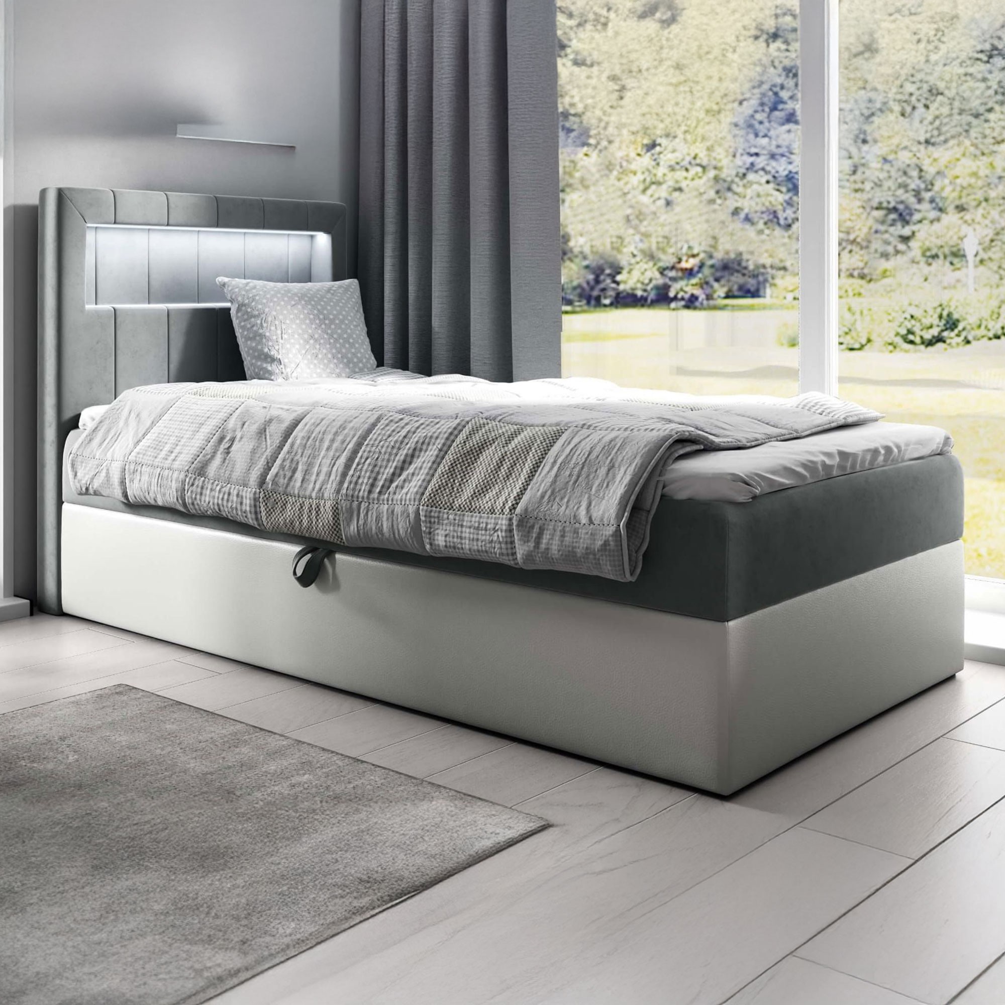 Łóżko kontynentalne z pojemnikiem i topperem GOLD 1 | Młodzieżowe | 90x200 | Oświetlenie LED | Kolor do wyboru