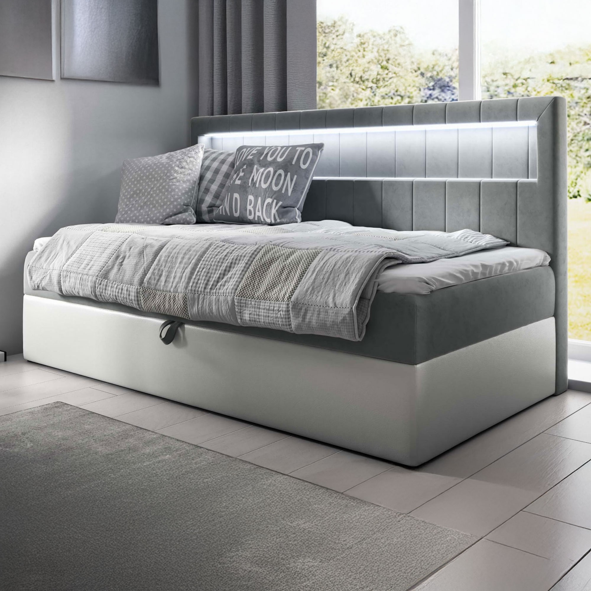 Łóżko kontynentalne z pojemnikiem i topperem GOLD 2 | Młodzieżowe | 80x200 | Oświetlenie LED | Kolor do wyboru