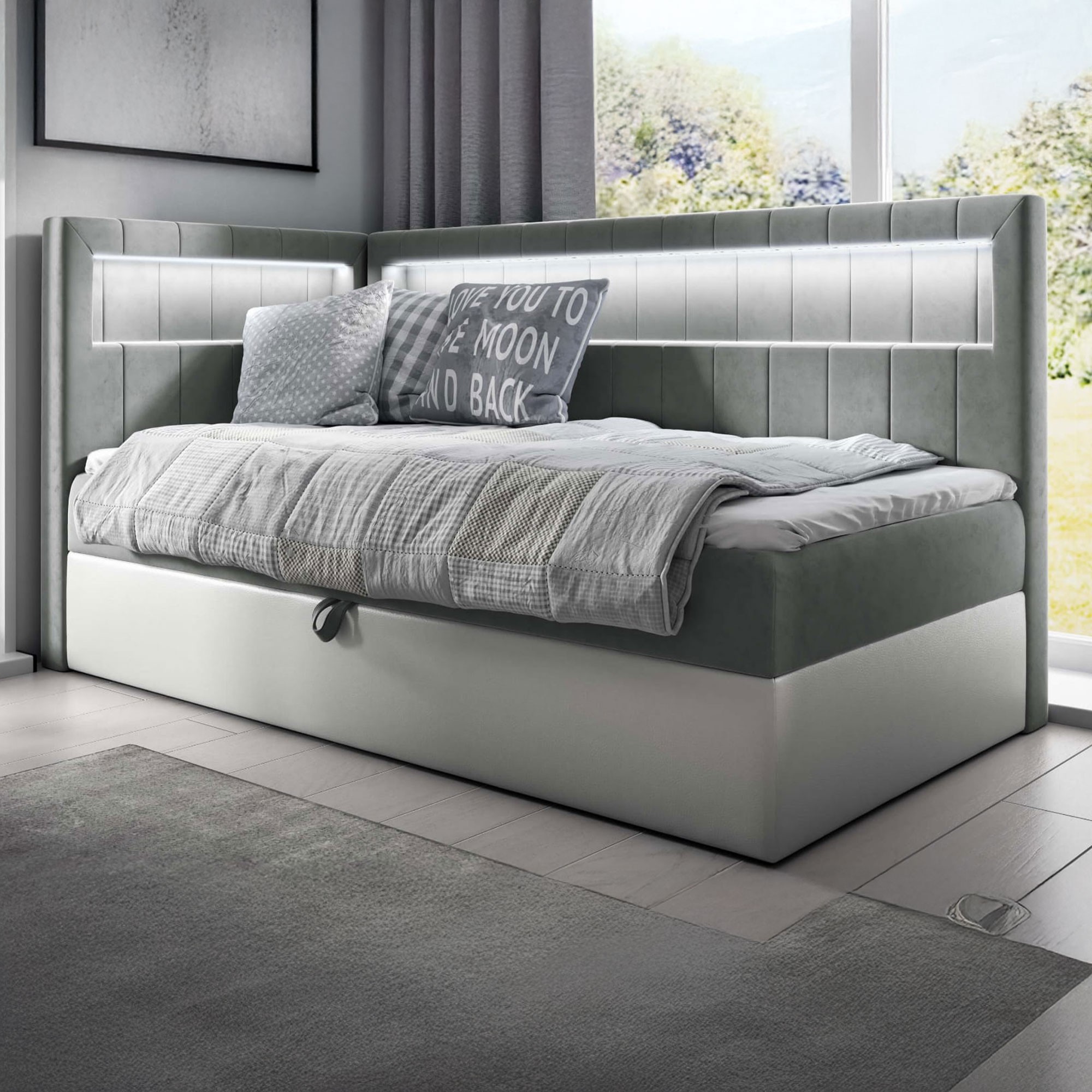 Łóżko kontynentalne z pojemnikiem i topperem GOLD 3 | Młodzieżowe | 100x200 | Oświetlenie LED | Kolor do wyboru