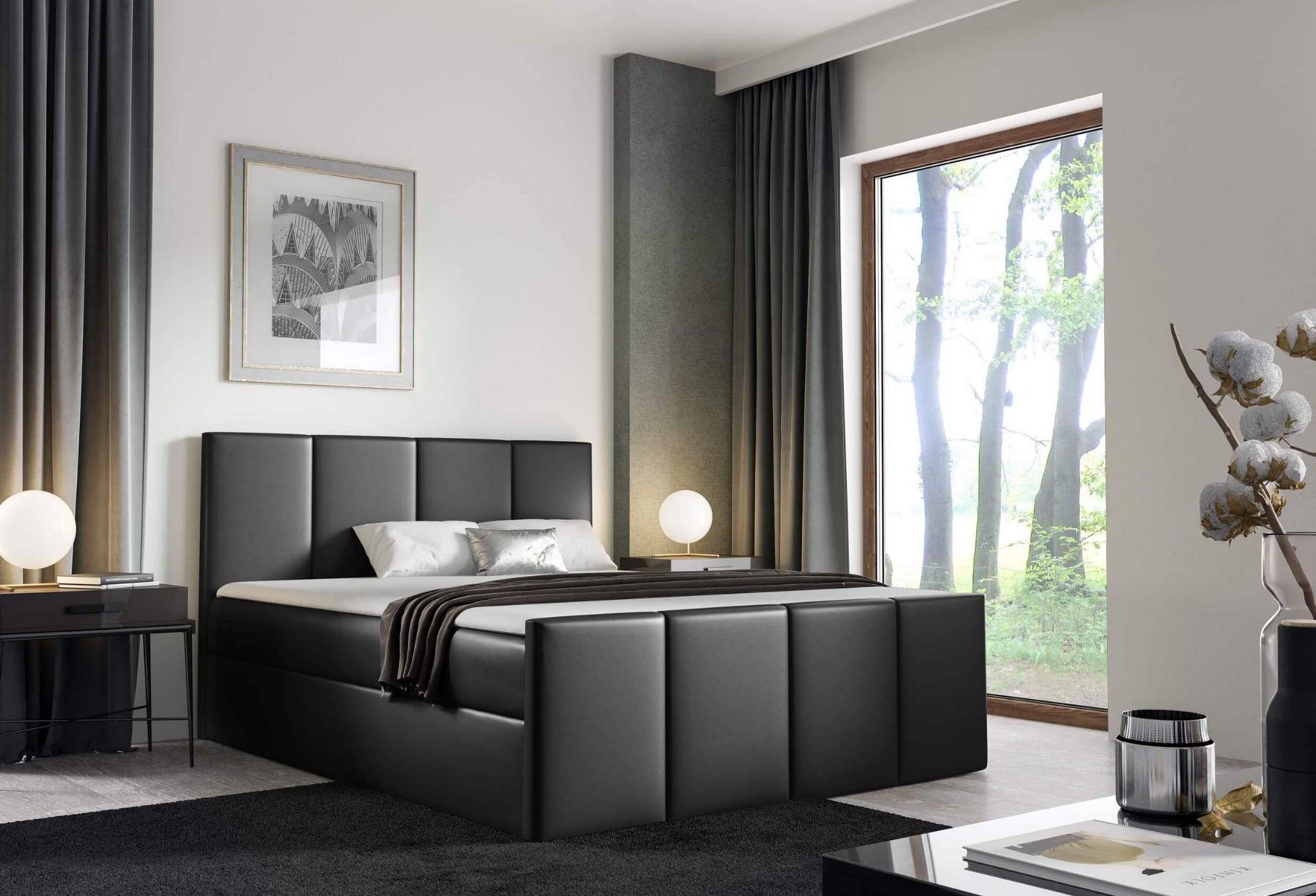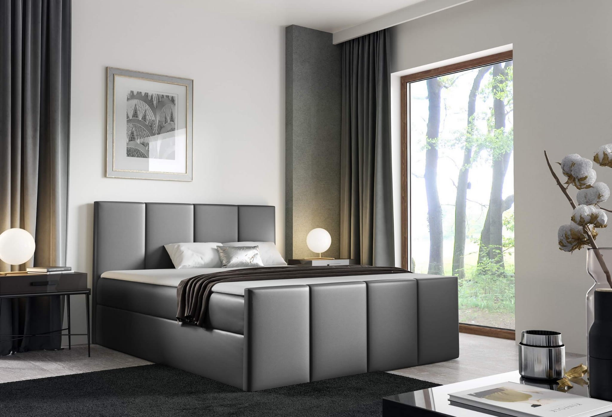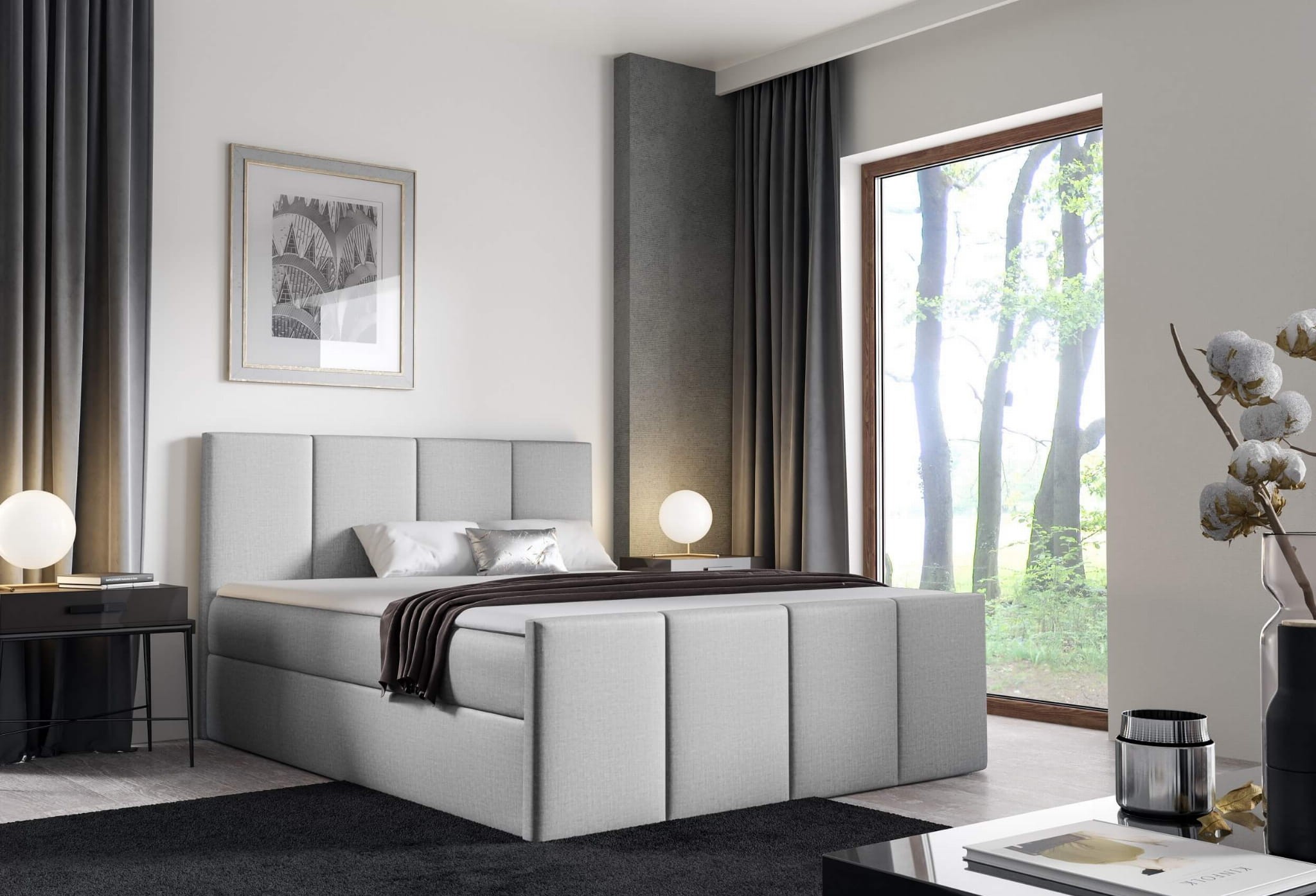 Łóżko kontynentalne z pojemnikiem i topperem LARS | 140x200 | Kolor do wyboru