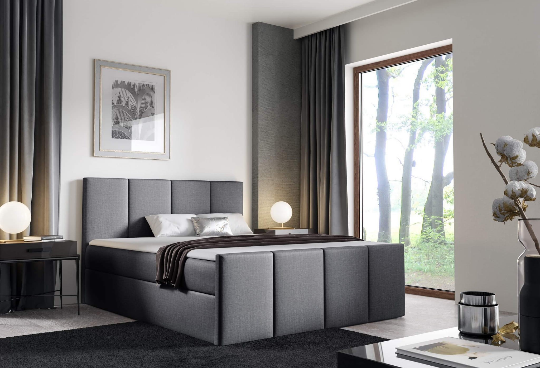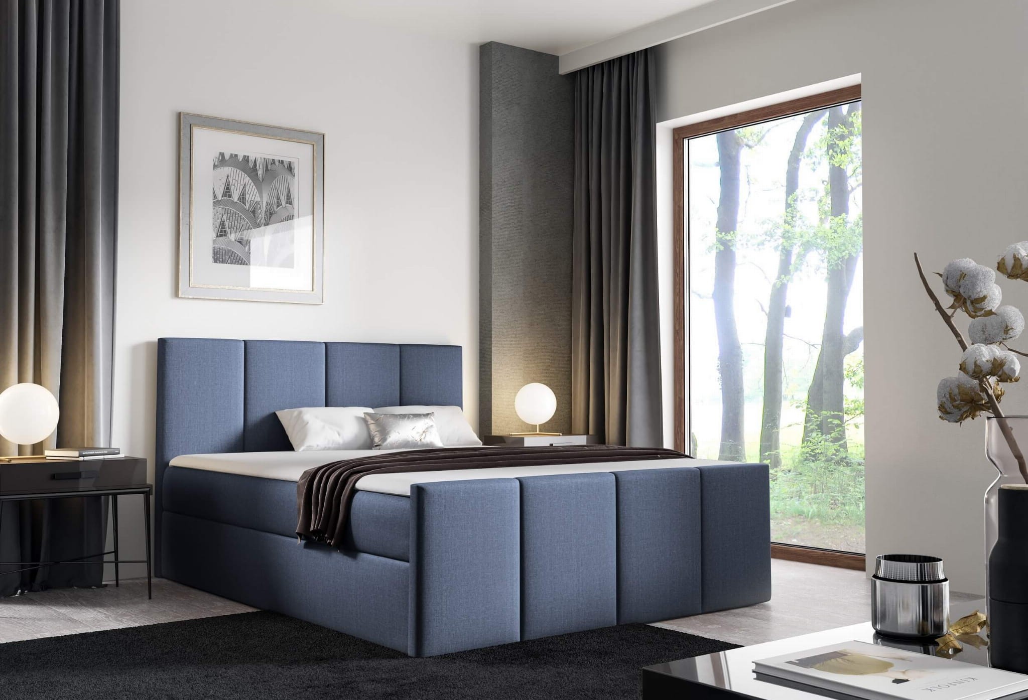 Łóżko kontynentalne z pojemnikiem i topperem LARS | 180x200 | Kolor do wyboru