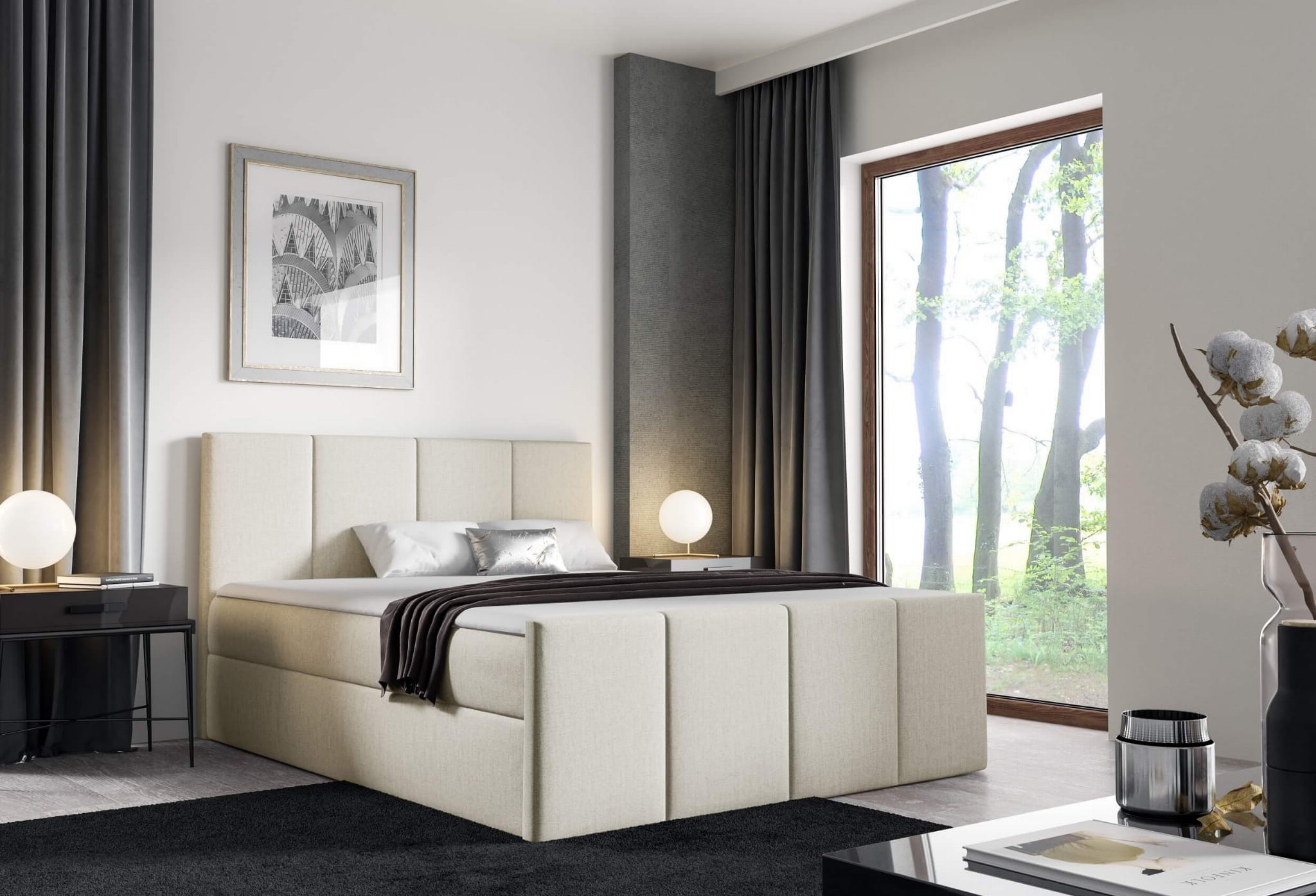 Łóżko kontynentalne z pojemnikiem i topperem LARS | 200x200 | Kolor do wyboru