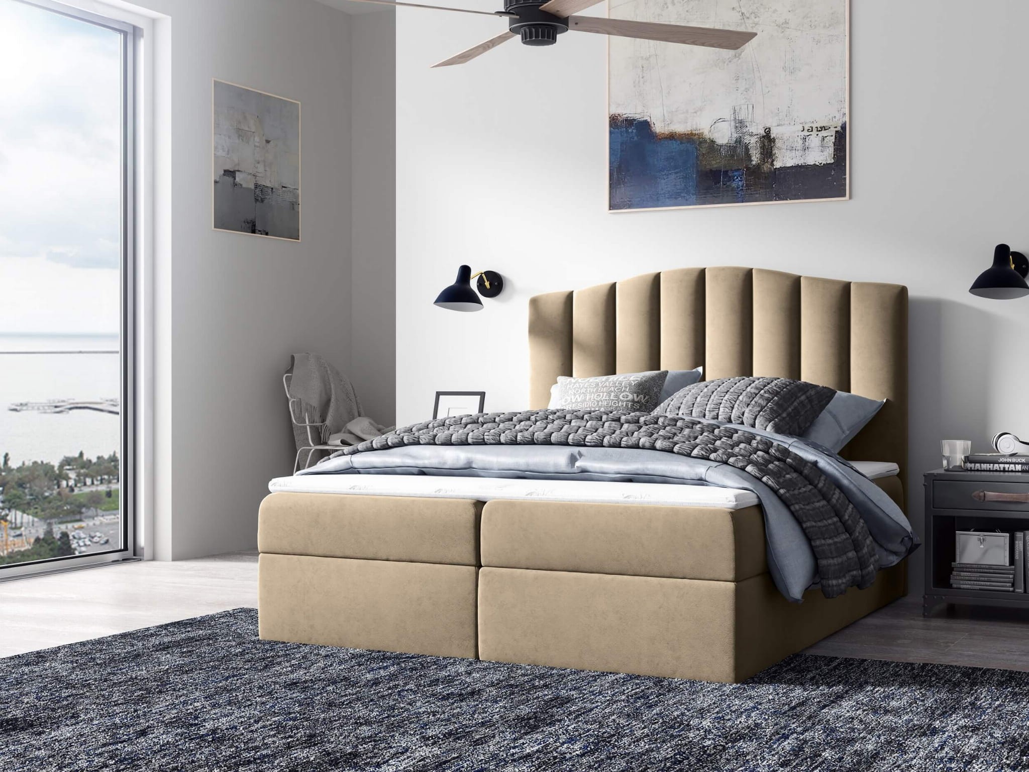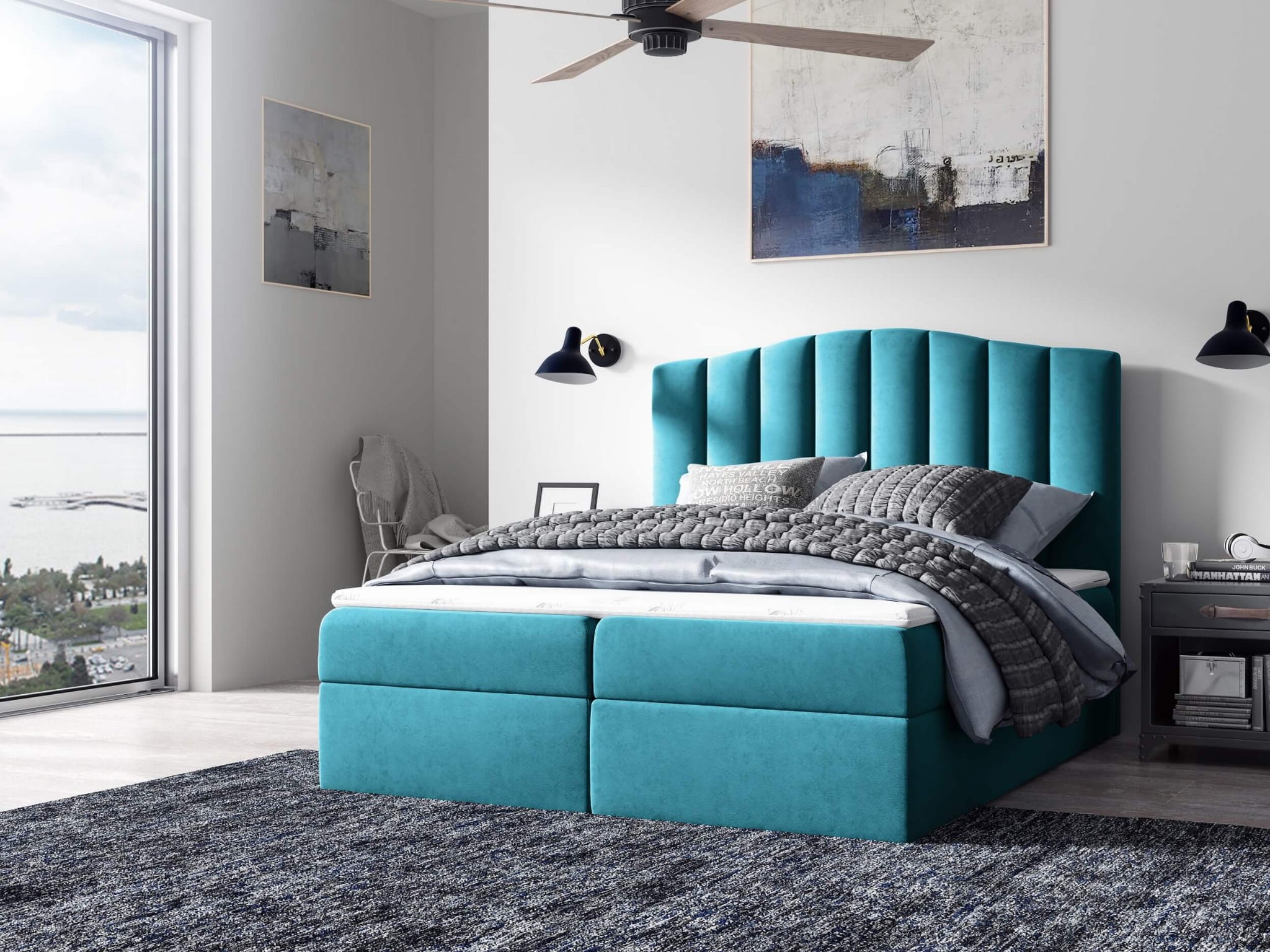 Łóżko kontynentalne z pojemnikiem i topperem LINDOS | 160x200 | Kolor do wyboru