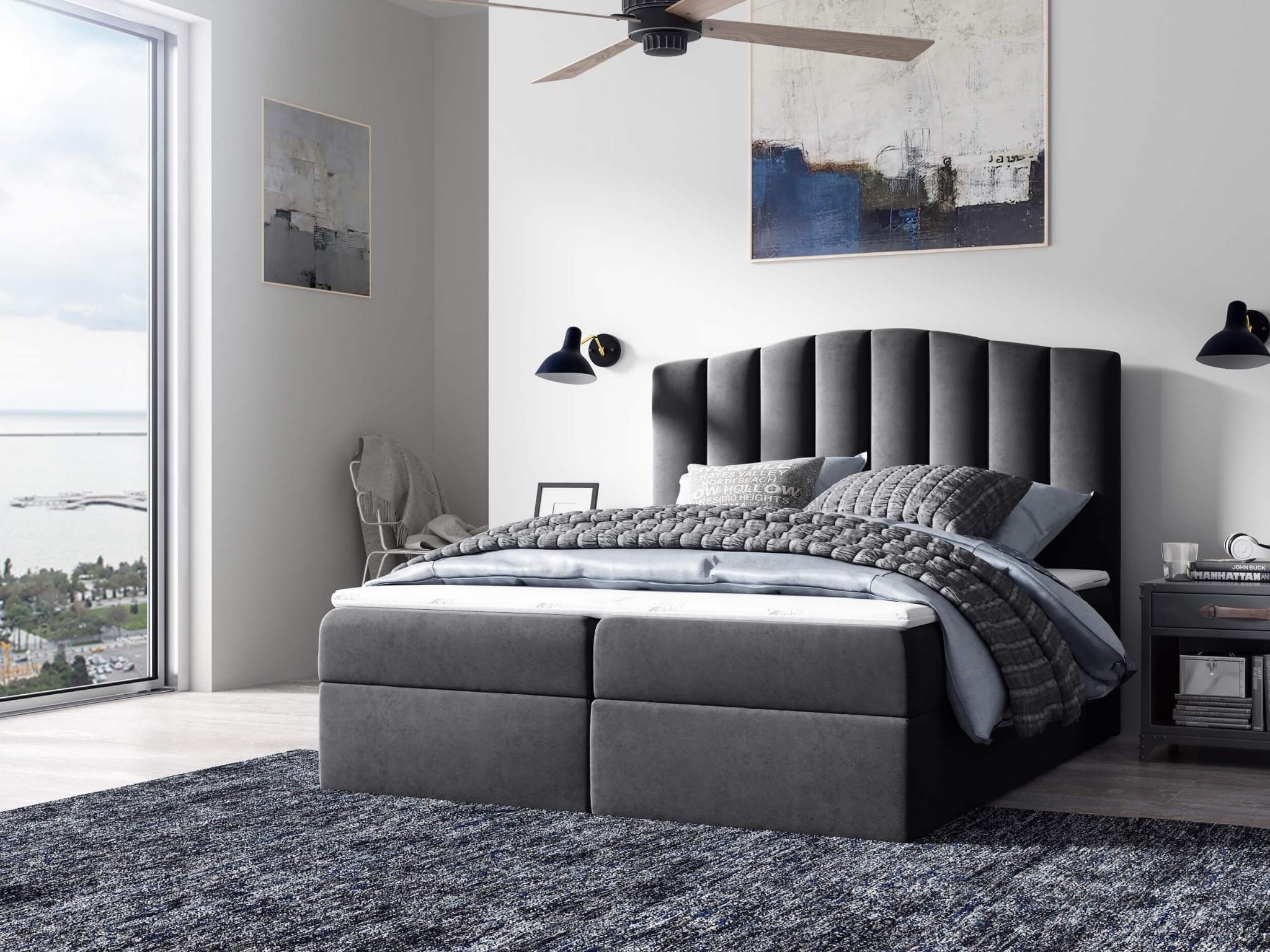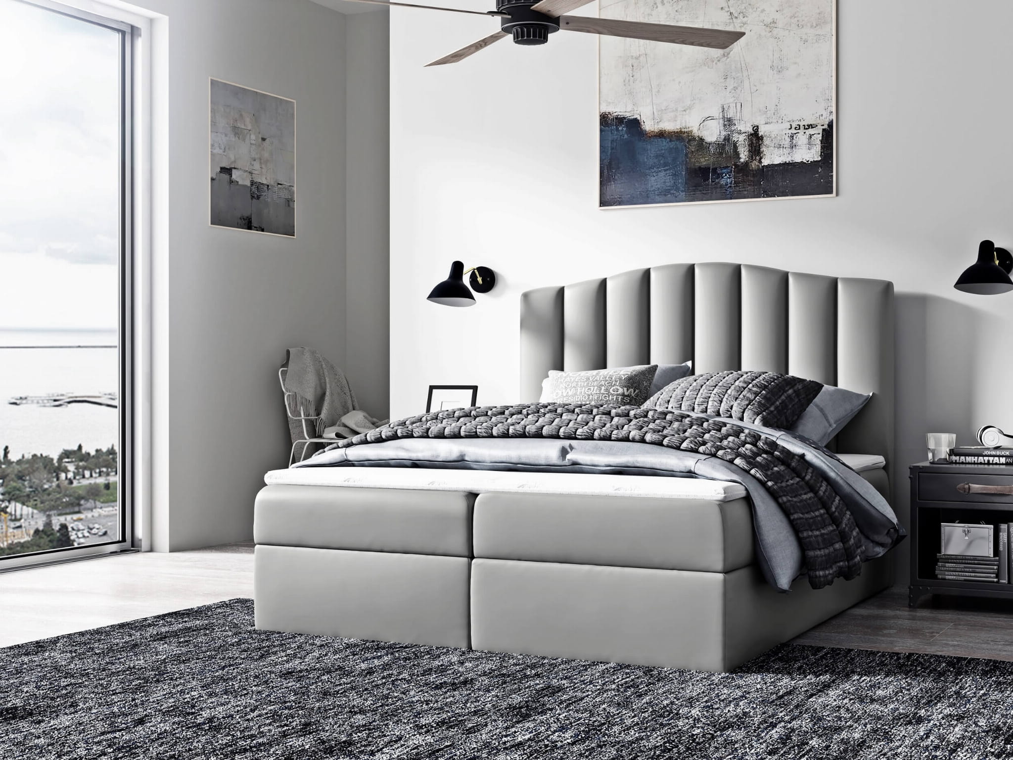 Łóżko kontynentalne z pojemnikiem i topperem LINDOS | 180x200 | Kolor do wyboru