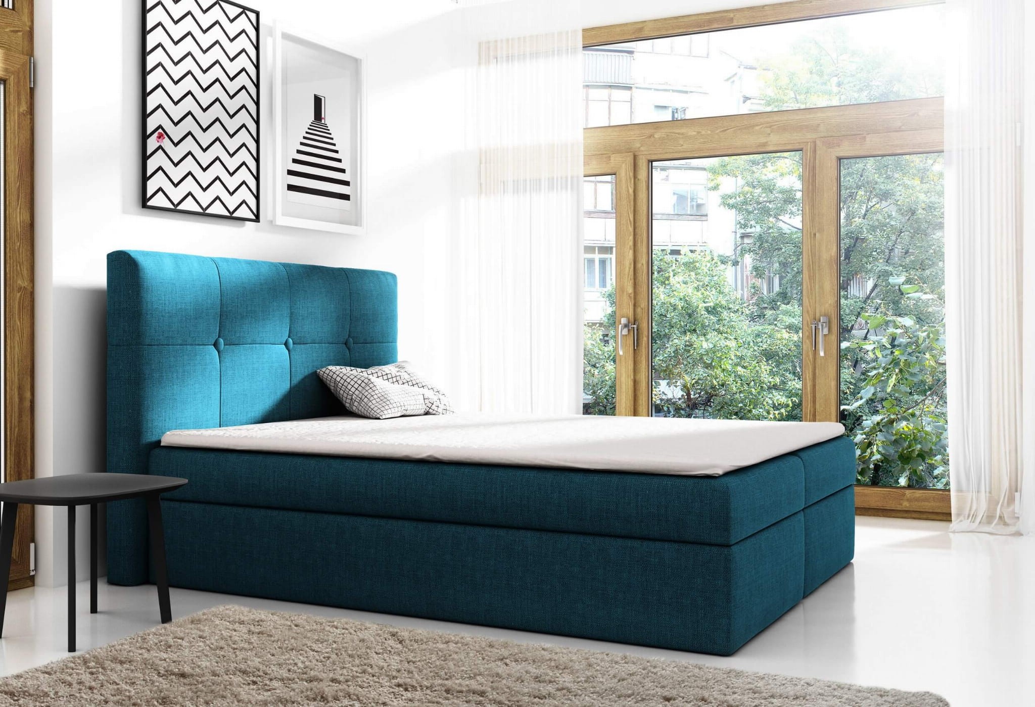 Łóżko kontynentalne z pojemnikiem i topperem LIVORNO | 200x200 | Kolor do wyboru