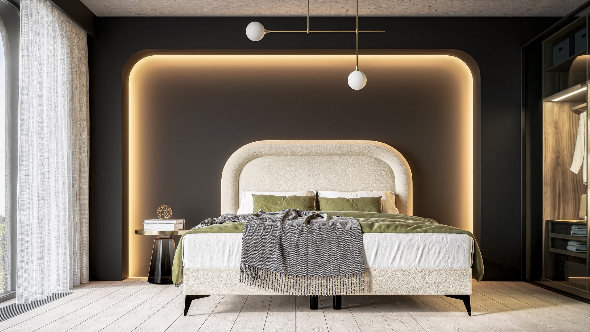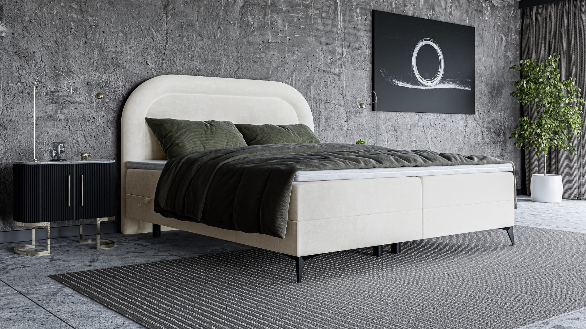 Poszukujesz idealnego łóżka do swojej sypialni? Tej propozycji się nie oprzesz! Prześliczne, przytulne łóżko MELA 160x200 idealnie łączy funkcjonalność z wygodą, oferując dodatkową przestrzeń do przechowywania, jak i optymalną wysokość siedziska. Za elegancki wygląd odpowiada przepiękna forma, staranne wykonanie i smukłe nóżki, których kolor możesz wybrać w kreatorze produktu. Zagłówek na wzór półkola z tapicerowana ramką w obłym kształcie to hit ostatnich sezonów, który zapewnia wyjątkowy komfort i poczucie bezpieczeństwa, ale również stanowi unikalny akcent wnętrza.