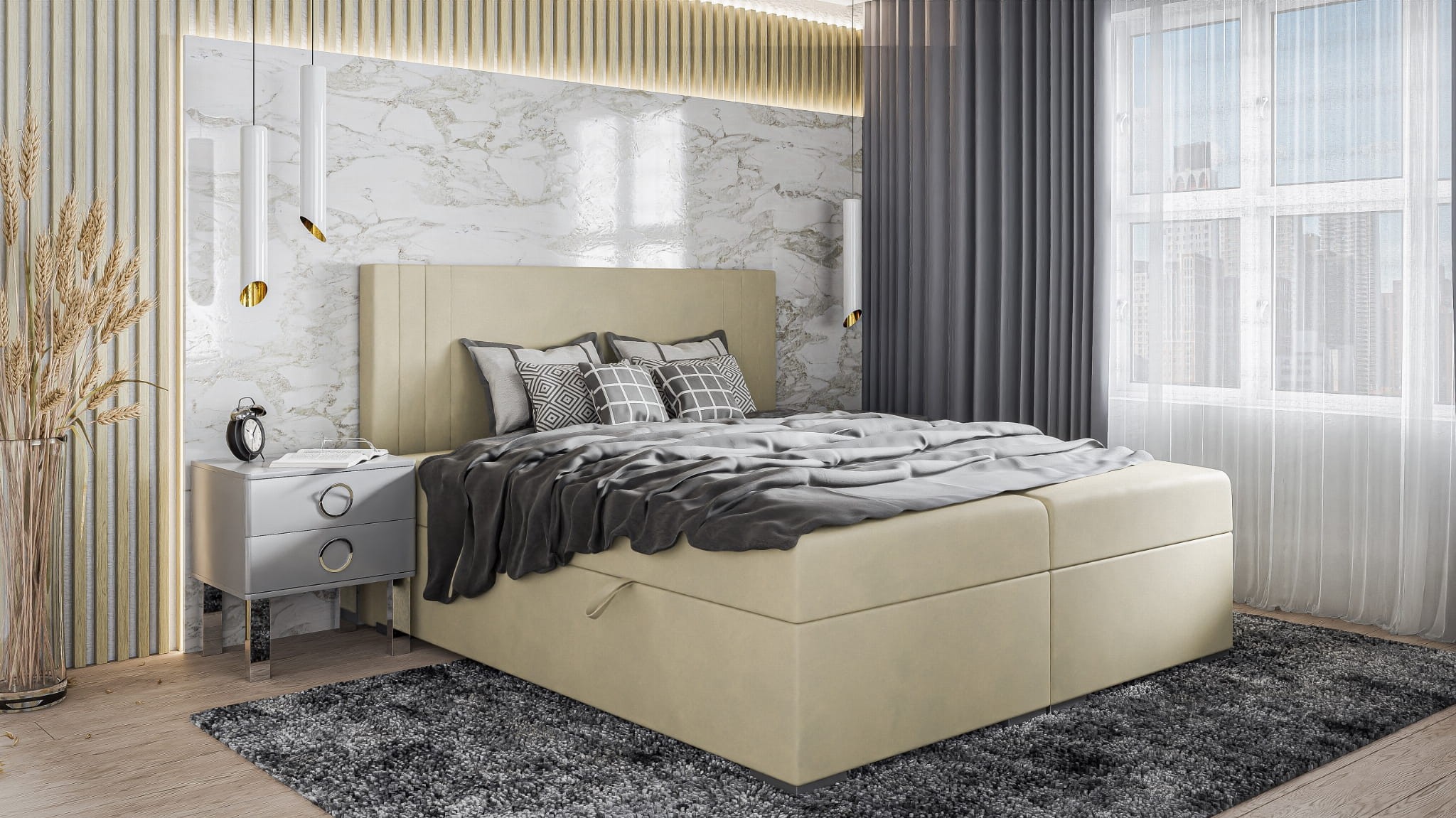 Łóżko kontynentalne z pojemnikiem i topperem MORANO | 160x200 | Kolor do wyboru