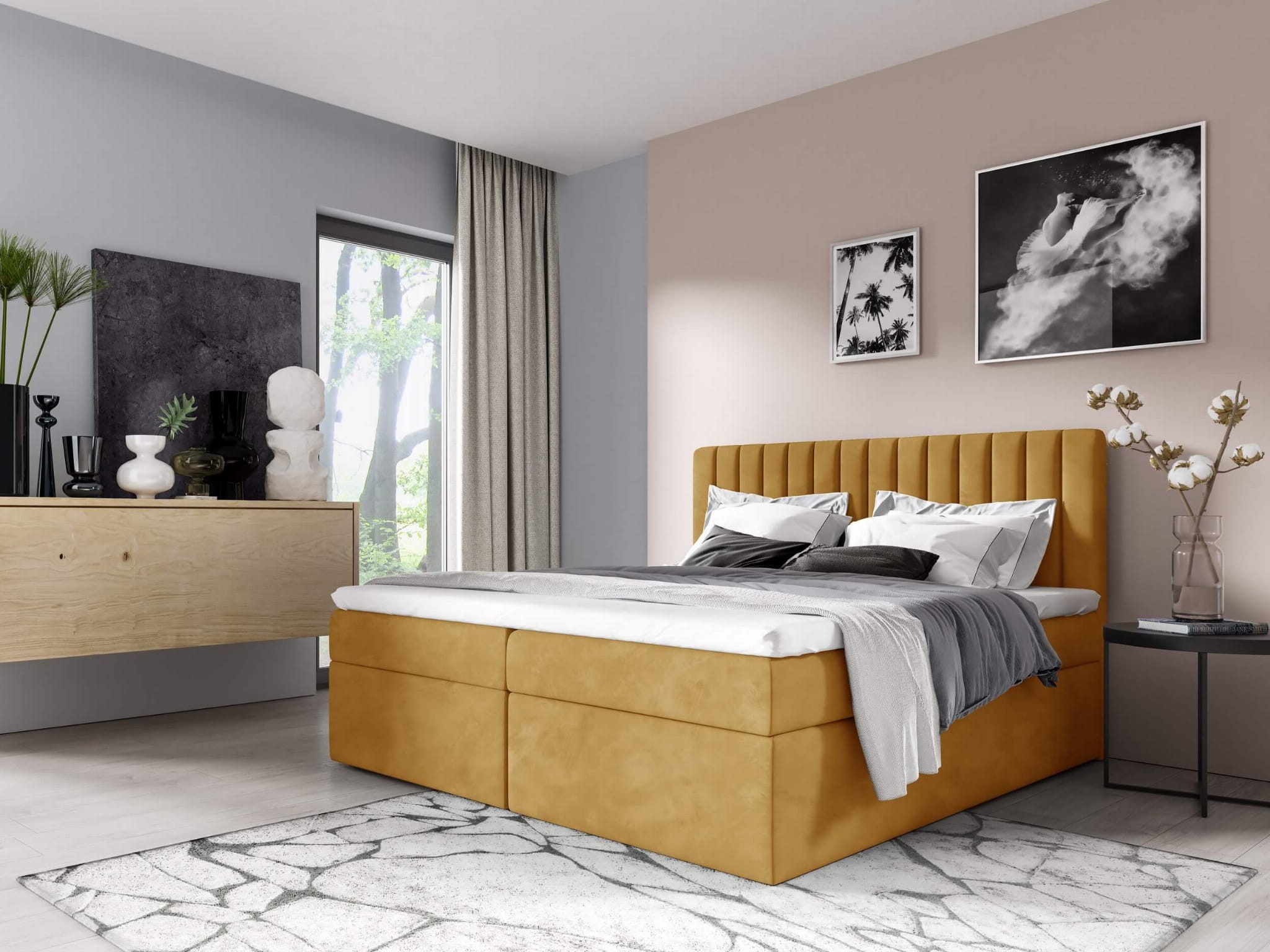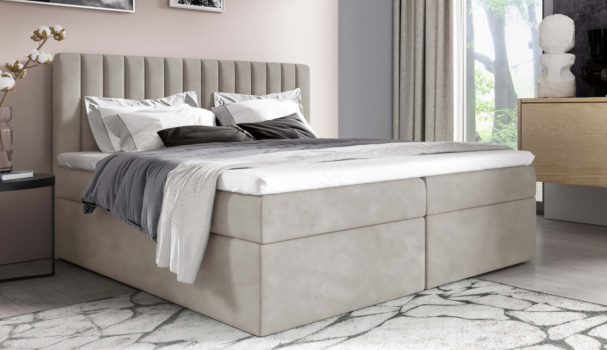 Łóżko kontynentalne z pojemnikiem i topperem PASO | 160x200 | Kolor do wyboru