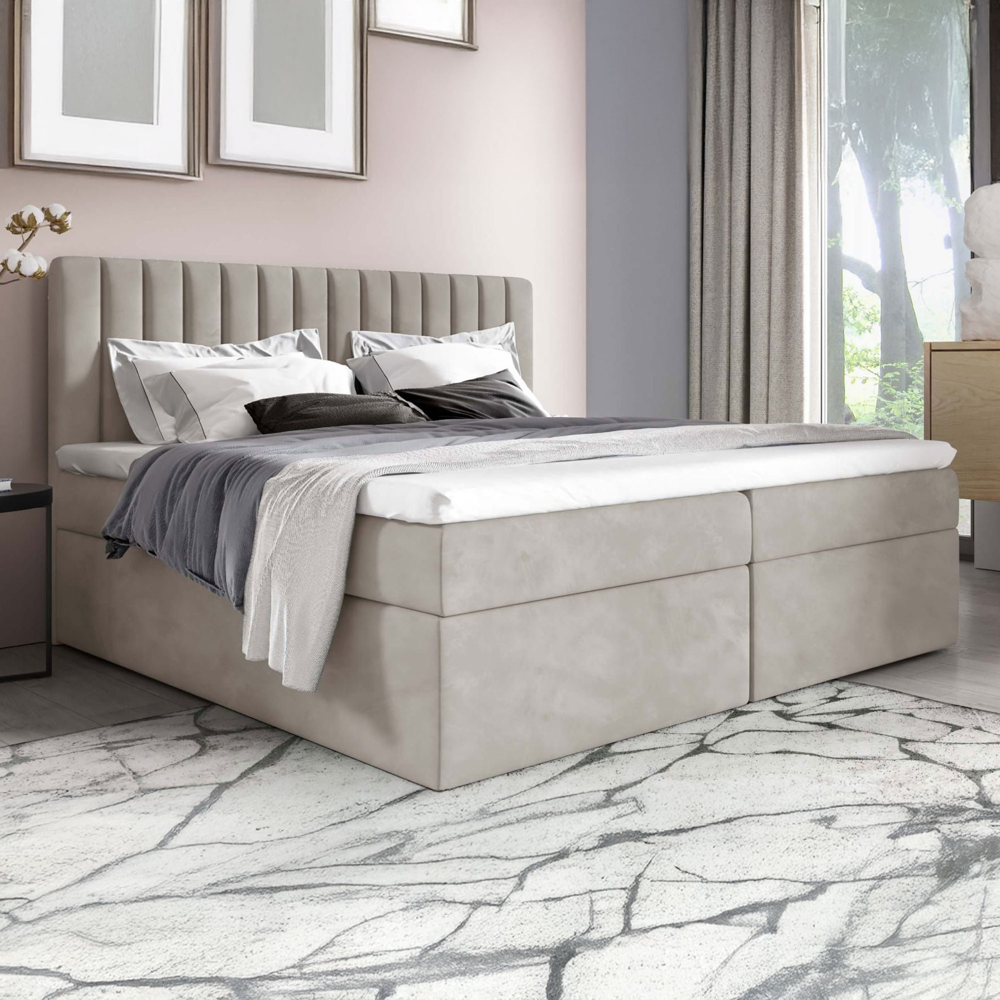 Łóżko kontynentalne z pojemnikiem i topperem PASO | 180x200 | Kolor do wyboru