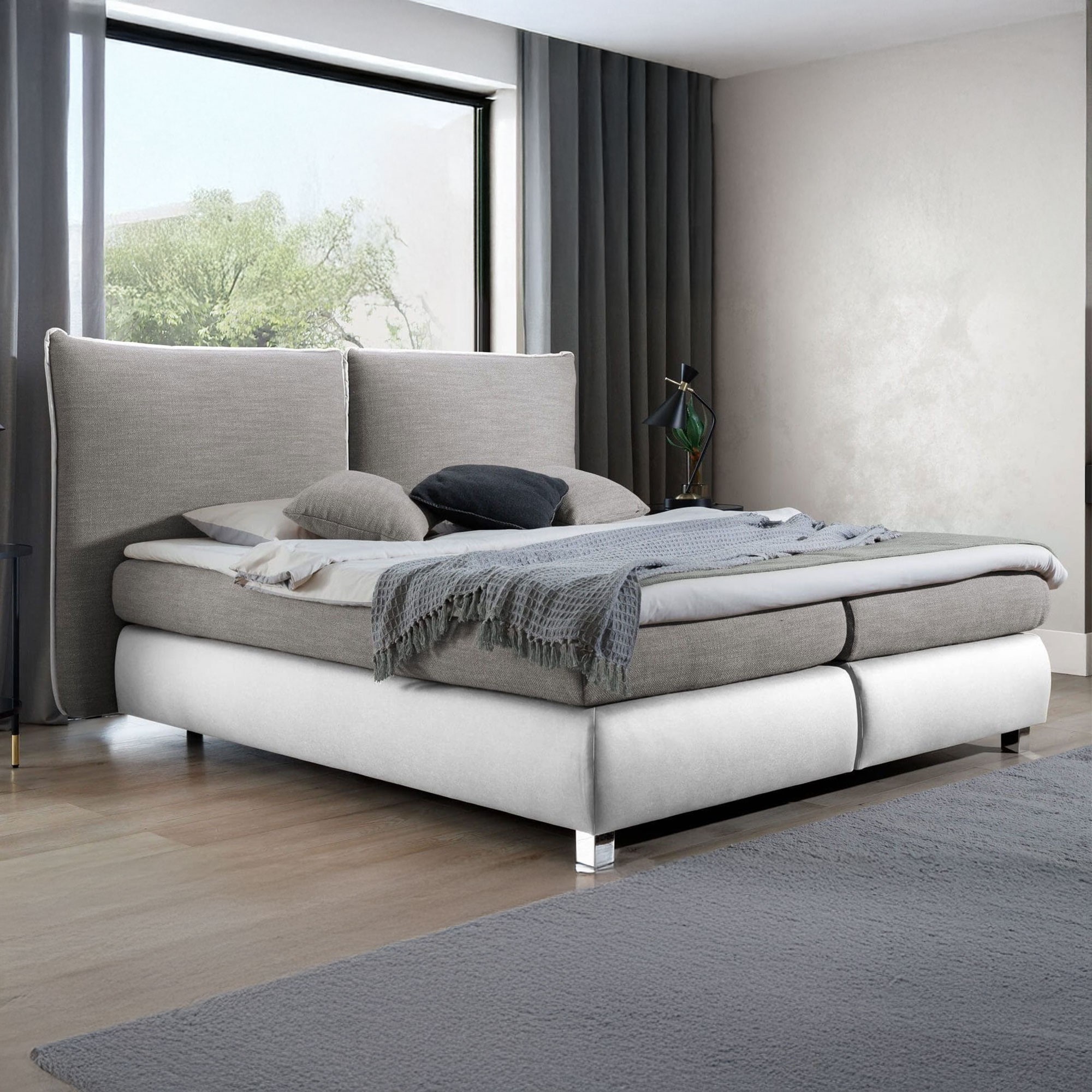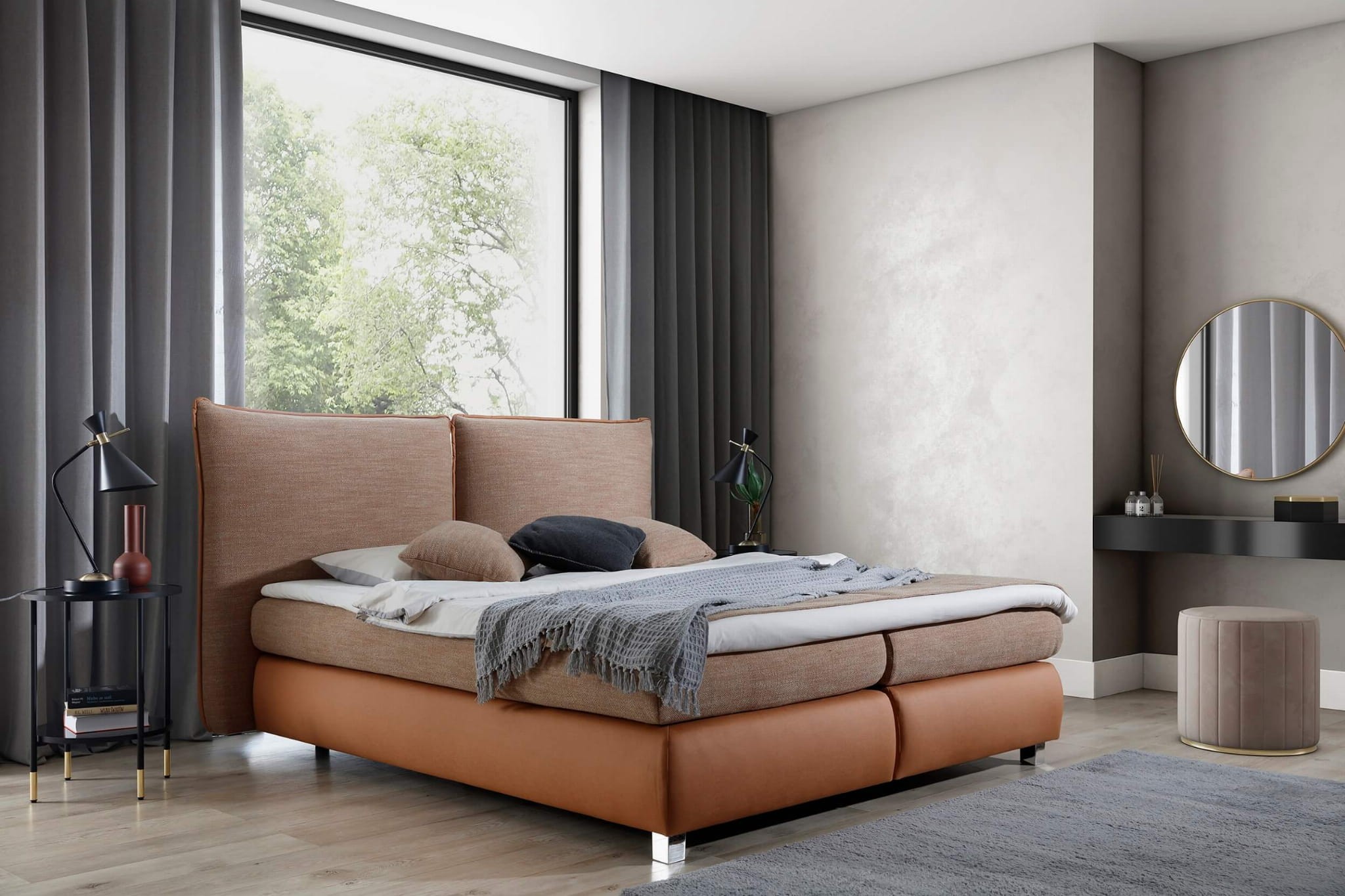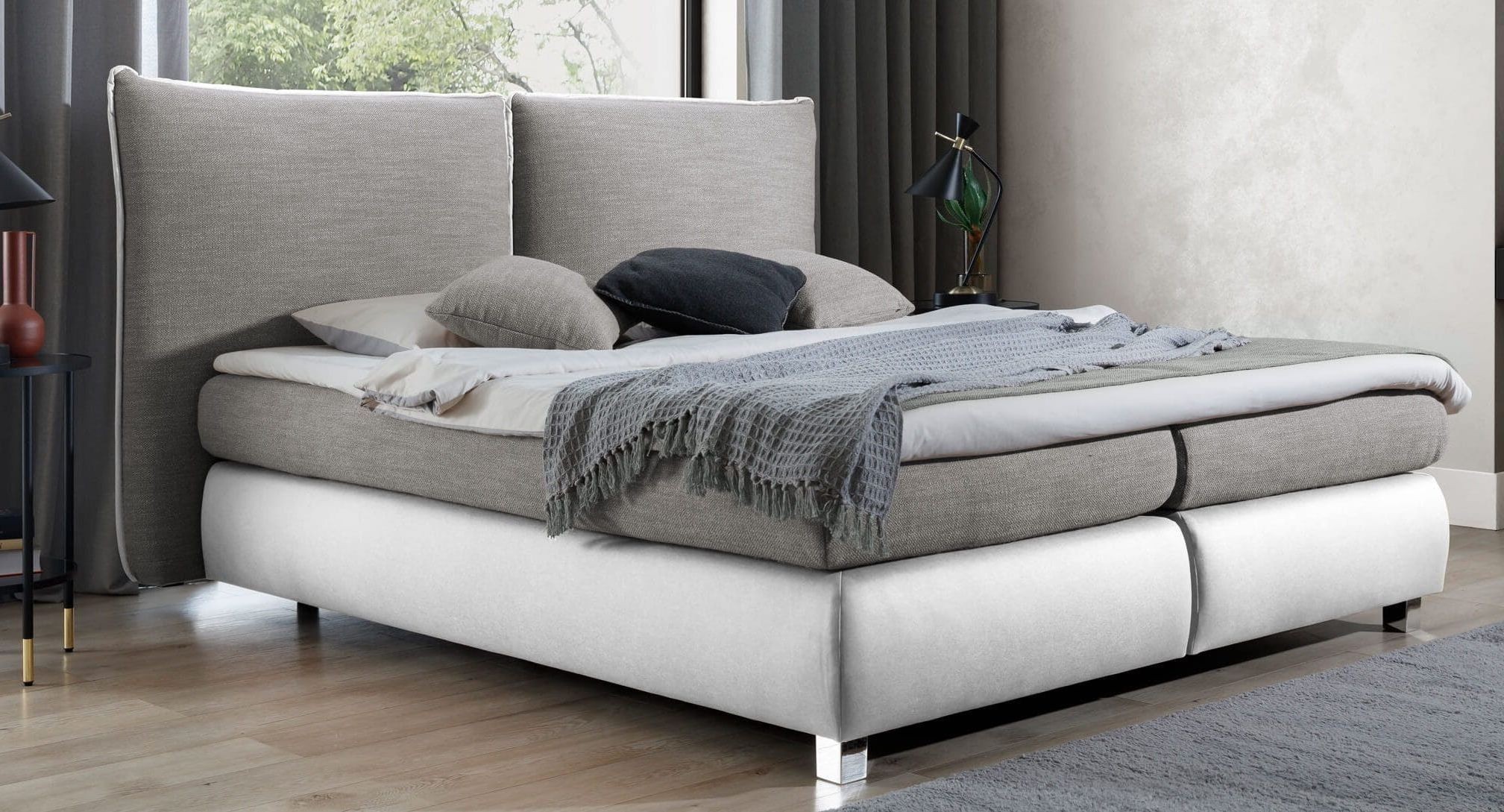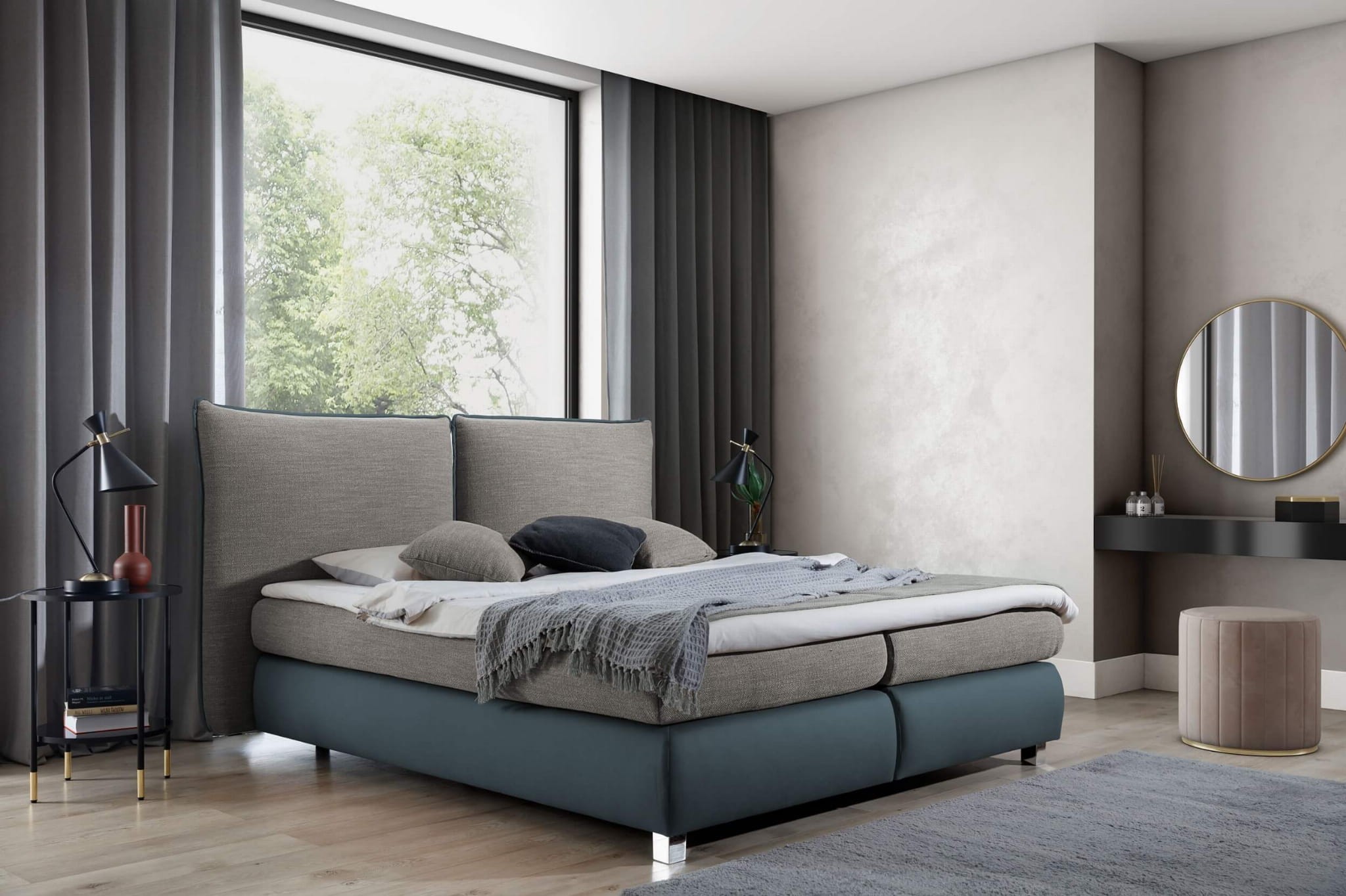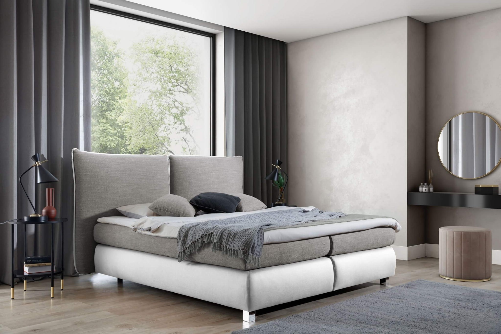 Przepiękne łóżko kontynentalne z oparciem jak miękkie poduszki! Wyjątkowe wezgłowie dodatkowo ozdobione miękką lamówką prezentuje się przytulnie i zachęca do wypoczynku. Podstawę łóżka stanowi skrzynia z dwoma pojemnikami, które otwierane są od przodu i działają niezależnie od siebie, co pozwala na pełną wygodę użytkowania. Warstwę materacy tworzą sprężyny kieszeniowe pocket, pianka wysokoleastyczna oraz topper - materac nawierzchniowy, który dostarczany jest w komplecie z łóżkiem 160x200. Całość zapewnia wygodny i przytulny sen, a wielopoziomowa konstrukcja ułatwia wstawanie i zasypianie. Nowoczesny charakter podkreślają srebrne nóżki, dodające również stabilności i równowagi. Dzięki standardowej powierzchni spania 160x200, łóżko zapewnia wystarczająco miejsca na komfortowy wypoczynek.