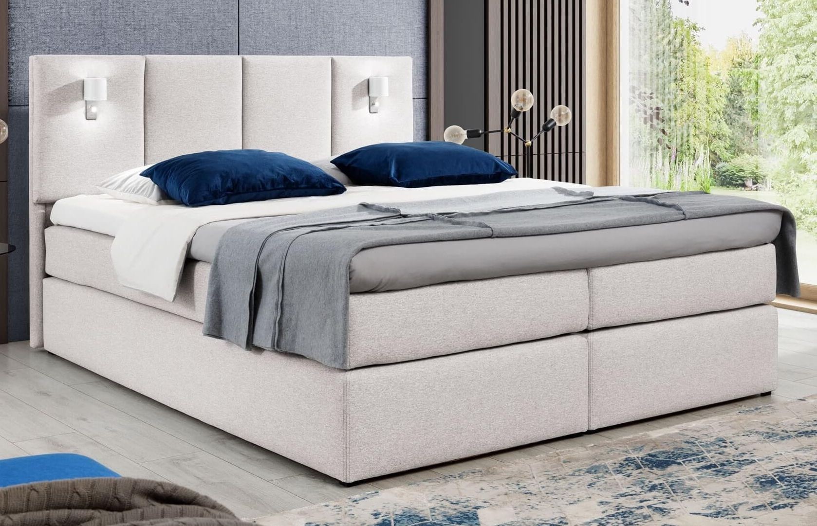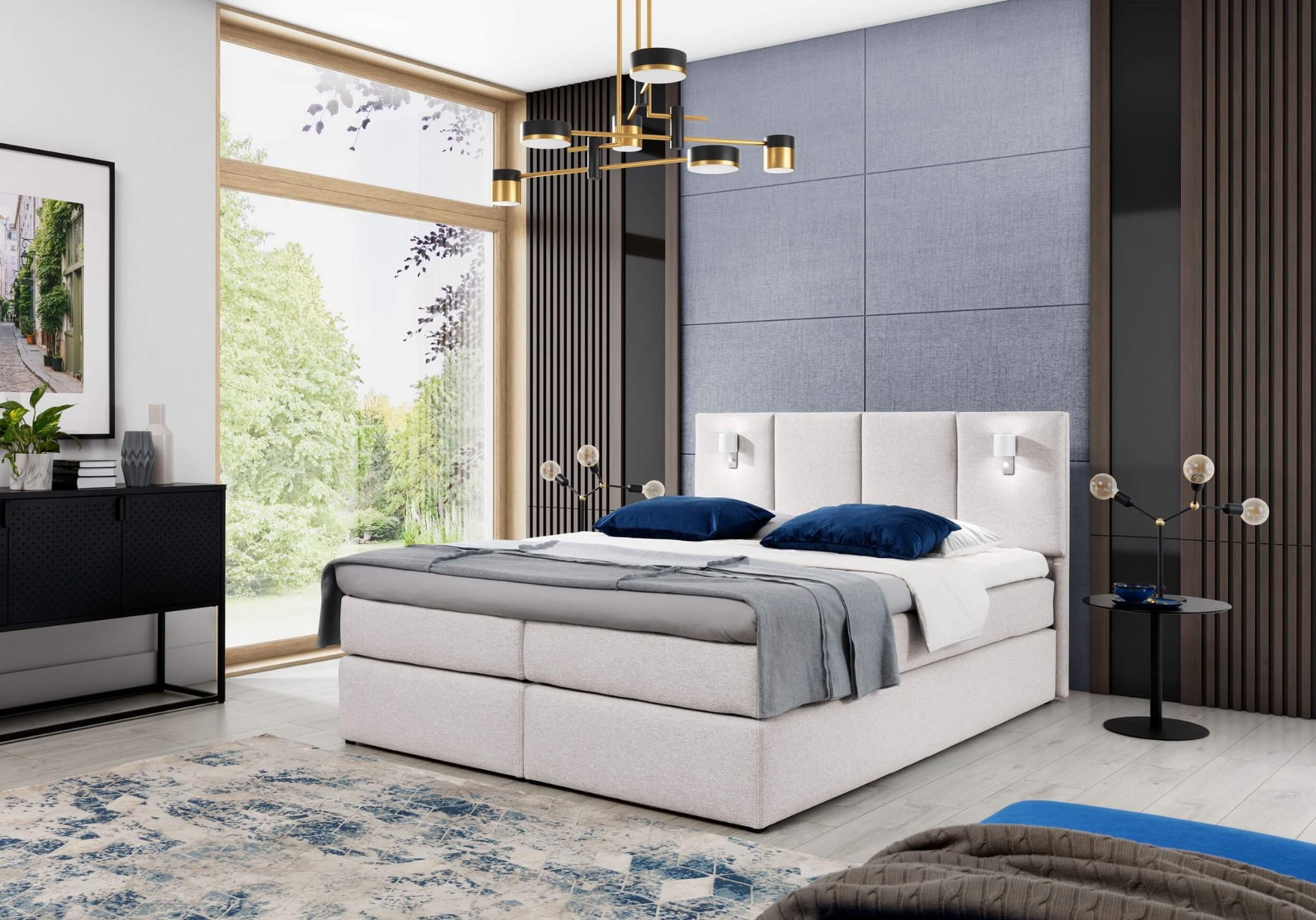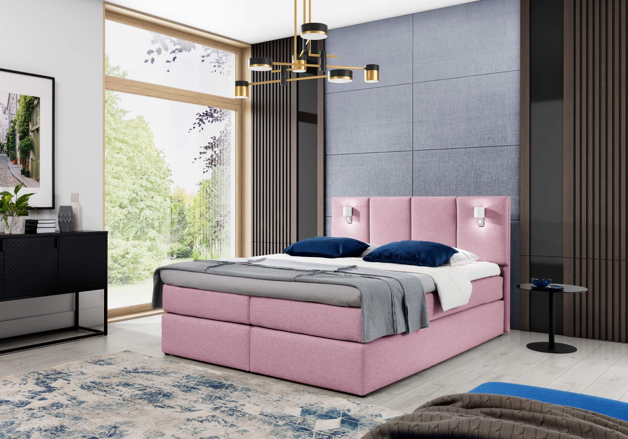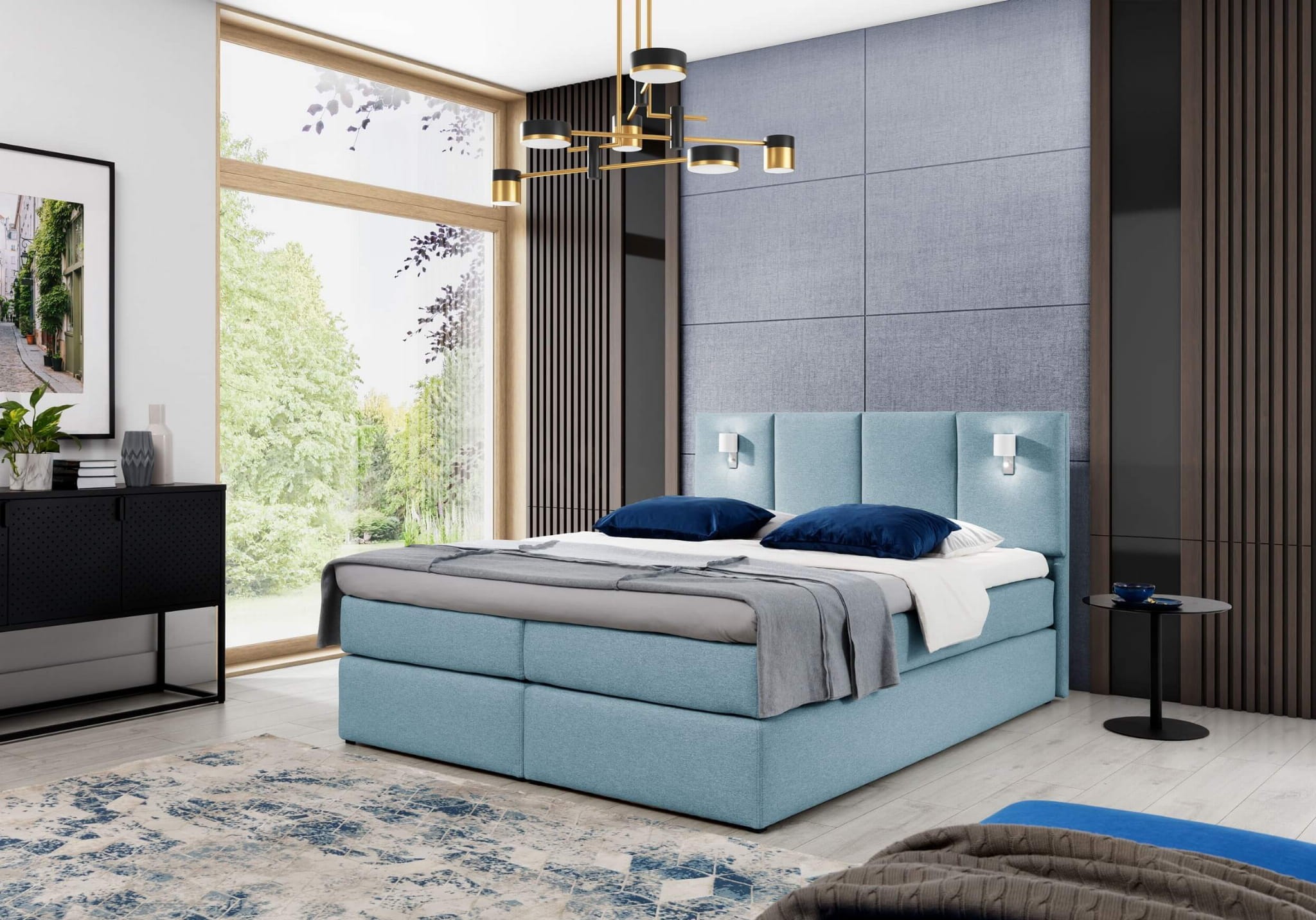 Łóżko kontynentalne z topperem i oświetleniem ISTRIA | 180x200 | Kolor do wyboru