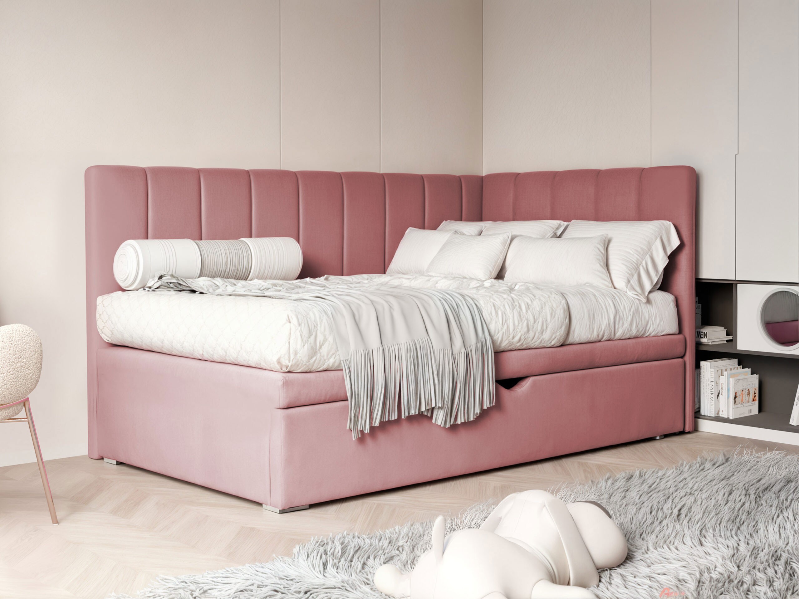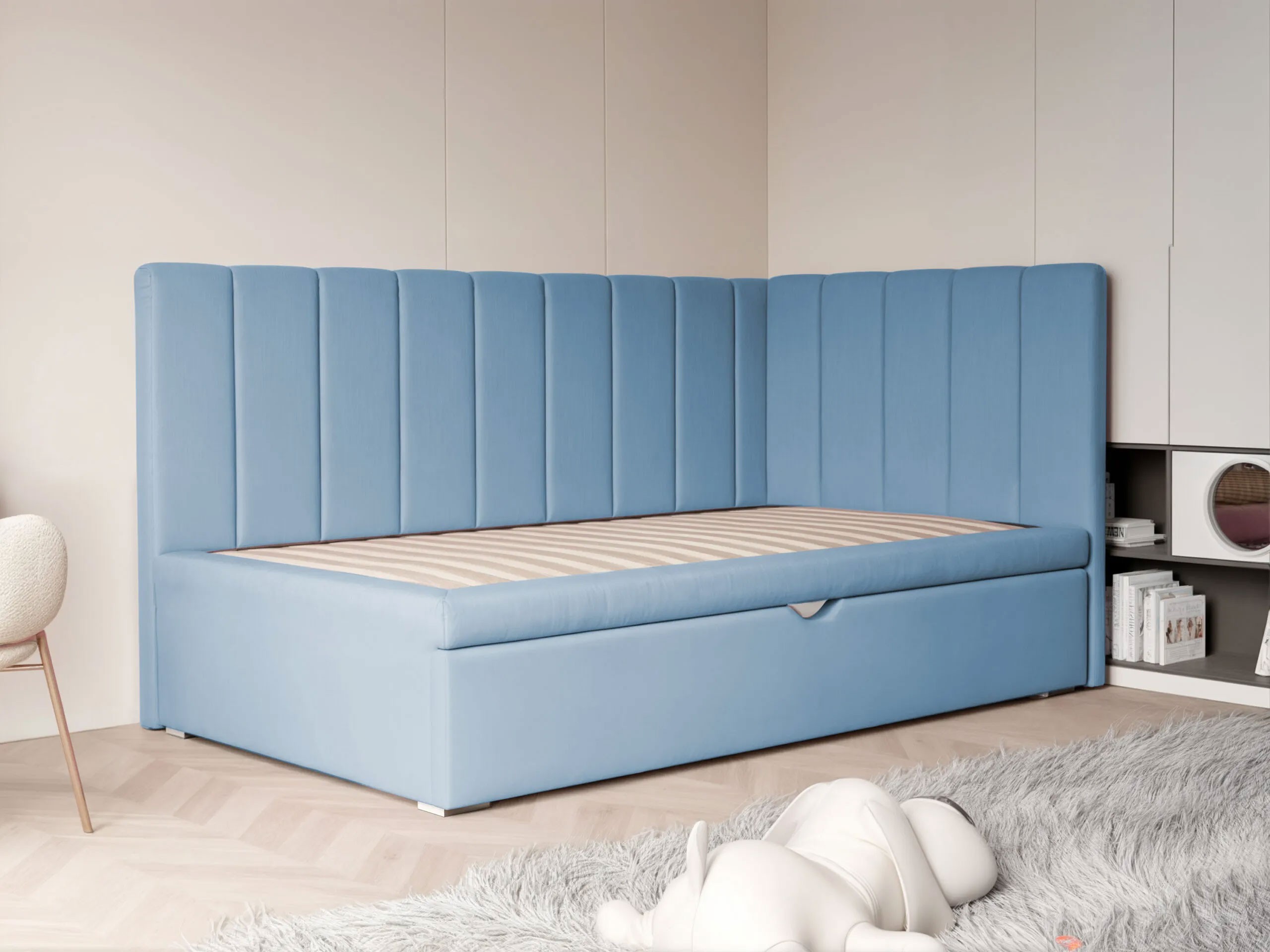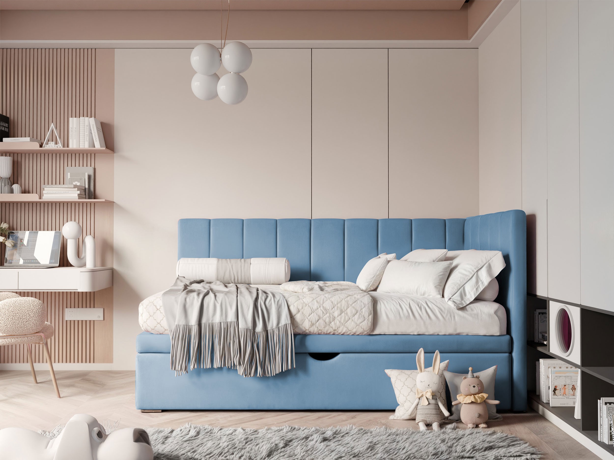 Łóżko młodzieżowe CHASE 100x200 | Kolor do wyboru to doskonały wybór dla rodziców, którzy poszukują komfortowego, funkcjonalnego i stylowego mebla do pokoju dziecka lub nastolatka. Jego wyjątkowa forma, wyróżniająca się tapicerowanym, narożnym zagłówkiem, sprawia, że łóżko staje się nie tylko miejscem wypoczynku, ale też przytulną strefą relaksu, idealną do czytania książek, oglądania bajek czy rozmów z przyjaciółmi. Miękkie oparcie gwarantuje wygodę i bezpieczeństwo, a jednocześnie pełni funkcję dekoracyjną, nadając wnętrzu ciepłego i eleganckiego charakteru. Nowoczesne, pionowe przeszycia dodają konstrukcji lekkości i harmonii, podkreślając staranne wykończenie mebla. Cała bryła została pokryta przyjemną w dotyku tkaniną, która nie tylko prezentuje się wyjątkowo estetycznie, ale także wyróżnia się odpornością na codzienne użytkowanie i łatwością czyszczenia. Dzięki temu łóżko CHASE przez długi czas zachowuje swój nienaganny wygląd, nawet w intensywnie użytkowanej przestrzeni. To idealne rozwiązanie zarówno do pokoju dziewczynki, jak i chłopca – szeroka gama kolorystyczna pozwala dopasować mebel do każdej aranżacji, od pastelowych wnętrz po bardziej wyraziste i młodzieżowe stylizacje. Nieocenionym atutem tego modelu jest praktyczna szuflada na pościel, która dyskretnie ukryta pod ramą łóżka, zapewnia dodatkową przestrzeń do przechowywania i pomaga utrzymać porządek w pokoju. Solidna podstawa oparta na drewnianych listwach gwarantuje stabilność oraz komfortowy sen, a odpowiednia wysokość ułatwia dziecku codzienne korzystanie z mebla. Co ważne, łóżko CHASE dostępne jest w różnych szerokościach, dzięki czemu można je idealnie dopasować nawet do mniejszego pokoju, nie rezygnując przy tym z wygody i funkcjonalności. Model CHASE 100x200 to propozycja, która spełnia potrzeby nowoczesnych rodzin – łączy ponadczasowy design, wysoką jakość wykonania i praktyczne rozwiązania w jednym, stylowym meblu. Wybierz kolor, który najlepiej odda charakter Twojego dziecka i stwórz przestrzeń, w której codzienność będzie nie tylko wygodna, ale też piękna.