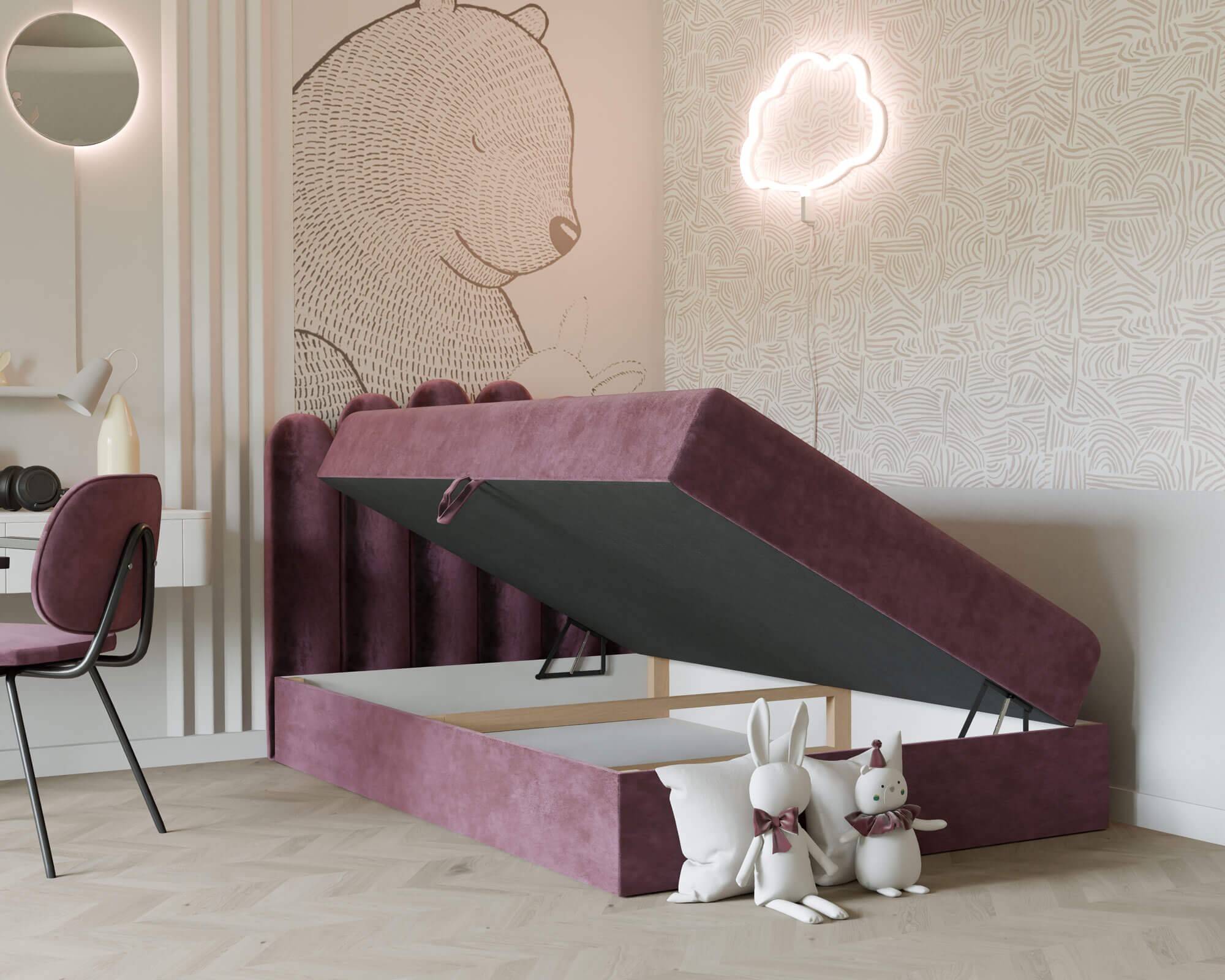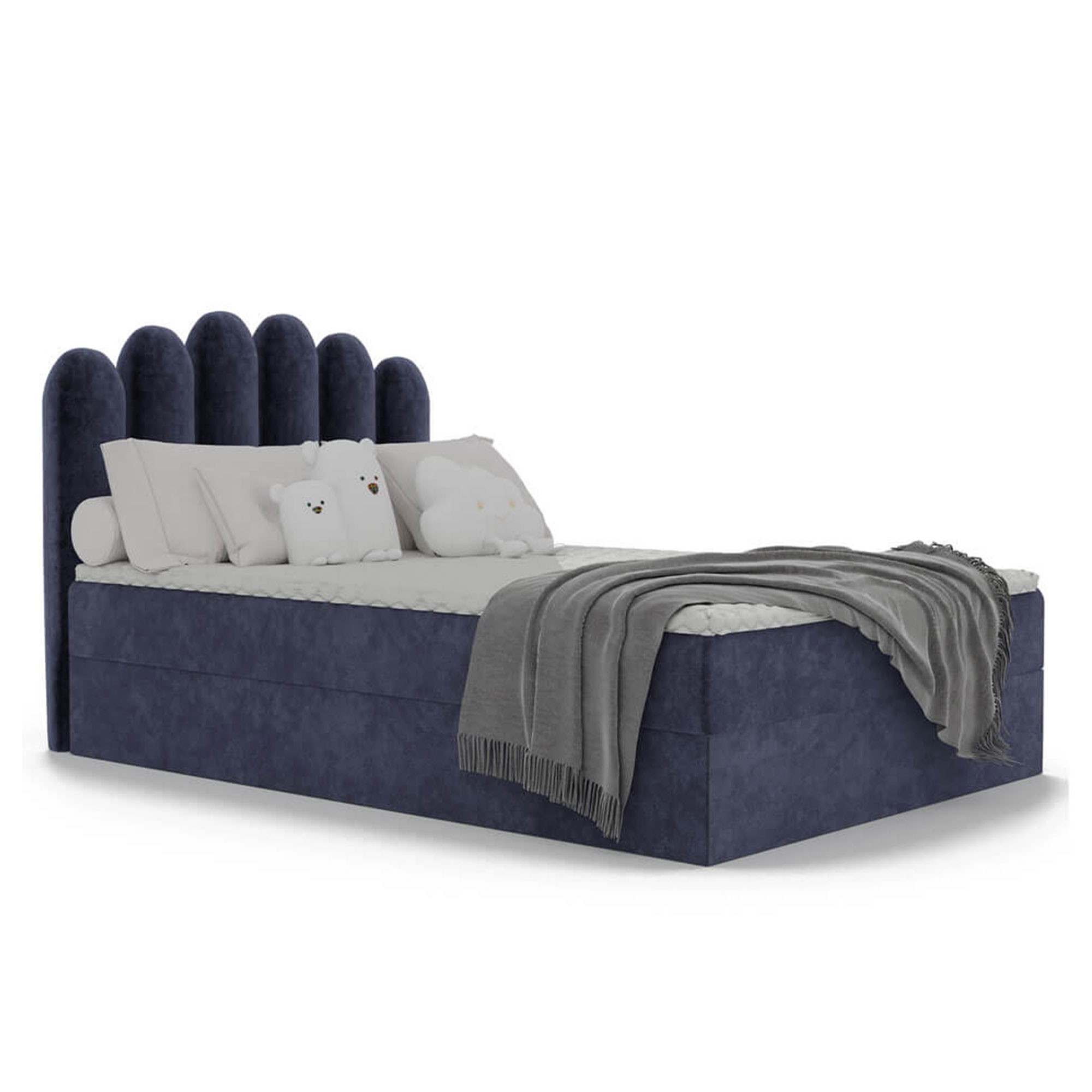 Łóżko młodzieżowe HOLI 120x200 to wyjątkowy mebel, który doskonale łączy nowoczesny design, funkcjonalność i wygodę, stając się centralnym punktem każdego pokoju młodzieżowego. Starannie tapicerowana cała bryła nadaje mu elegancki i efektowny charakter, a wysokie, zaokrąglone wezgłowie z panelami nie tylko wyróżnia się oryginalnym wyglądem, ale także zapewnia niezwykle komfortowe oparcie podczas czytania książki, nauki czy relaksu przed snem. Solidna konstrukcja wykonana z trwałych materiałów gwarantuje stabilność oraz długą żywotność, dzięki czemu łóżko będzie cieszyć swoją funkcjonalnością przez wiele lat. Model HOLI 120x200 został wyposażony w przestronny schowek pod materacem, który idealnie sprawdzi się jako miejsce do przechowywania pościeli, koców czy innych akcesoriów, pomagając utrzymać porządek w pomieszczeniu. Dzięki mechanizmowi wspomagającemu otwieranie dostęp do pojemnika jest wyjątkowo łatwy i wygodny, a zaokrąglone krawędzie łóżka zwiększają bezpieczeństwo, chroniąc przed przypadkowymi urazami. Stabilna i masywna podstawa nadaje meblowi solidnego charakteru, jednocześnie podkreślając jego elegancję. Łóżko młodzieżowe HOLI 120x200 wykonane zostało z łatwej w czyszczeniu tkaniny obiciowej odpornej na codzienne użytkowanie, co sprawia, że jest nie tylko stylowe, ale i praktyczne. Uniwersalny, nowoczesny design pasuje do wielu aranżacji wnętrz, dzięki czemu mebel doskonale wkomponuje się w różne style pokoju młodzieżowego. Możliwość wyboru koloru obicia pozwala stworzyć spersonalizowaną przestrzeń dopasowaną do indywidualnych upodobań. Łóżko HOLI 120x200 to propozycja dla osób, które cenią połączenie elegancji, komfortu i praktycznych rozwiązań. Dzięki niemu pokój młodzieżowy zyska nie tylko wyjątkowy charakter, ale także wygodny i funkcjonalny mebel, który będzie idealnym miejscem wypoczynku każdego dnia.