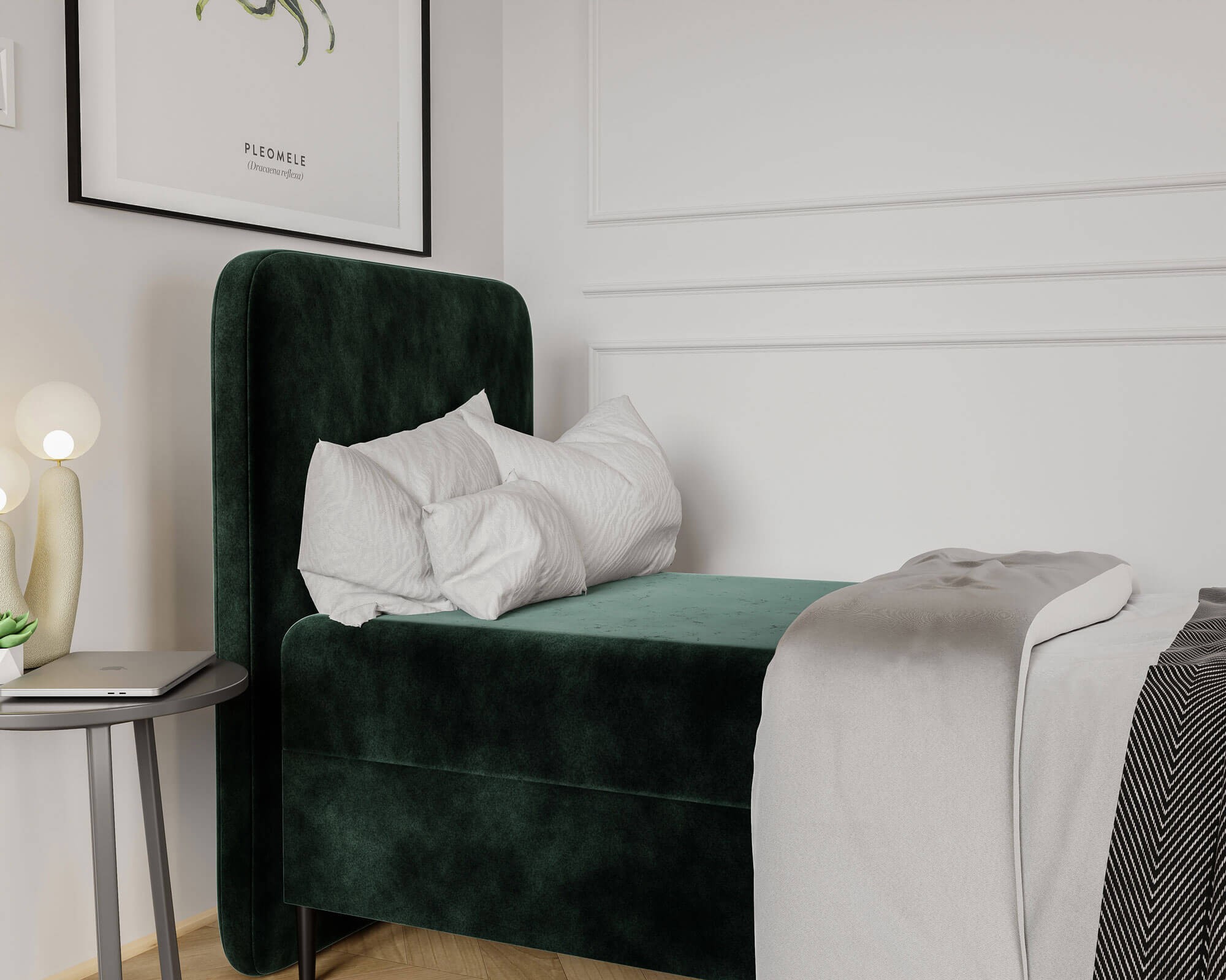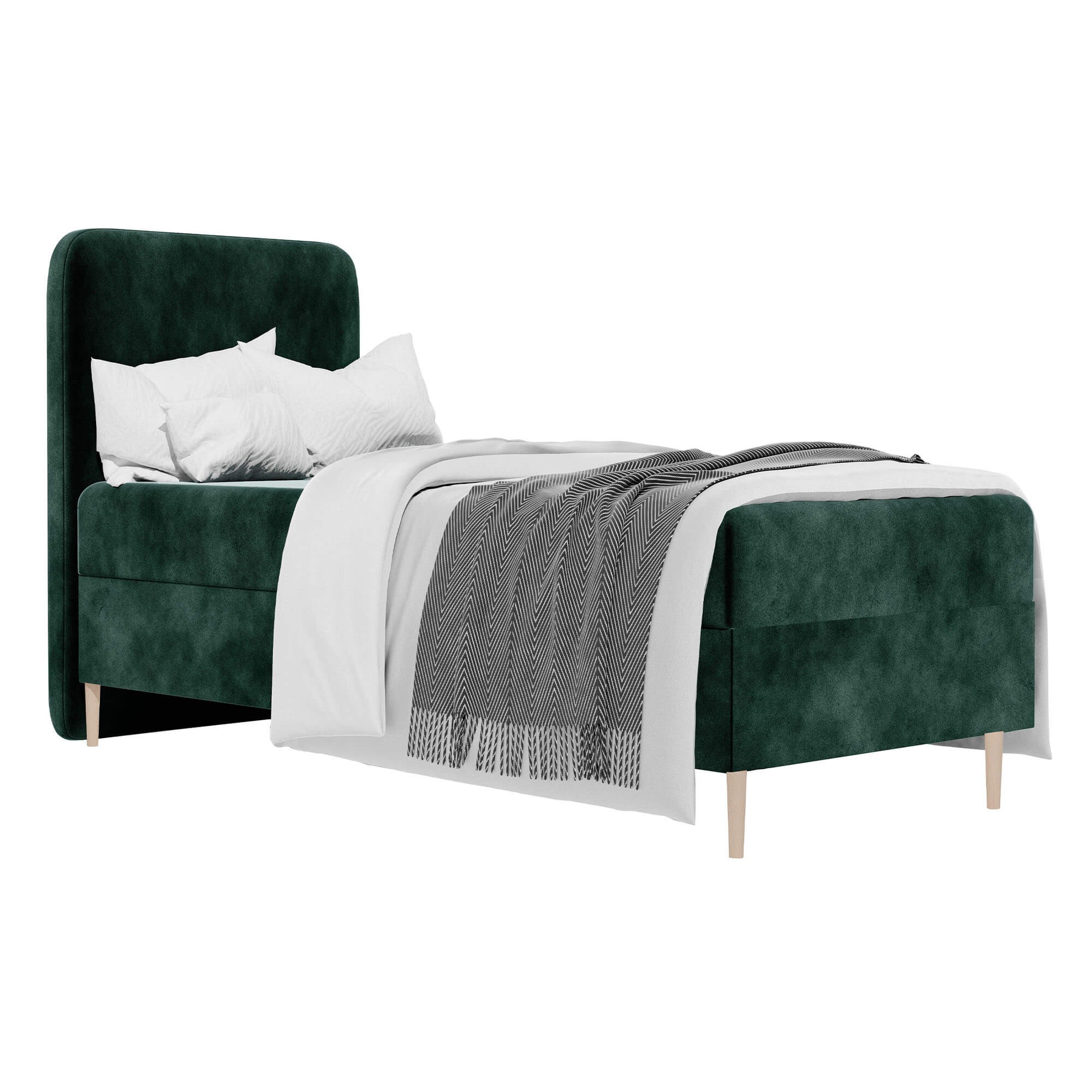 Łóżko młodzieżowe LAMA 100x200 to doskonały wybór dla osób poszukujących mebla, który łączy w sobie elegancję, funkcjonalność i solidność wykonania. Starannie tapicerowana cała bryła nadaje mu wyjątkowo nowoczesny i stylowy charakter, który idealnie wkomponuje się w różnorodne aranżacje wnętrz. Wysokie, zaokrąglone wezgłowie nie tylko dodaje całości elegancji, ale także zapewnia komfortowe oparcie, umożliwiając wygodne czytanie czy relaks. Dzięki stabilnej konstrukcji opartej na trwałych materiałach, łóżko gwarantuje niezawodność i długowieczność, stając się inwestycją na lata. Model LAMA 100x200 został zaprojektowany z myślą o maksymalnej funkcjonalności. Pojemny schowek ukryty pod materacem pozwala na wygodne przechowywanie pościeli, koców czy sezonowych akcesoriów, dzięki czemu w pokoju zawsze panuje porządek. Mechanizm wspomagający otwieranie sprawia, że dostęp do pojemnika jest szybki i bezproblemowy, co jeszcze bardziej podnosi komfort codziennego użytkowania. Bezpieczne, zaokrąglone krawędzie minimalizują ryzyko przypadkowych urazów, a masywna podstawa nadaje meblowi wyjątkową stabilność, gwarantując wygodę w każdej sytuacji. Łóżko młodzieżowe LAMA 100x200 zostało obite tkaniną odporną na codzienne użytkowanie, która jest łatwa w czyszczeniu i przez długi czas zachowuje swój elegancki wygląd. Uniwersalny design oraz możliwość wyboru koloru sprawiają, że mebel można perfekcyjnie dopasować do stylu wnętrza, tworząc wyjątkowo przytulną i spójną przestrzeń. To łóżko to nie tylko praktyczne miejsce do spania, ale także efektowny element wystroju, który odmieni charakter każdego pokoju młodzieżowego. Wybierając LAMA 100x200, stawiasz na trwałość, estetykę i wygodę, które każdego dnia podnoszą komfort wypoczynku.