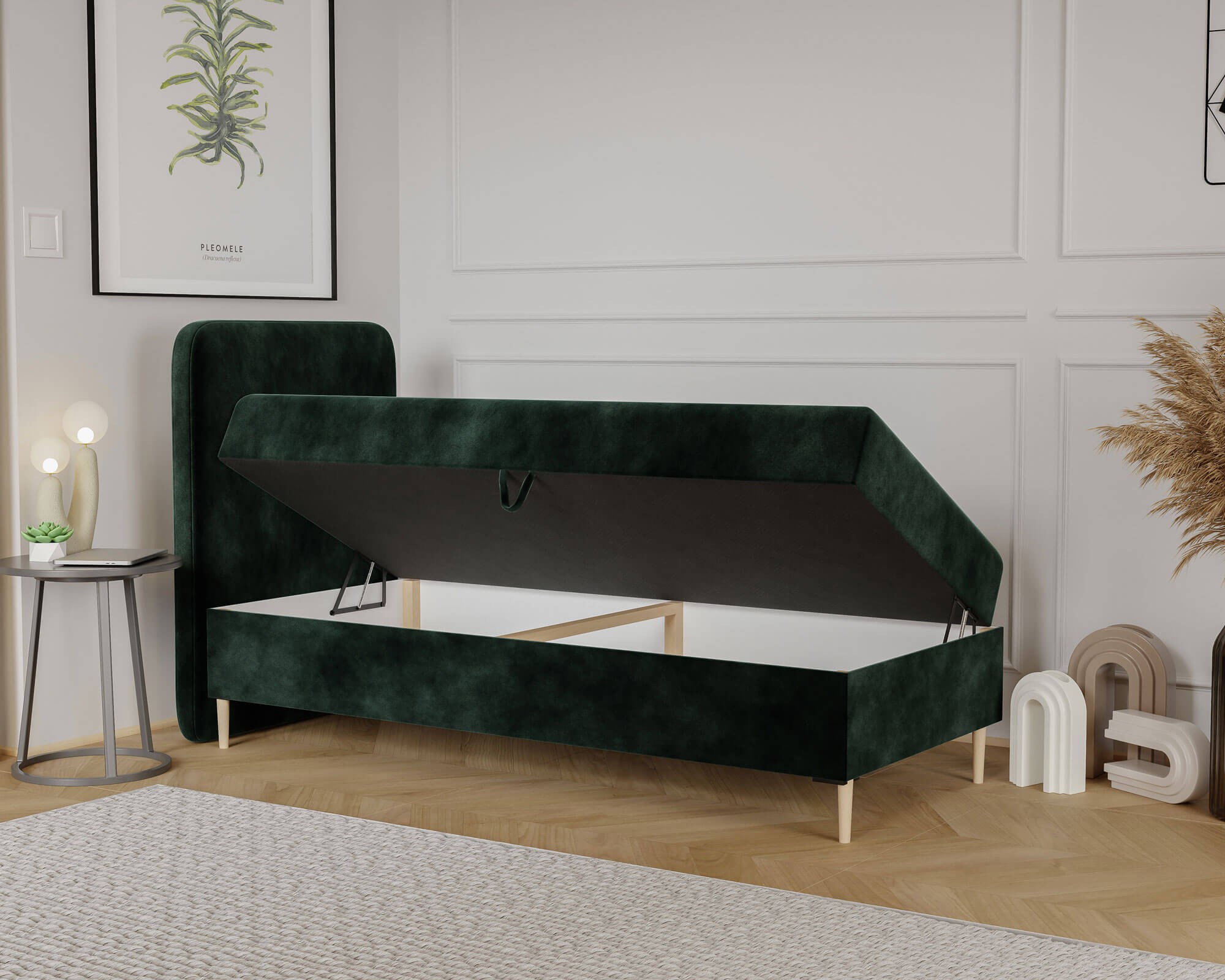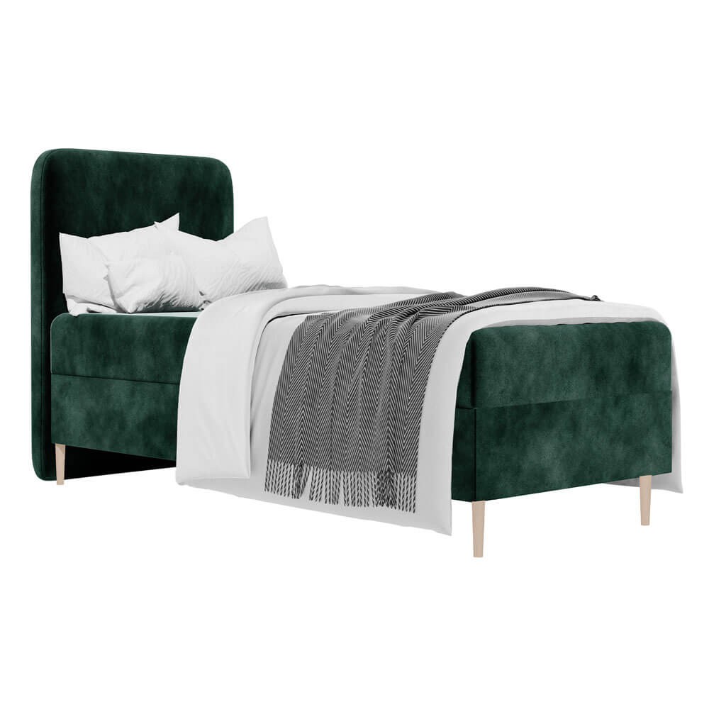 Łóżko młodzieżowe LAMA 120x200 to idealne rozwiązanie dla osób, które poszukują nowoczesnego, a zarazem funkcjonalnego mebla do stylowo urządzonego wnętrza. Starannie tapicerowana bryła nadaje całości eleganckiego charakteru, który doskonale wkomponuje się w różne aranżacje – zarówno te bardziej minimalistyczne, jak i pełne kolorów i młodzieżowej energii. Wysokie, zaokrąglone wezgłowie stanowi nie tylko ozdobę, ale również praktyczne oparcie, które zapewnia komfort podczas codziennego wypoczynku, wieczornego czytania czy porannego leniuchowania. Solidna konstrukcja wykonana z wytrzymałych materiałów sprawia, że łóżko zachwyca trwałością i stabilnością, gwarantując niezawodne użytkowanie przez długie lata. Model LAMA 120x200 wyposażony jest w przestronny schowek pod materacem, który doskonale sprawdza się jako dodatkowe miejsce do przechowywania pościeli, koców czy sezonowych akcesoriów. Zastosowany mechanizm wspomagający otwieranie znacząco ułatwia dostęp do wnętrza pojemnika, co podnosi funkcjonalność i komfort codziennego użytkowania. Bezpieczne, zaokrąglone krawędzie zwiększają bezpieczeństwo użytkownika, chroniąc przed przypadkowymi uderzeniami, a stabilna, masywna podstawa dodatkowo wzmacnia wrażenie solidności i wygody. Całość dopełnia wysokiej jakości tkanina obiciowa, która jest nie tylko odporna na codzienne użytkowanie, ale także łatwa w czyszczeniu, dzięki czemu łóżko na długo zachowuje swój estetyczny wygląd. Uniwersalny design oraz możliwość wyboru koloru sprawiają, że łóżko LAMA 120x200 można idealnie dopasować do indywidualnych preferencji i charakteru wnętrza. To mebel, który nie tylko zdobi pokój młodzieżowy, ale przede wszystkim gwarantuje komfortowy sen i funkcjonalne rozwiązania, odpowiadające na potrzeby współczesnych użytkowników. Jeśli szukasz łóżka, które łączy styl, trwałość i wygodę – ten model będzie strzałem w dziesiątkę.