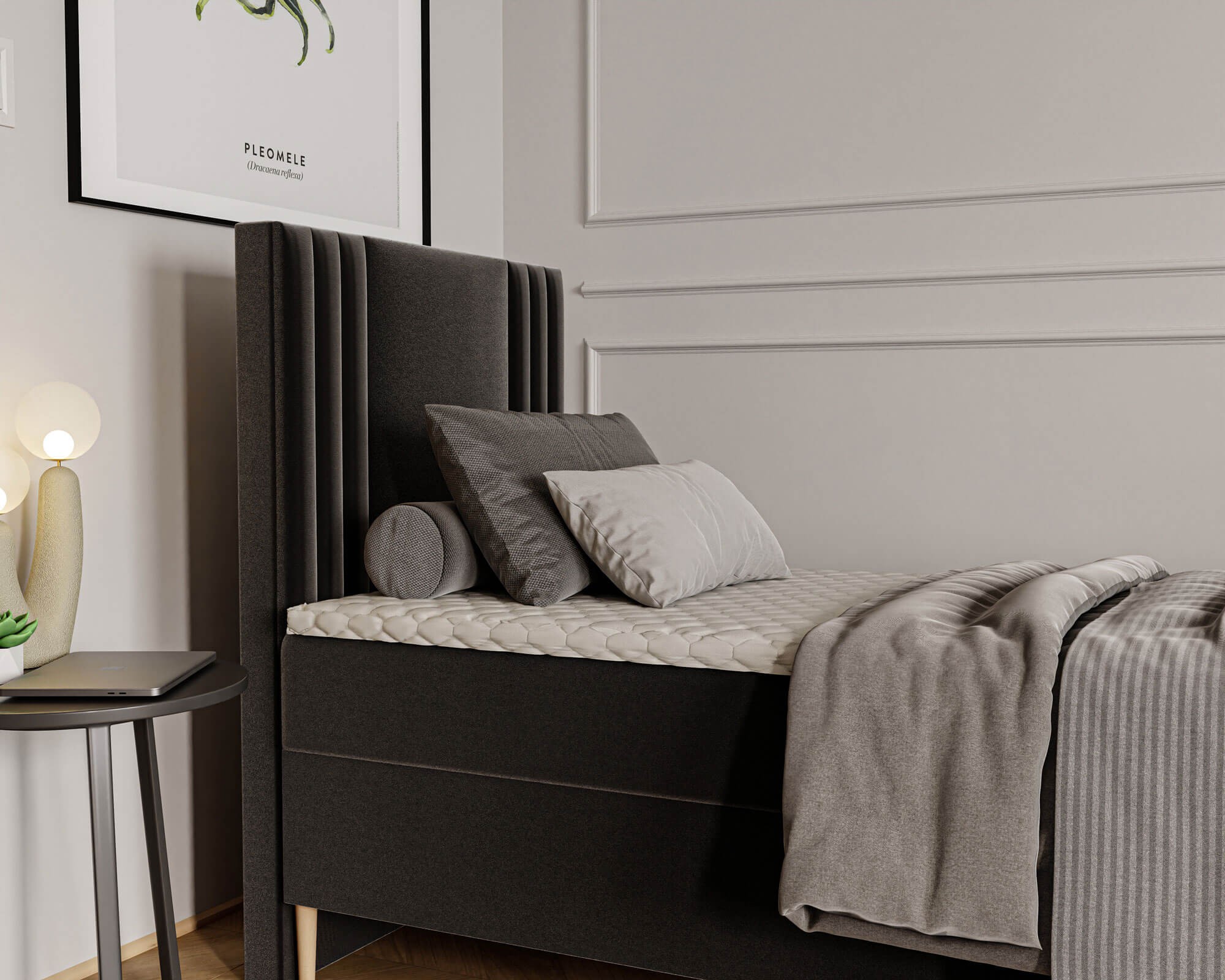 Łóżko młodzieżowe LILO 90x200 to stylowy i funkcjonalny mebel, który perfekcyjnie wpisuje się w potrzeby współczesnych aranżacji młodzieżowych wnętrz. Jego elegancka, starannie tapicerowana bryła w połączeniu z wysokim, dekoracyjnym wezgłowiem z pionowymi przeszyciami tworzy efektowną całość, która od razu przyciąga wzrok i nadaje pomieszczeniu nowoczesny charakter. LILO to propozycja nie tylko estetyczna, ale przede wszystkim praktyczna – zaprojektowana z myślą o codziennym komforcie i funkcjonalności. Dzięki solidnej konstrukcji wykonanej z trwałych materiałów łóżko zapewnia stabilność i bezpieczeństwo przez wiele lat użytkowania. Jego wyjątkową zaletą jest pojemny schowek ukryty pod materacem, który idealnie sprawdza się do przechowywania pościeli i wszelkich niezbędnych akcesoriów. Mechanizm wspomagający otwieranie sprawia, że dostęp do wnętrza pojemnika jest wygodny i bezproblemowy. W trosce o komfort użytkownika projektanci zadbali również o bezpieczne, zaokrąglone krawędzie, które skutecznie minimalizują ryzyko urazów. Łóżko młodzieżowe LILO 90x200 zostało osadzone na wysokich, smukłych nóżkach, które nie tylko dodają mu lekkości wizualnej, ale także poprawiają stabilność i ułatwiają utrzymanie czystości pod meblem. Tkanina obiciowa wyróżnia się odpornością na codzienne użytkowanie oraz łatwością w czyszczeniu, co czyni to łóżko niezwykle praktycznym wyborem do pokoju nastolatka. Nowoczesna forma i możliwość wyboru koloru sprawiają, że łóżko doskonale dopasowuje się do różnych stylów i preferencji. Model LILO 90x200 to nie tylko komfortowe miejsce do snu, ale również wyrazisty element dekoracyjny, który odmieni charakter całego wnętrza. To idealny wybór dla tych, którzy szukają harmonii pomiędzy estetyką, trwałością i codzienną wygodą.