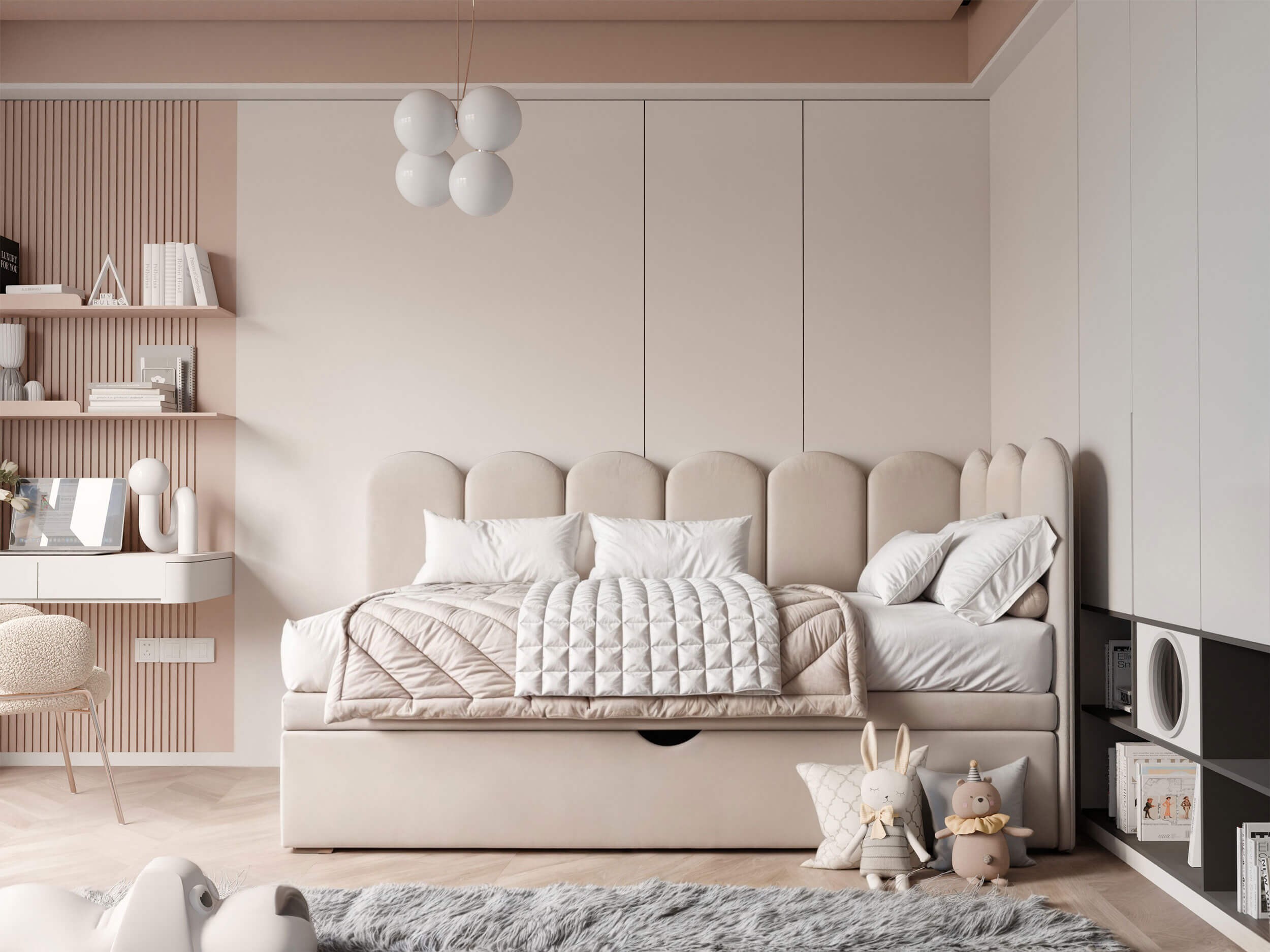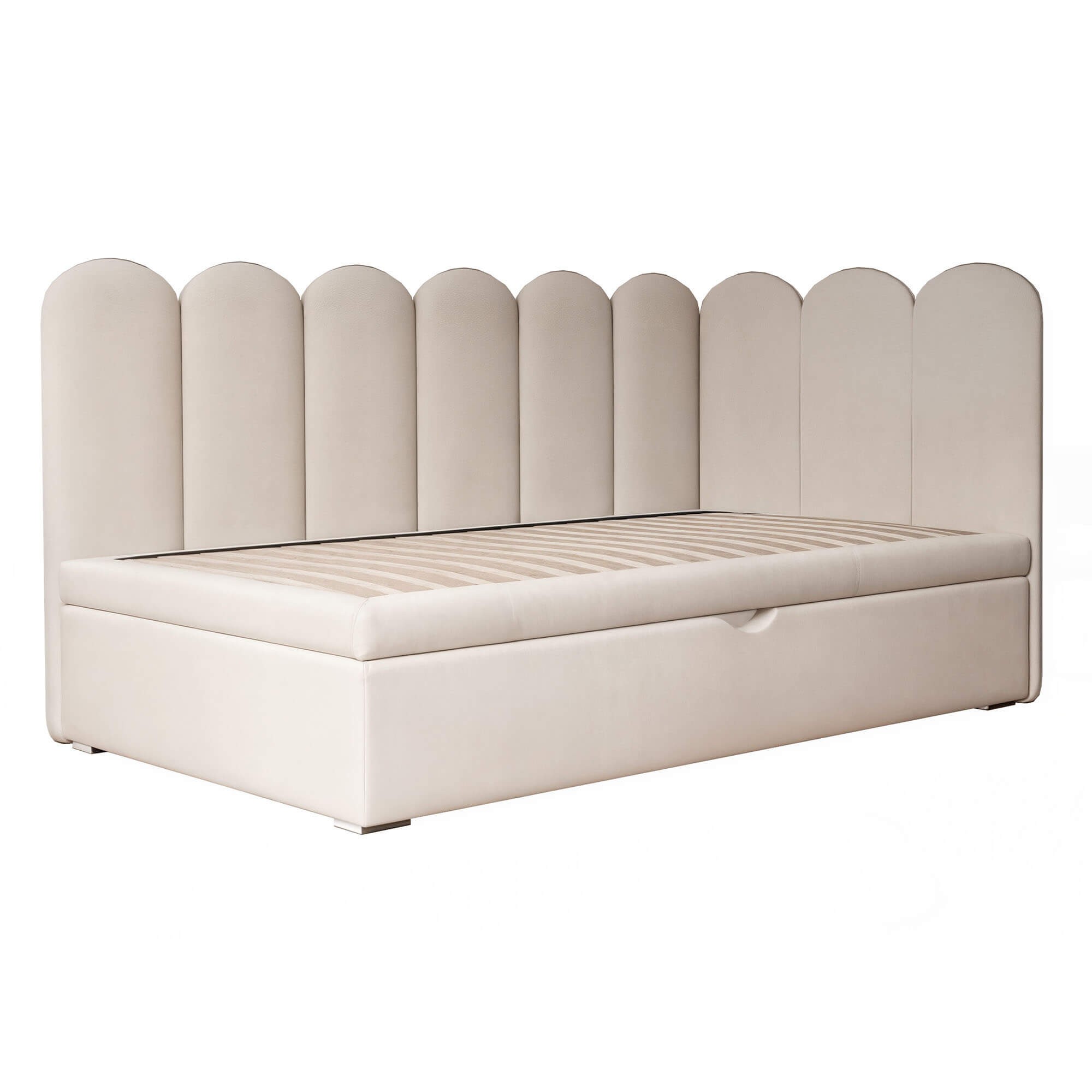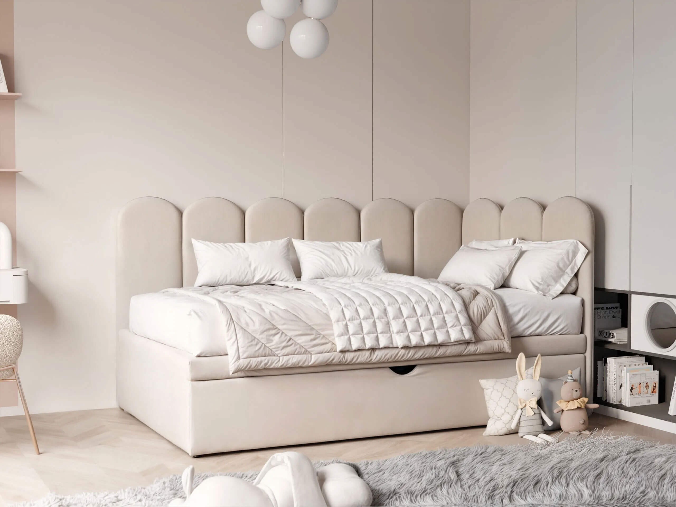 Łóżko młodzieżowe SKYE 100x200 to idealne rozwiązanie dla rodziców, którzy pragną stworzyć funkcjonalną i stylową przestrzeń dla dziecka lub nastolatka. Jego unikalne, tapicerowane wezgłowie narożne w kształcie muszli nie tylko przyciąga wzrok i nadaje meblowi wyjątkowego charakteru, ale również tworzy przytulną, bezpieczną strefę wypoczynku. Miękkie, wysokie oparcie zapewnia wygodę zarówno podczas wieczornego relaksu, jak i codziennego czytania czy zabawy, co czyni łóżko nie tylko miejscem snu, ale i ulubionym zakątkiem w pokoju. Cała konstrukcja łóżka SKYE została obita elegancką, miękką tkaniną welurową, która dodaje całości subtelnego szyku, a przy tym jest łatwa do utrzymania w czystości. Pełne tapicerowanie sprawia, że mebel prezentuje się estetycznie z każdej strony i jednocześnie jest bezpieczny dla dzieci. Dodatkowym atutem jest pojemna szuflada z wygodnym uchwytem – doskonałe miejsce do przechowywania pościeli, zabawek czy sezonowych tekstyliów, które pomaga utrzymać porządek w pokoju. Łóżko SKYE wyróżnia się solidną, zwartą konstrukcją, która doskonale wykorzystuje przestrzeń, nawet w mniejszych wnętrzach. Stelaż oparty na elastycznych listwach gwarantuje komfort użytkowania i trwałość przez długie lata. Nowoczesna, lekka forma świetnie wpasowuje się w stylowe aranżacje pokojów dziecięcych i młodzieżowych – zarówno dla dziewczynek, jak i chłopców. Dzięki dostępności wielu szerokości i wariantów kolorystycznych można bez trudu dopasować łóżko do konkretnego wnętrza i indywidualnych preferencji. Wybierając łóżko młodzieżowe SKYE 100x200, inwestujesz w komfort, bezpieczeństwo i wyjątkowy design, który odmieni każde wnętrze i sprawi, że codzienny odpoczynek stanie się prawdziwą przyjemnością.
