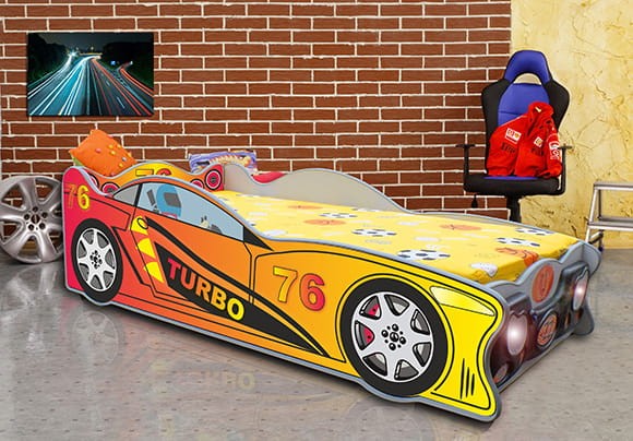 Speedy to łóżeczko dla dzieci w kształcie małego samochodu, wykonane z wysokiej jakości materiałów, które zapewniają trwałość i bezpieczeństwo dla twojego dziecka. Korpus łóżeczka jest wykonany z płyty meblowej o grubości 18mm, a krawędzie zabezpieczone są gumowym obrzeżem, co dodatkowo zwiększa trwałość i bezpieczeństwo.