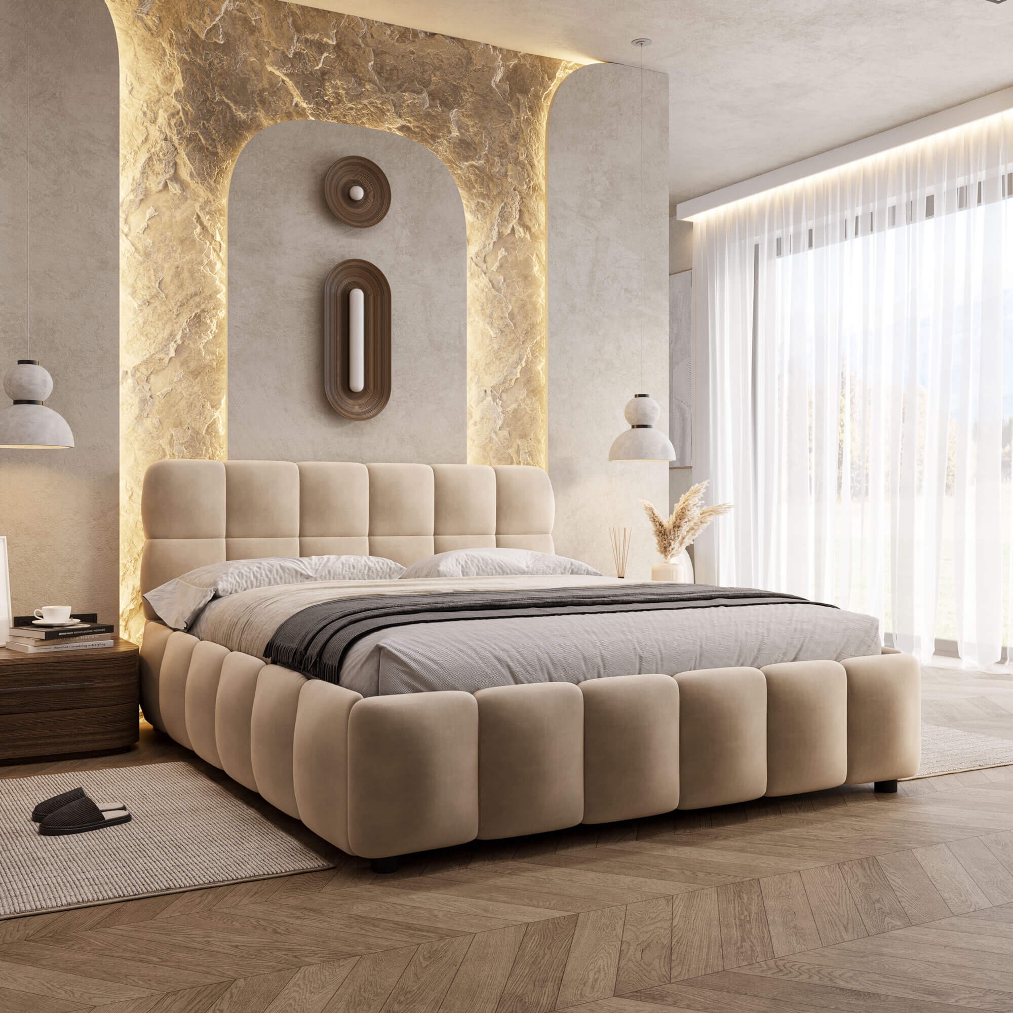 Łóżko tapicerowane 4794 | 160x200 | Welur | Beż #6
