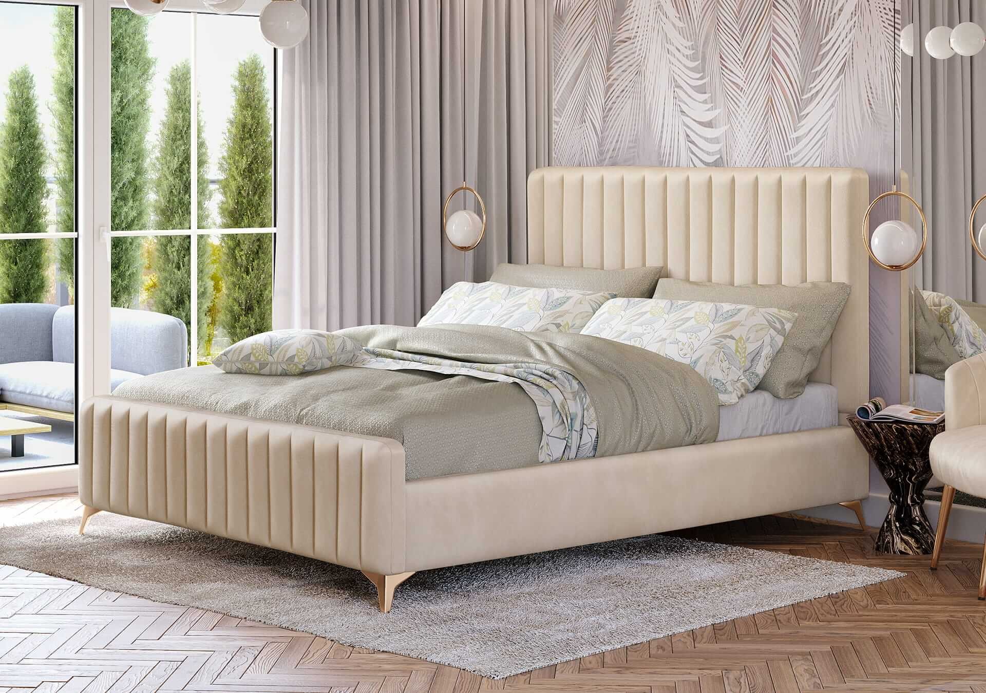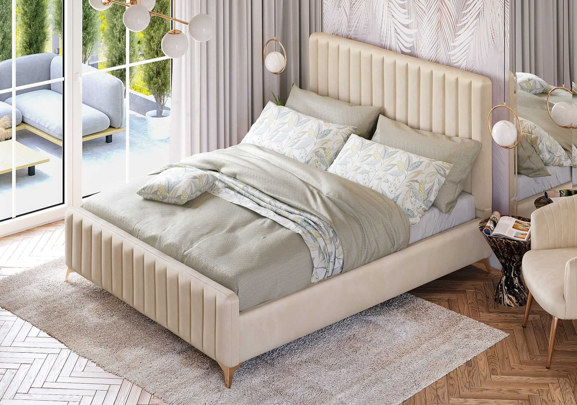 - Ponadczasowe łóżko welurowe w stylu glamour