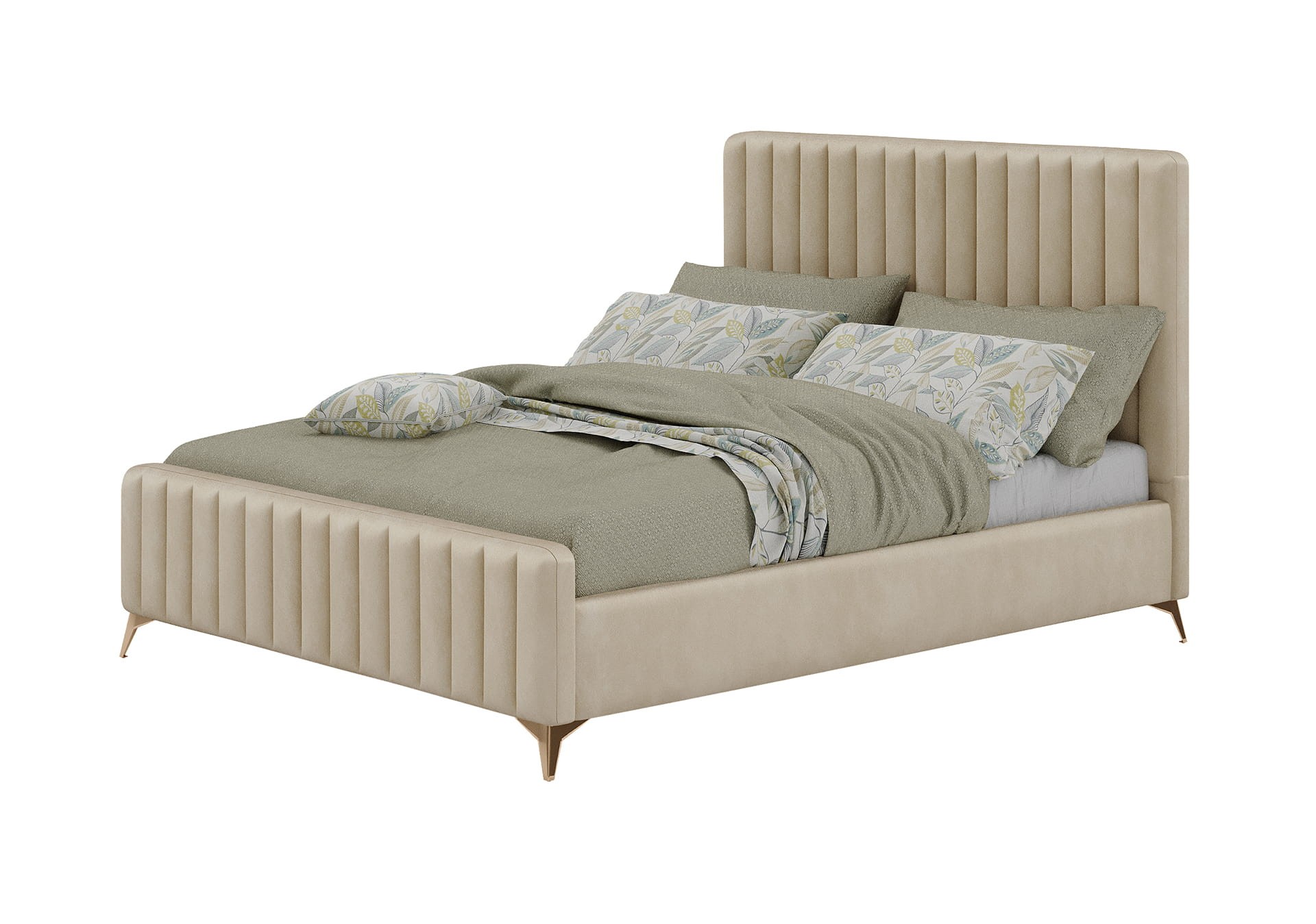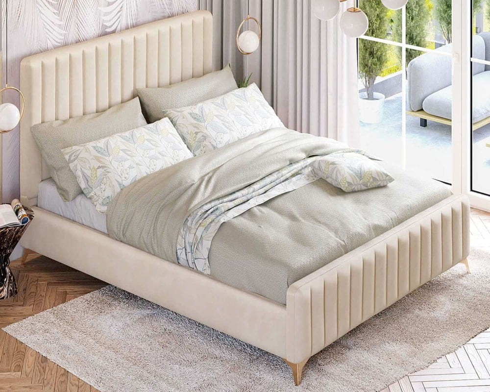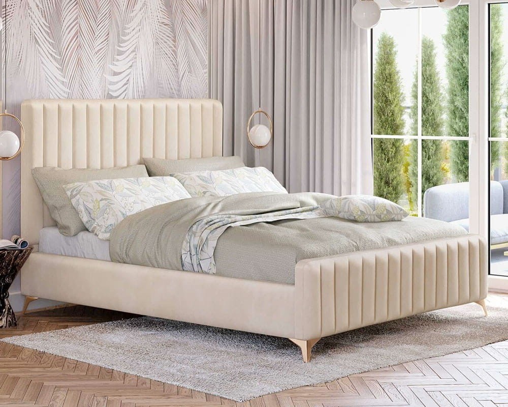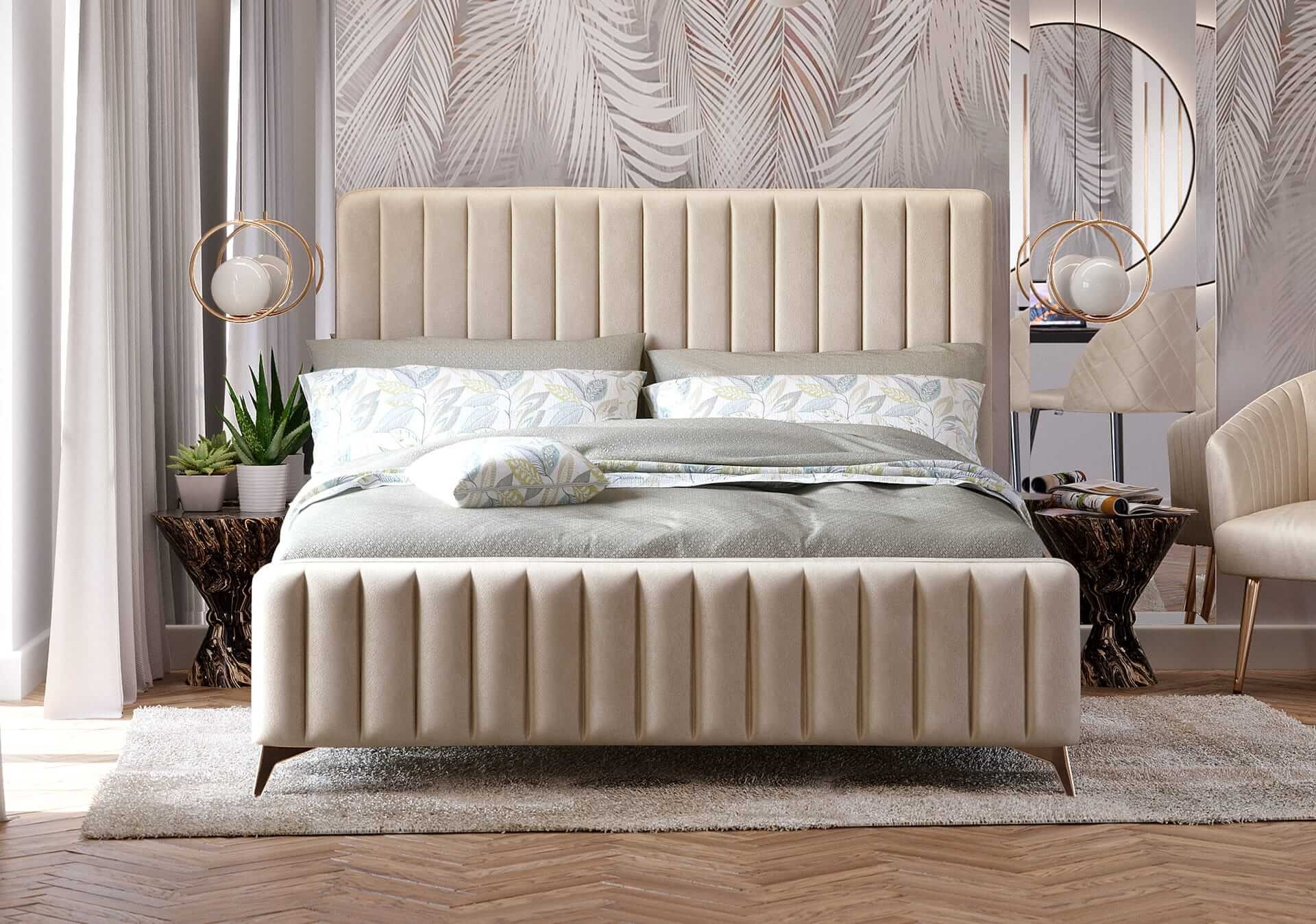 Łóżko tapicerowane BELANIA (SF1023P) w stylu Glamour | 120x200 | Welur | Beżowy