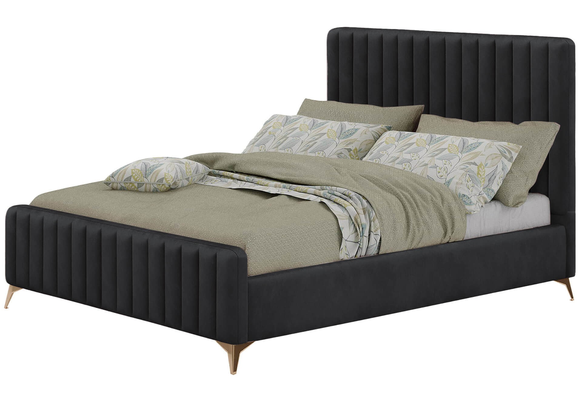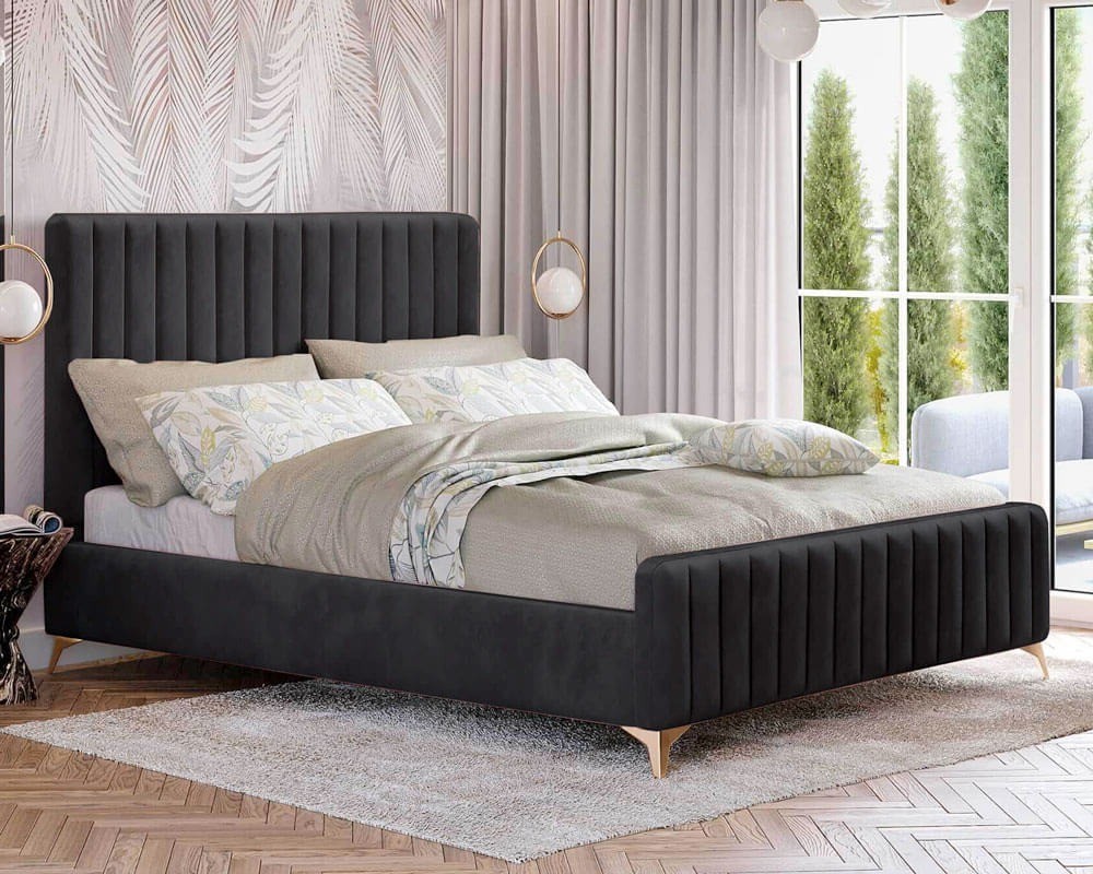 Łóżko BELANIA o wymiarach 160x200 to przede wszystkim trwałość i funkcjonalność, ale również design, który robi wrażenie na miłośnikach stylu glamour. Jeśli należysz do grona osób uwielbiających tę elegancką stylistykę, prezentowany mebel na pewno spełni Twoje oczekiwania. Cechą szczególną są solidne metalowe nóżki w złotym kolorze, które można zestawić z wybranym kolorem welurowej tapicerki. W modelu tym mamy do czynienia z jeszcze jednym, choć charakterystycznym elementem – wezgłowiem – jednak zupełnie innym ze względu na panelową konstrukcję. Została ona zastosowana również w przypadku przodu łóżka, co gwarantuje spójną całość. Model ten jest wyjątkowo trwałym łóżkiem mającym stabilny drewniany stelaż ze sprężynujących listew gwarantujący najwyższy komfort wypoczynku. BELANIA z uwagi na wymiary doskonale sprawdzi się w sypialniach dla dwojga!