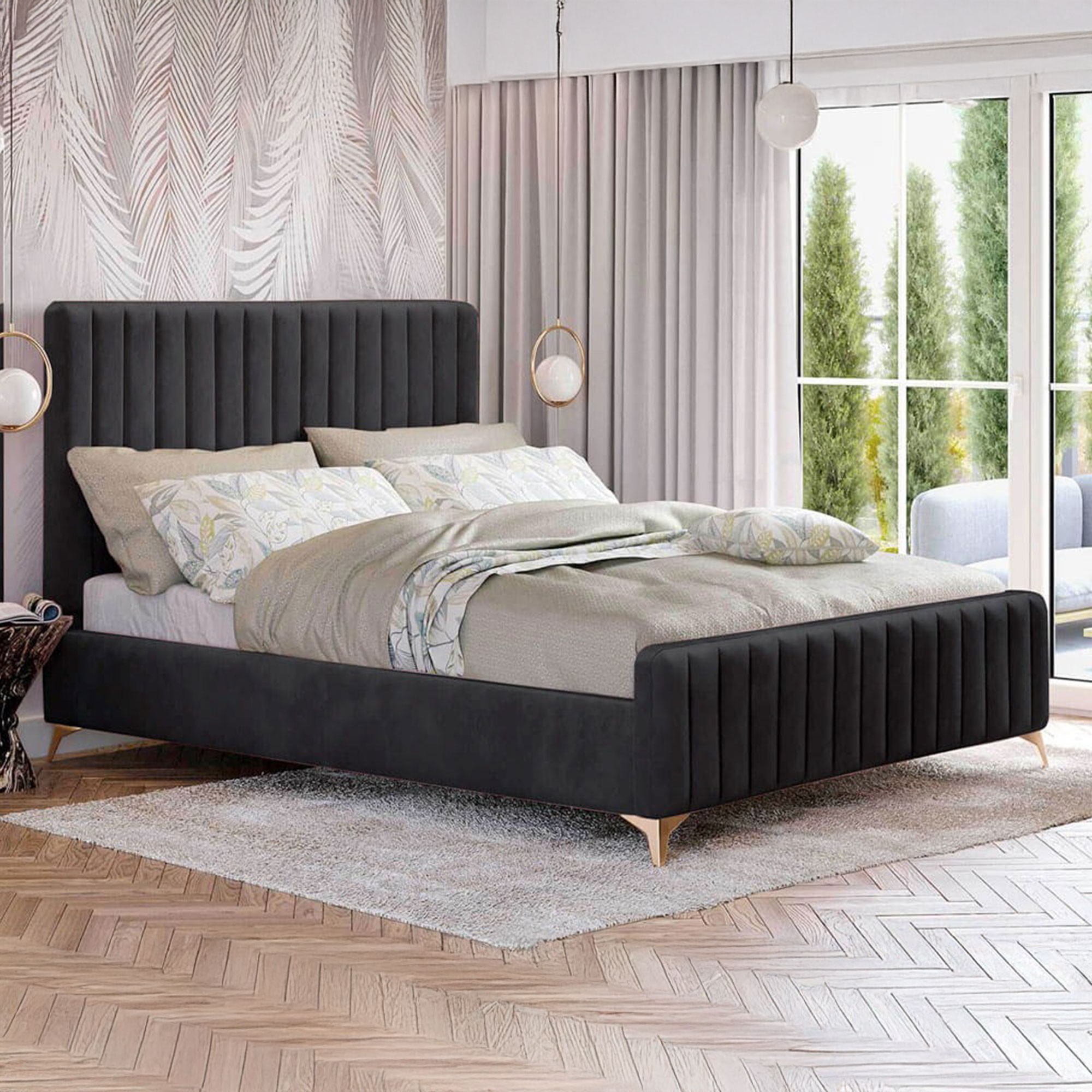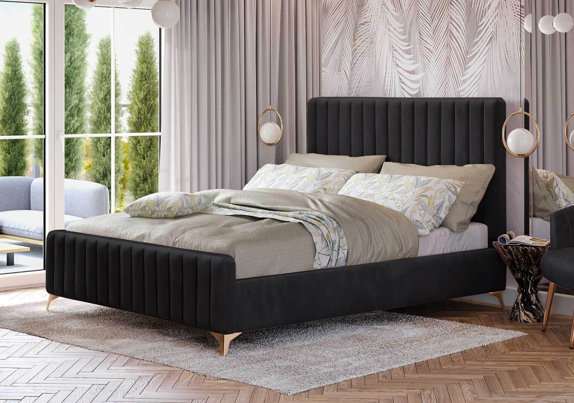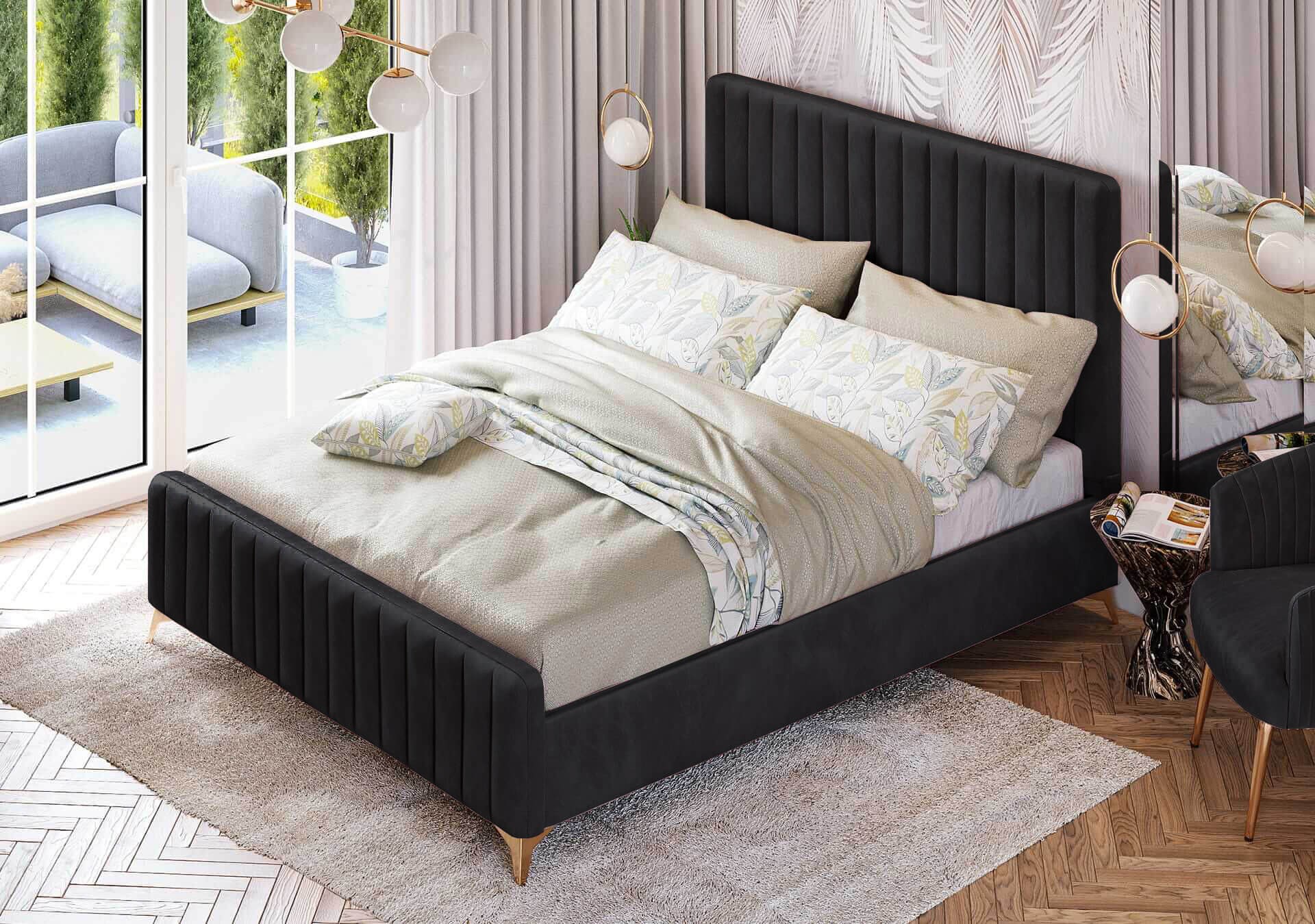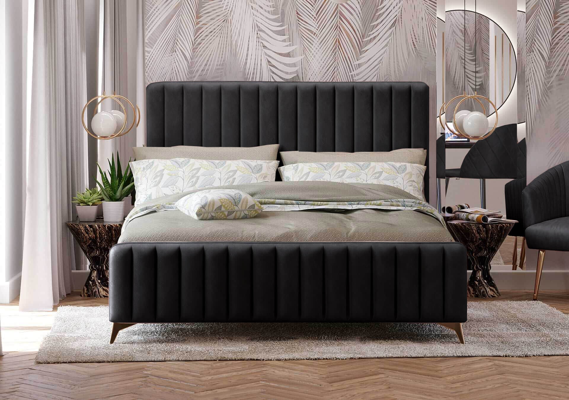 Łóżko 160x200 do sypialni dla dwojga urządzonej w stylu glamour