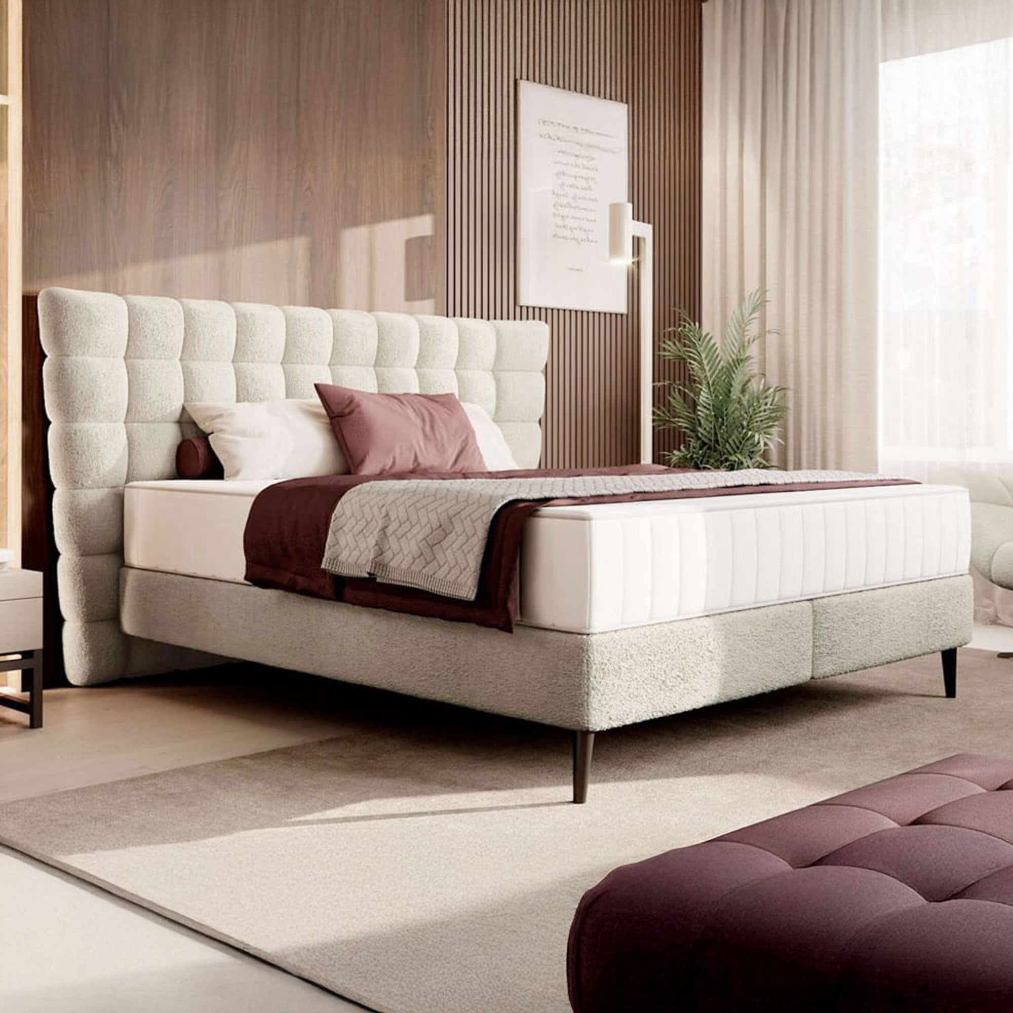 Podkreśl swój styl z łóżkiem tapicerowanym INFERNO, które łączy nowoczesny design z funkcjonalnością, potrzebną do osiągnięcia najwyższego poziomu komfortu snu. Dzięki minimalistycznym liniom i solidnej konstrukcji, to łóżko to wizualny i praktyczny dodatek do Twojej sypialni, który na pewno wprowadzi elegancję do każdego pomieszczenia. Płyta meblowa i drewniany stelaż gwarantują stabilność, a idealnie wyprofilowany zagłówek zapewnia komfort, który potrzebujesz po długim dniu. Opcja personalizacji to cecha, która sprawia, że łóżko tapicerowane INFERNO wyróżnia się na tle innych. Możesz wybierać spośród różnych tkanin obiciowych, aby dopasować łóżko do swojego wystroju wnętrza, co czyni ten mebel nie tylko praktycznym, ale także ekspresyjnym elementem wnętrza.