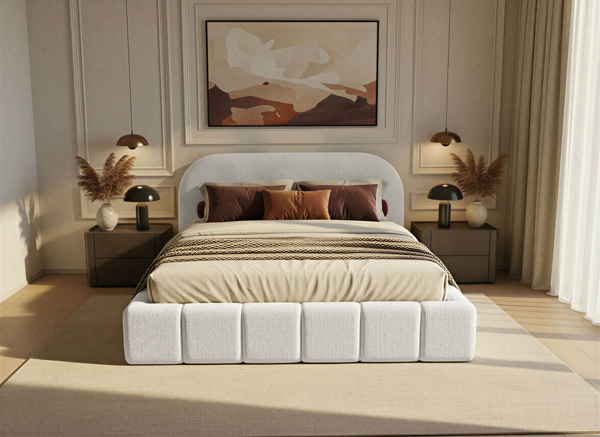 ORLANDO SLIM w rozmiarze 180x200 to tapicerowane łóżko, które świetnie sprawdzi się jako główny element przestronnej sypialni. Jego zabudowana podstawa i charakterystyczny, zaokrąglony zagłówek nadają wnętrzu spójny, elegancki wygląd. Forma jest prosta i nowoczesna, dzięki czemu łóżko łatwo dopasować do współczesnych aranżacji. Miękkie wykończenie oparte na piance poliuretanowej sprawia, że całość jest przyjemna w codziennym użytkowaniu. Konstrukcja wykonana z płyty wiórowej i elementów drewnianych gwarantuje stabilność, a metalowe wsporniki podnoszą trwałość całego łóżka. Duża powierzchnia spania zapewnia wysoki komfort zarówno dla jednej, jak i dwóch osób. Ten model dobrze sprawdza się w sypialniach, w których liczy się estetyka, wygoda i solidność wykonania. ORLANDO SLIM to propozycja dla osób, które chcą połączyć nowoczesny wygląd z praktycznym, trwałym meblem do codziennego wypoczynku.