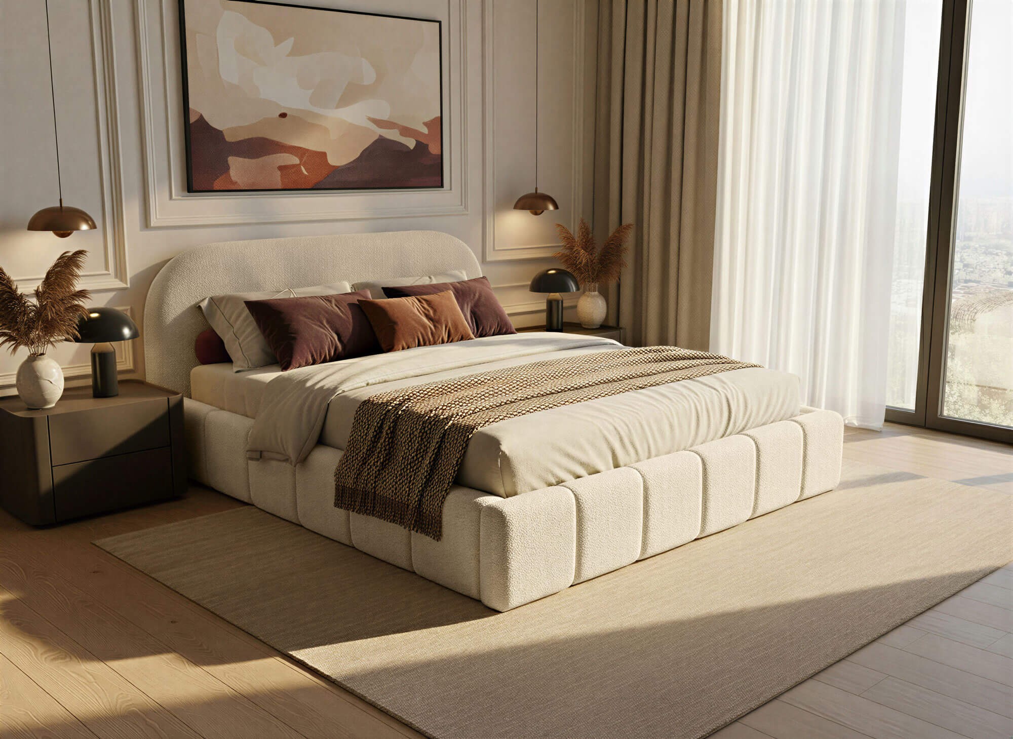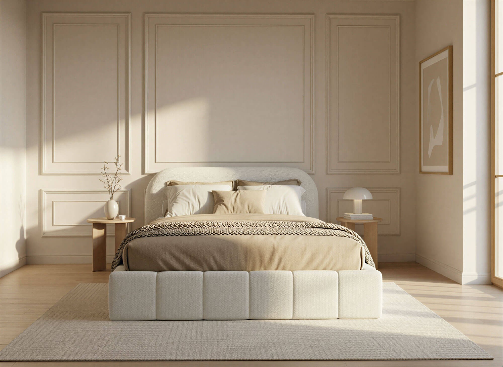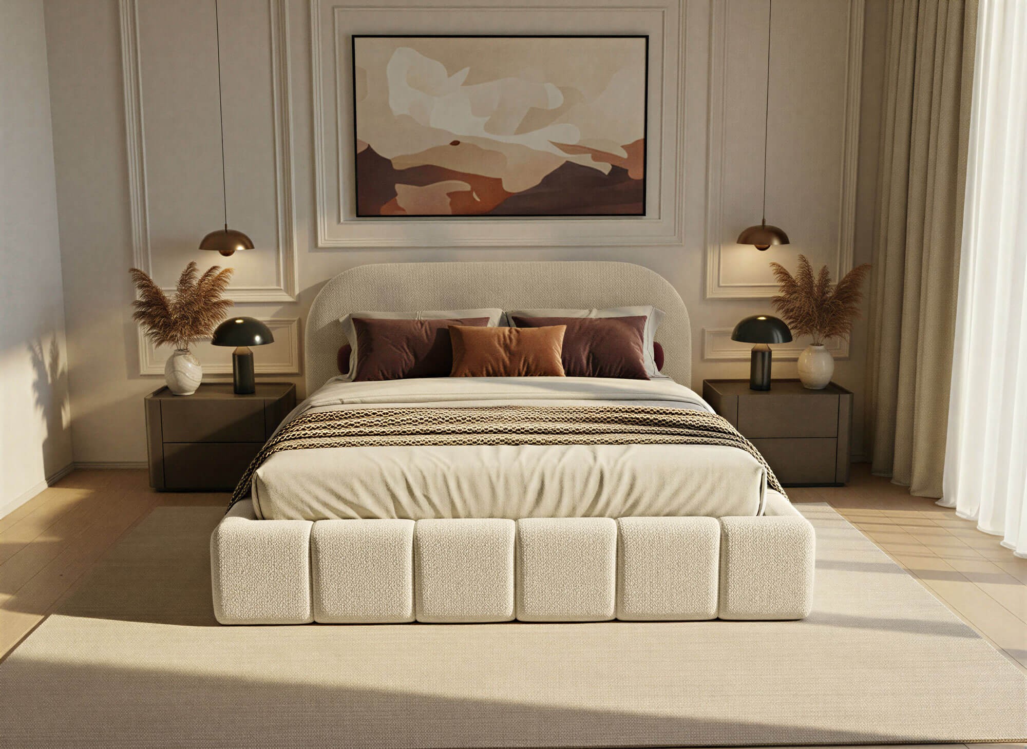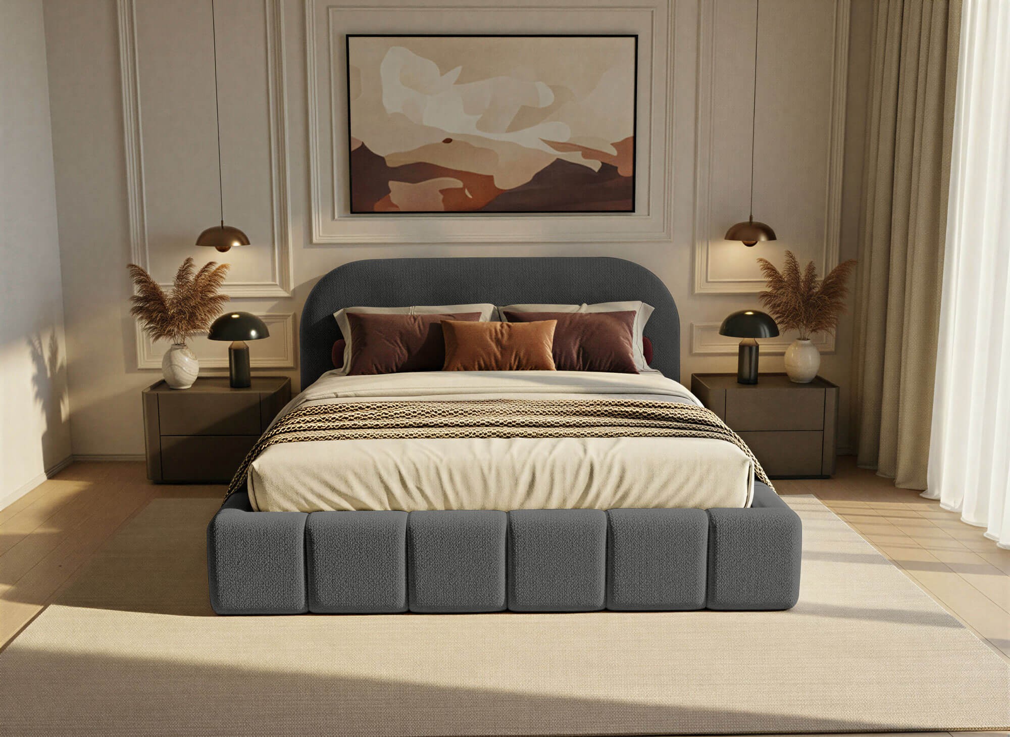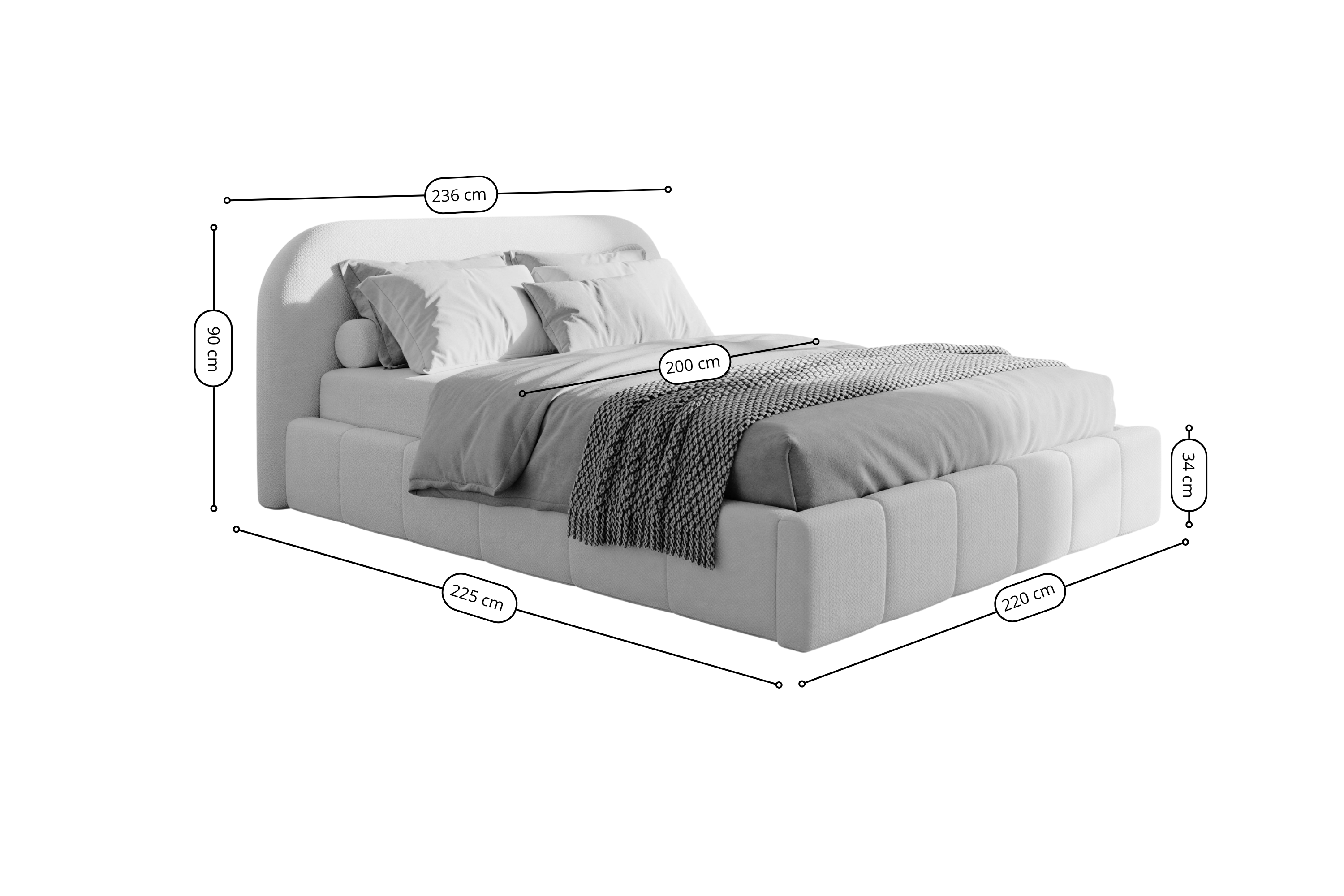 ORLANDO SLIM w rozmiarze 200x200 to tapicerowane łóżko stworzone z myślą o dużych sypialniach, w których liczy się wygoda, przestrzeń i elegancki wygląd. Jego zabudowana podstawa i zaokrąglony zagłówek nadają wnętrzu spokojny, harmonijny charakter. Mebel prezentuje się nowocześnie, ale pozostaje uniwersalny, dzięki czemu łatwo dopasować go do różnych stylów aranżacji. Miękkie wykończenie oparte na piance poliuretanowej sprawia, że łóżko jest przyjemne w użytkowaniu, a mocna konstrukcja z płyty wiórowej i drewna utrzymuje stabilność nawet przy tak dużej powierzchni spania. Metalowe wsporniki dodatkowo wzmacniają całość, co daje pewność trwałości na lata. Model 200x200 oferuje wyjątkowo dużo miejsca, dzięki czemu świetnie sprawdzi się zarówno dla par, jak i osób, które cenią sobie maksymalny komfort wypoczynku. ORLANDO SLIM to propozycja dla tych, którzy szukają połączenia nowoczesnego designu, funkcjonalności i solidnego wykonania.