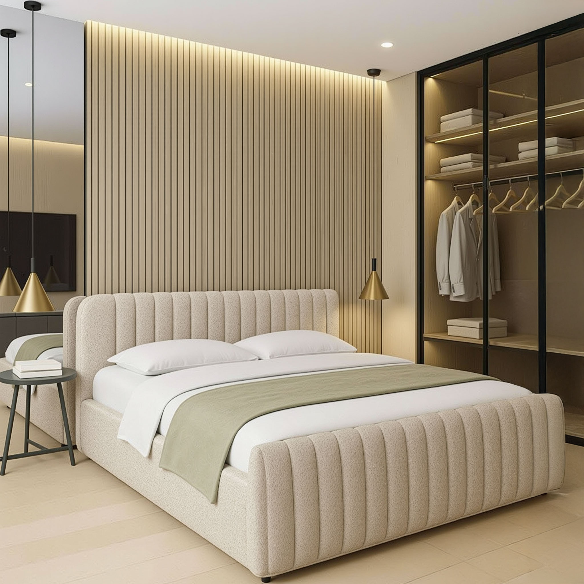 Jeśli marzysz o nowoczesnym wnętrzu, łóżko tapicerowane SF1078 to idealny wybór. Wykonane z materiału Boucle ze stylowymi przeszyciami, zachwyca elegancją i wyjątkową fakturą. Jego zaokrąglona forma oraz dopracowane detale sprawiają, że staje się centralnym punktem sypialni, podkreślając jej charakter. Łóżko doskonale współgra z modnymi aranżacjami, nadając przestrzeni lekkości i wyrafinowanego stylu. Skorzystaj z naszej oferty i wprowadź do swojego wnętrza wyjątkowy design, który przyciąga uwagę i tworzy niepowtarzalny klimat.
