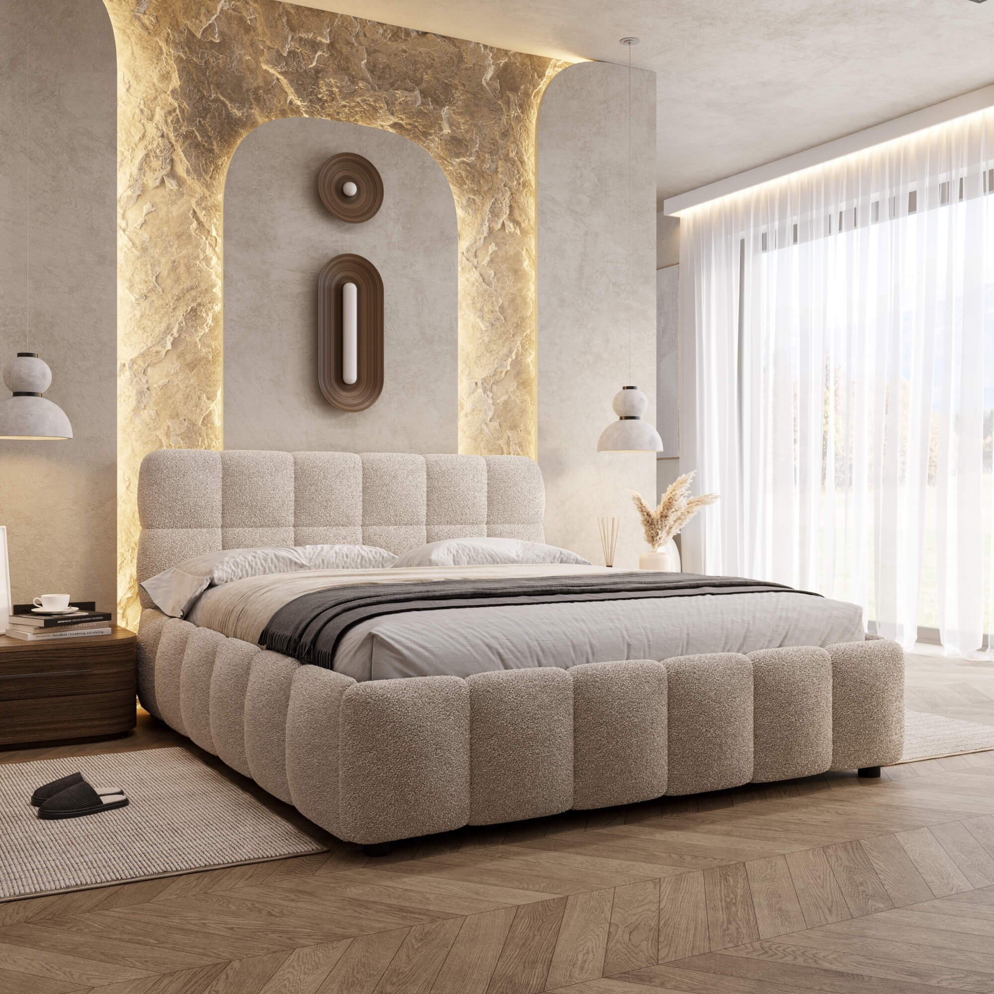 Łóżko tapicerowane z pojemnikiem 4583G | 160x200 | Boucle | Biały #6