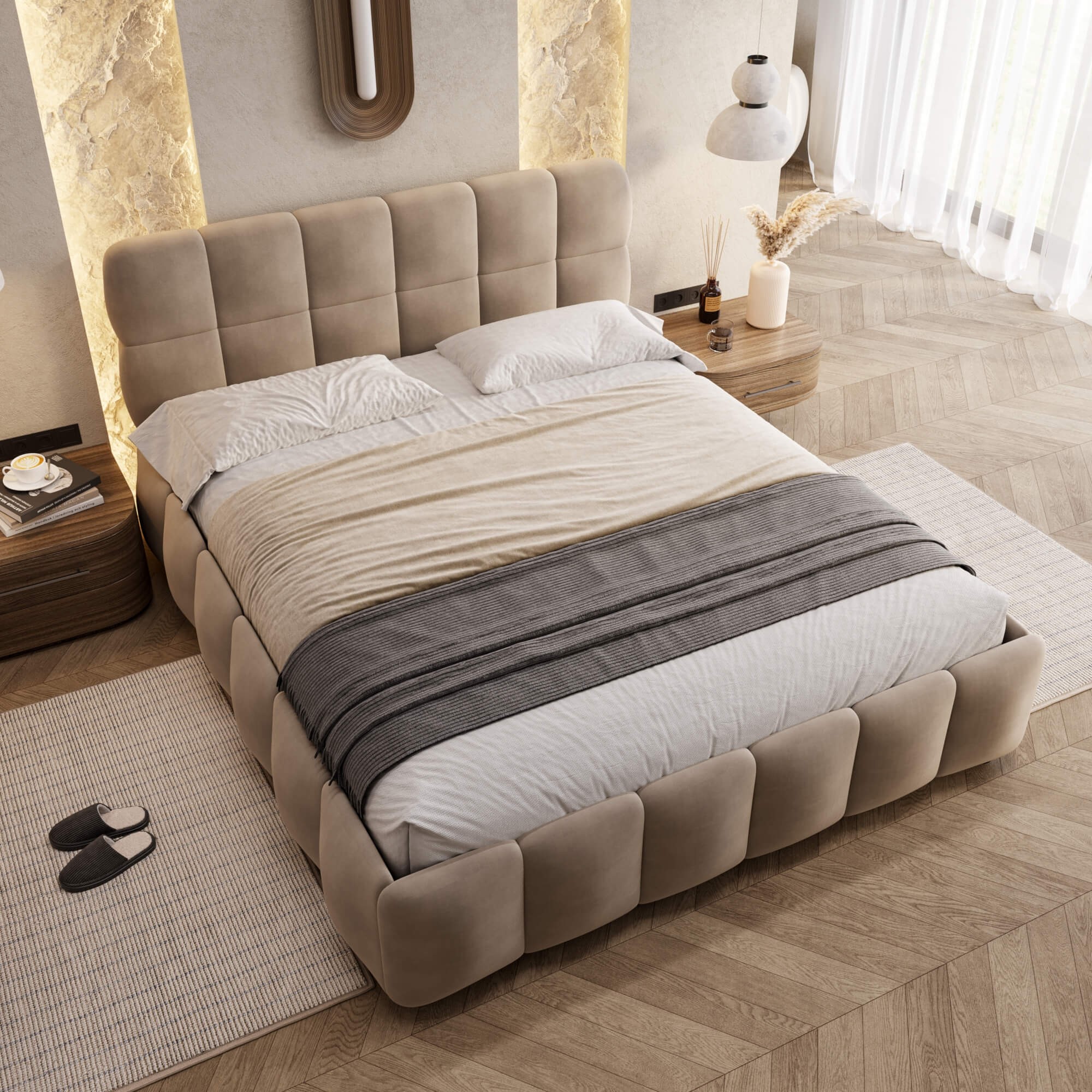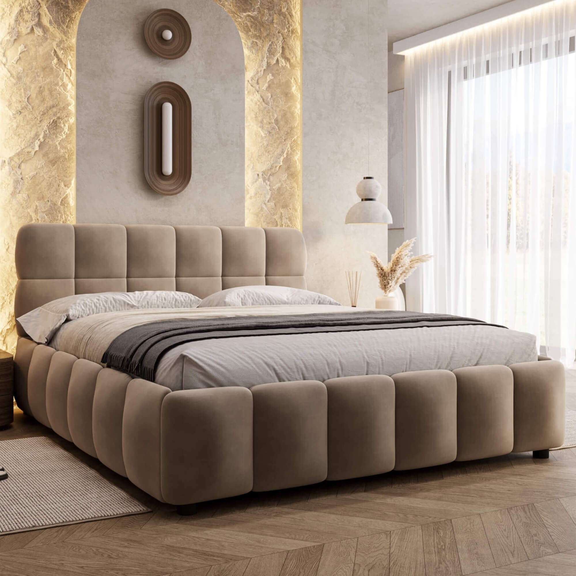 Łóżko tapicerowane z pojemnikiem 4583G | 160x200 | Welur | Ciemny beż #10