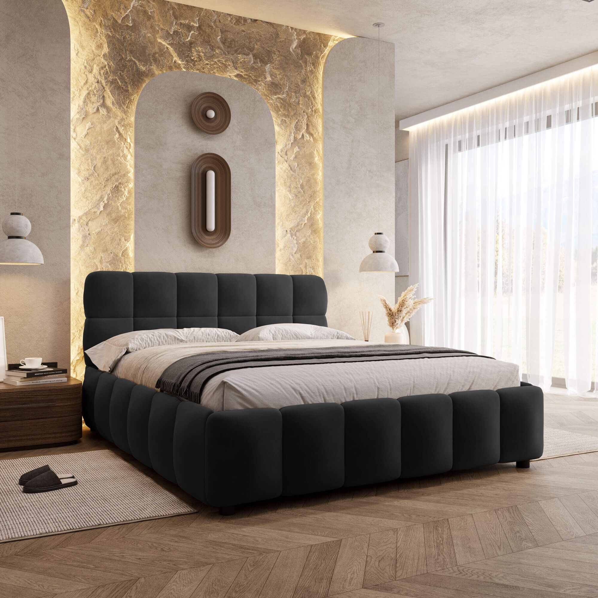 Łóżko tapicerowane z pojemnikiem 4583G | 160x200 | Welur | Czarny