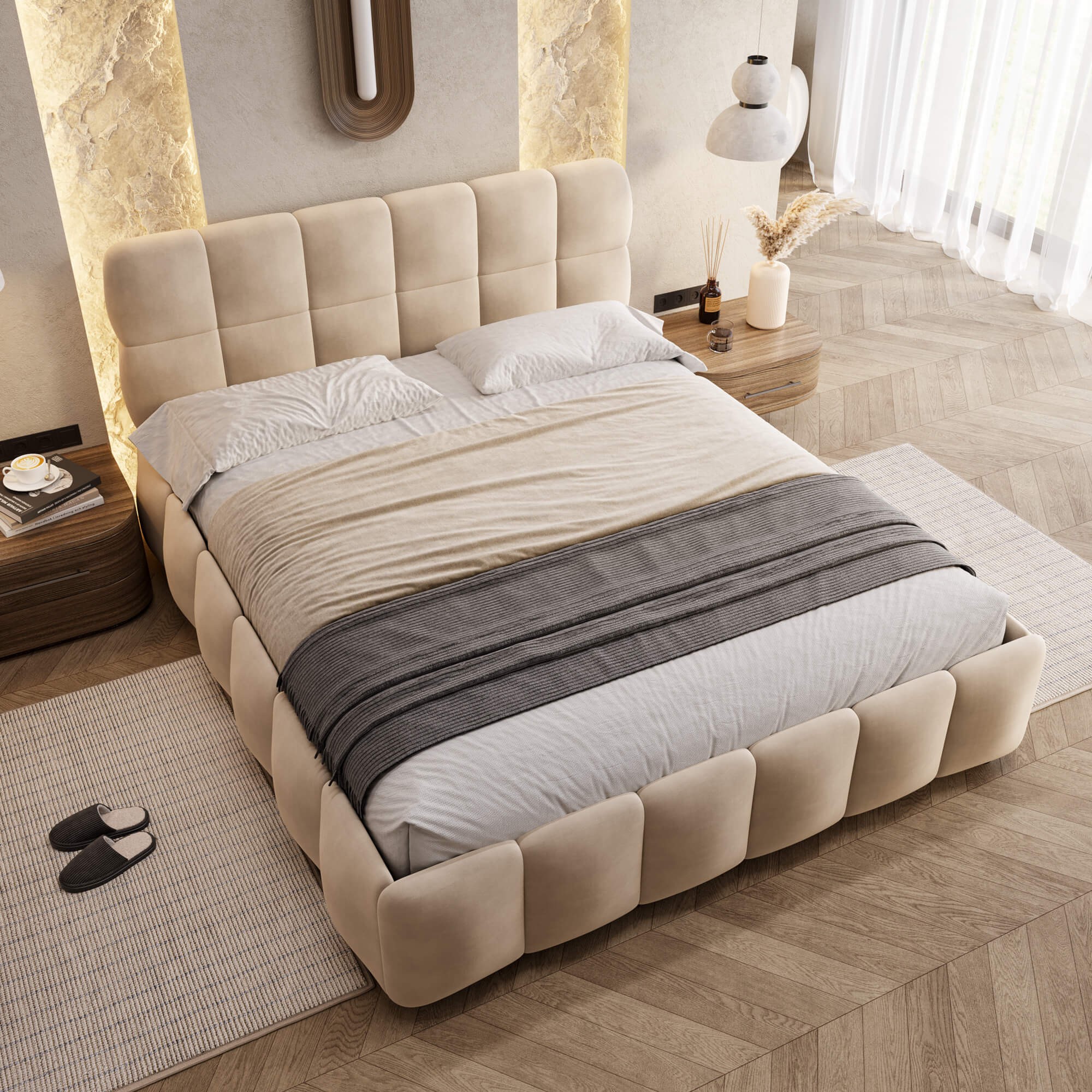 Łóżko tapicerowane z pojemnikiem 4583G | 180x200 | Welur | Beż #6