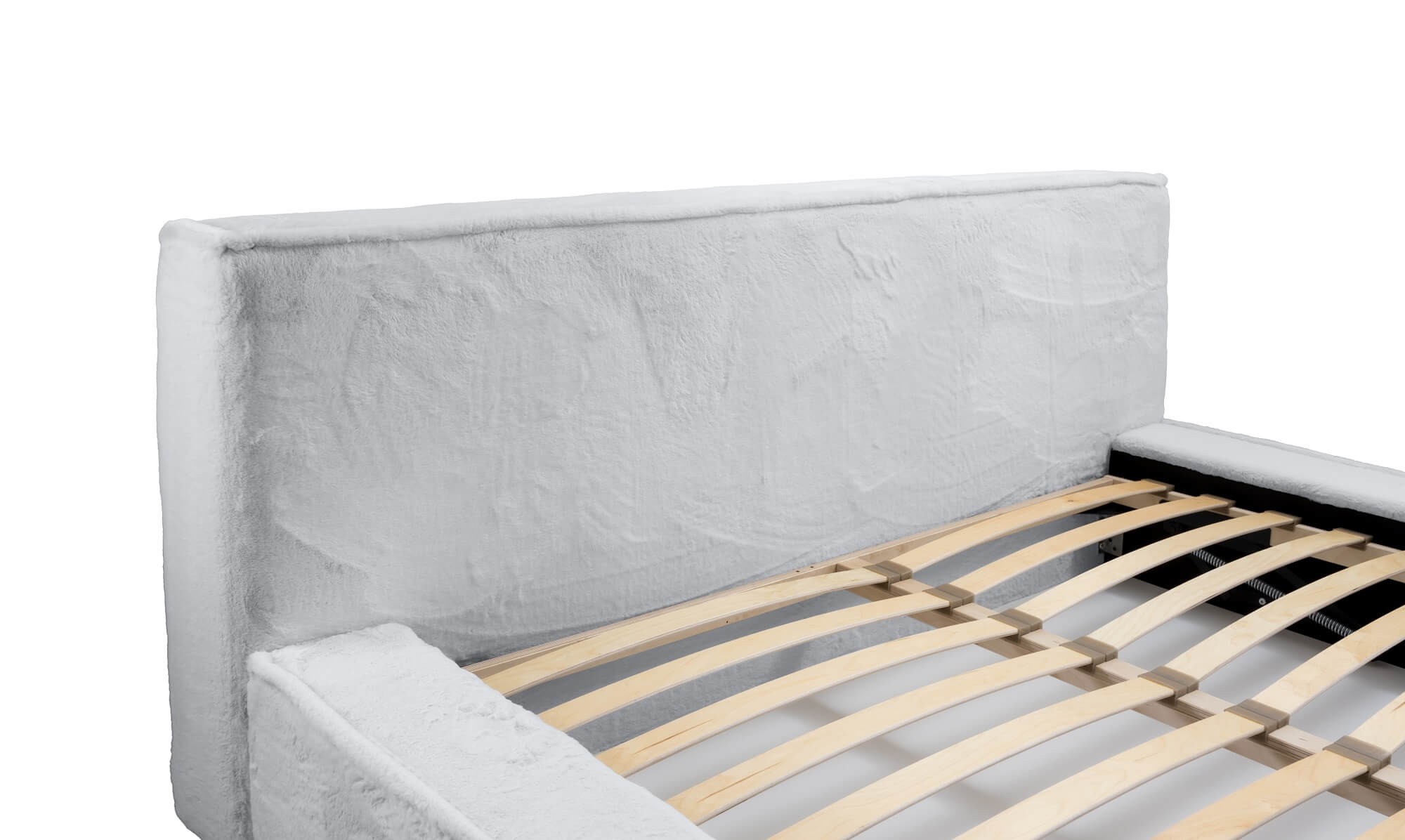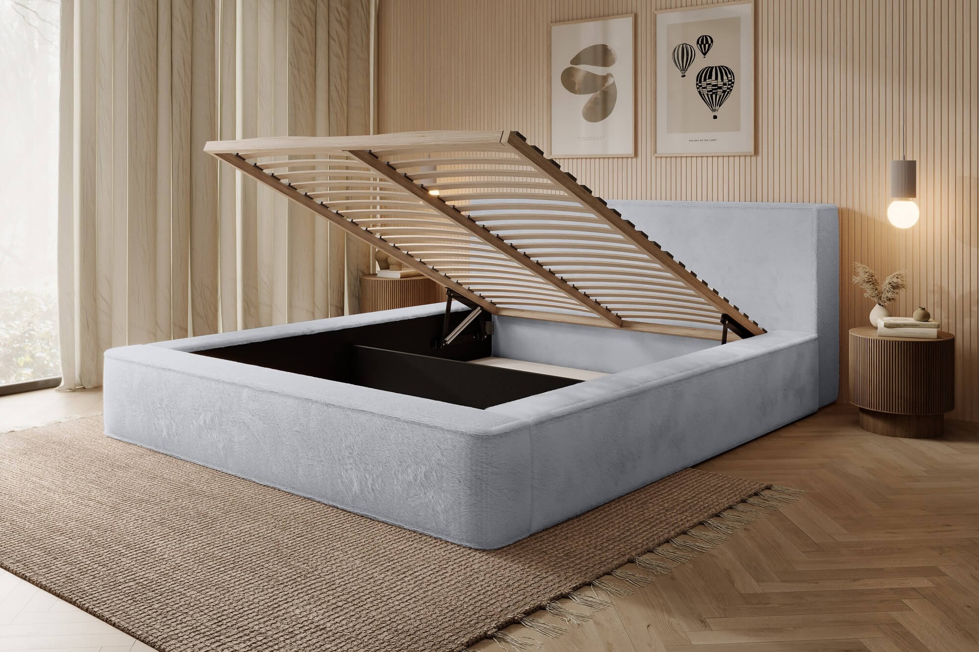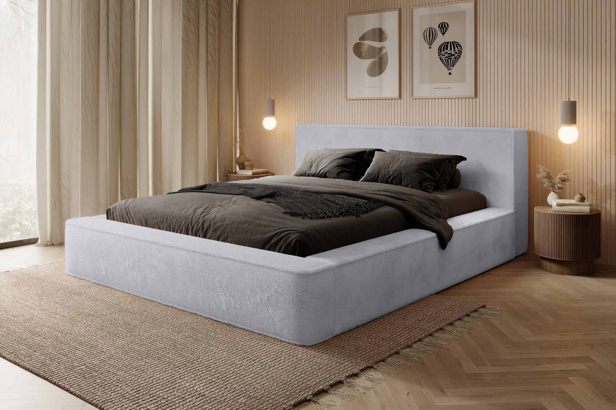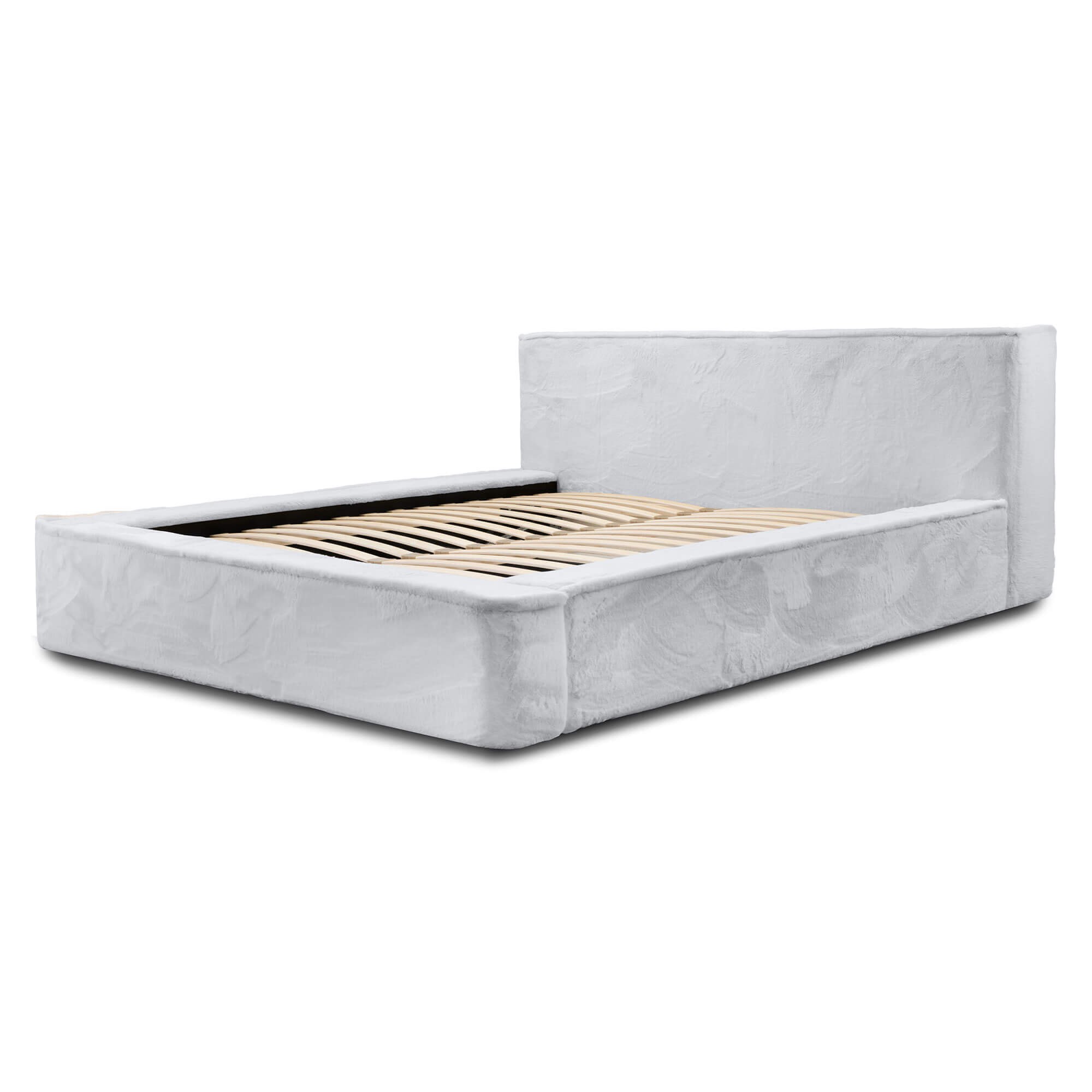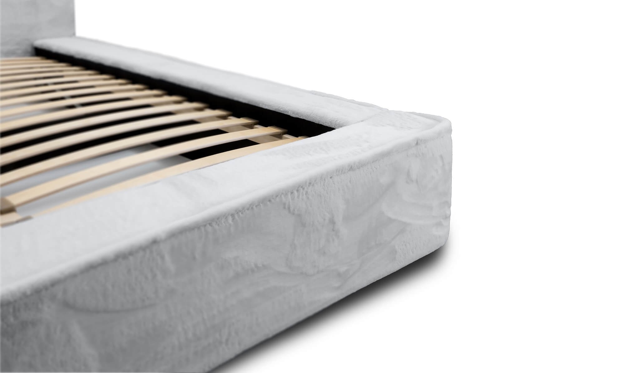 Jasnoszare łóżko w aksamitnej tkaninie futerko Lapit 03 – idealne do niebanalnych rozwiązań