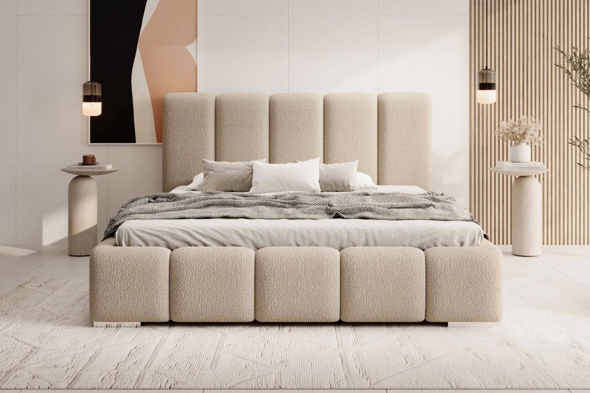 Łóżko tapicerowane BASIC 140x200 to eleganckie i funkcjonalne rozwiązanie, które doskonale dopełni wystrój każdej sypialni. Wysokie, tapicerowane wezgłowie o wysokości 110 cm zapewnia wyjątkowy komfort podczas odpoczynku, czytania lub pracy w łóżku, a jego miękka forma dodaje wnętrzu przytulnego charakteru. Konstrukcja łóżka została oparta na solidnym stelażu wykonanym ze sklejki drewnianej, co gwarantuje stabilność oraz swobodną cyrkulację powietrza pod materacem. Dzięki temu sen jest zdrowszy, a materac zachowuje swoje właściwości przez długie lata. Praktyczny pojemnik na pościel z dwupozycyjnym systemem otwierania to wygodne rozwiązanie, które pozwala utrzymać porządek w sypialni. Dodatkowym atutem są starannie wykończone detale – boki tapicerowane miękką pianką, owata dla dodatkowego komfortu oraz eleganckie nóżki, które nadają konstrukcji lekkości. Łóżko BASIC wyróżnia się ponadczasowym wyglądem, który świetnie komponuje się zarówno z nowoczesnymi, jak i klasycznymi aranżacjami. To produkt w 100% polski, wykonany z dbałością o precyzję i trwałość. BASIC 140x200 to idealny wybór dla osób, które szukają łóżka o nowoczesnym wyglądzie, solidnej konstrukcji i funkcjonalności, która sprawdzi się w codziennym użytkowaniu.