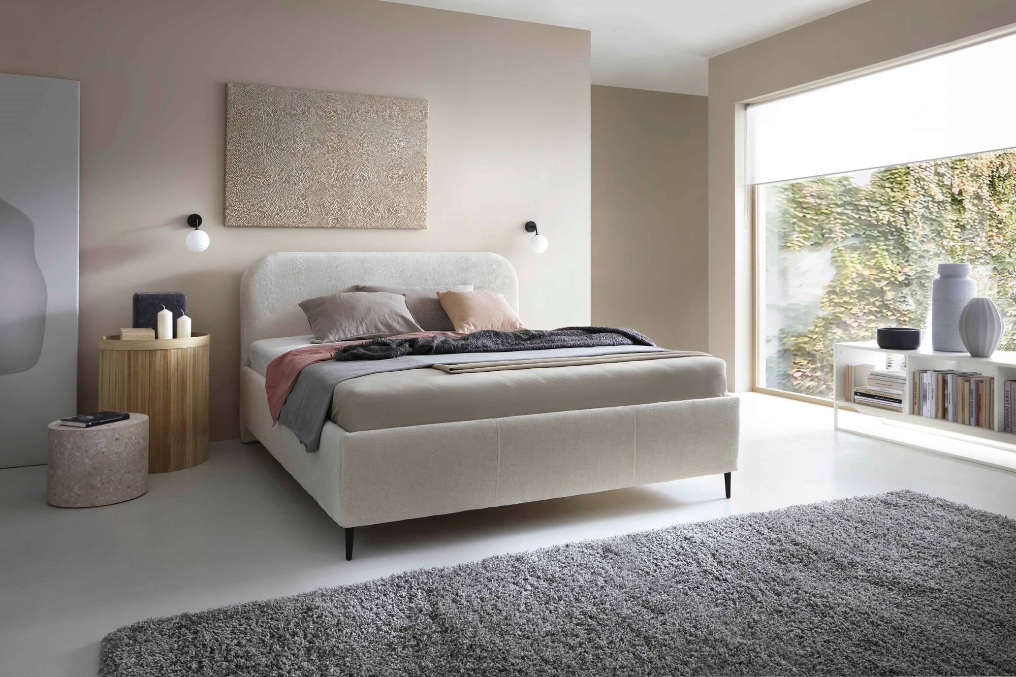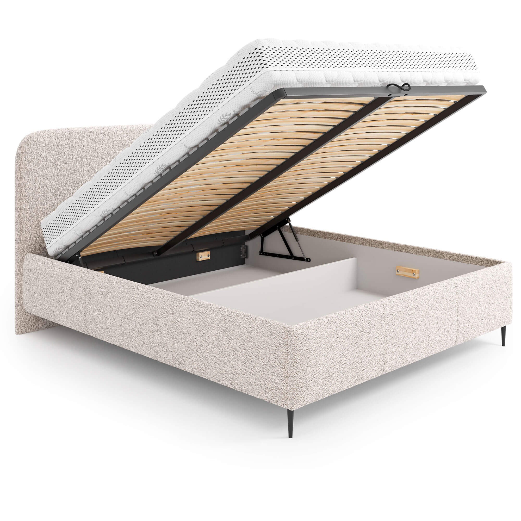 Łóżko tapicerowane na nóżkach BENDI 140x200 – pojemnik na pościel, solidny stelaż!
